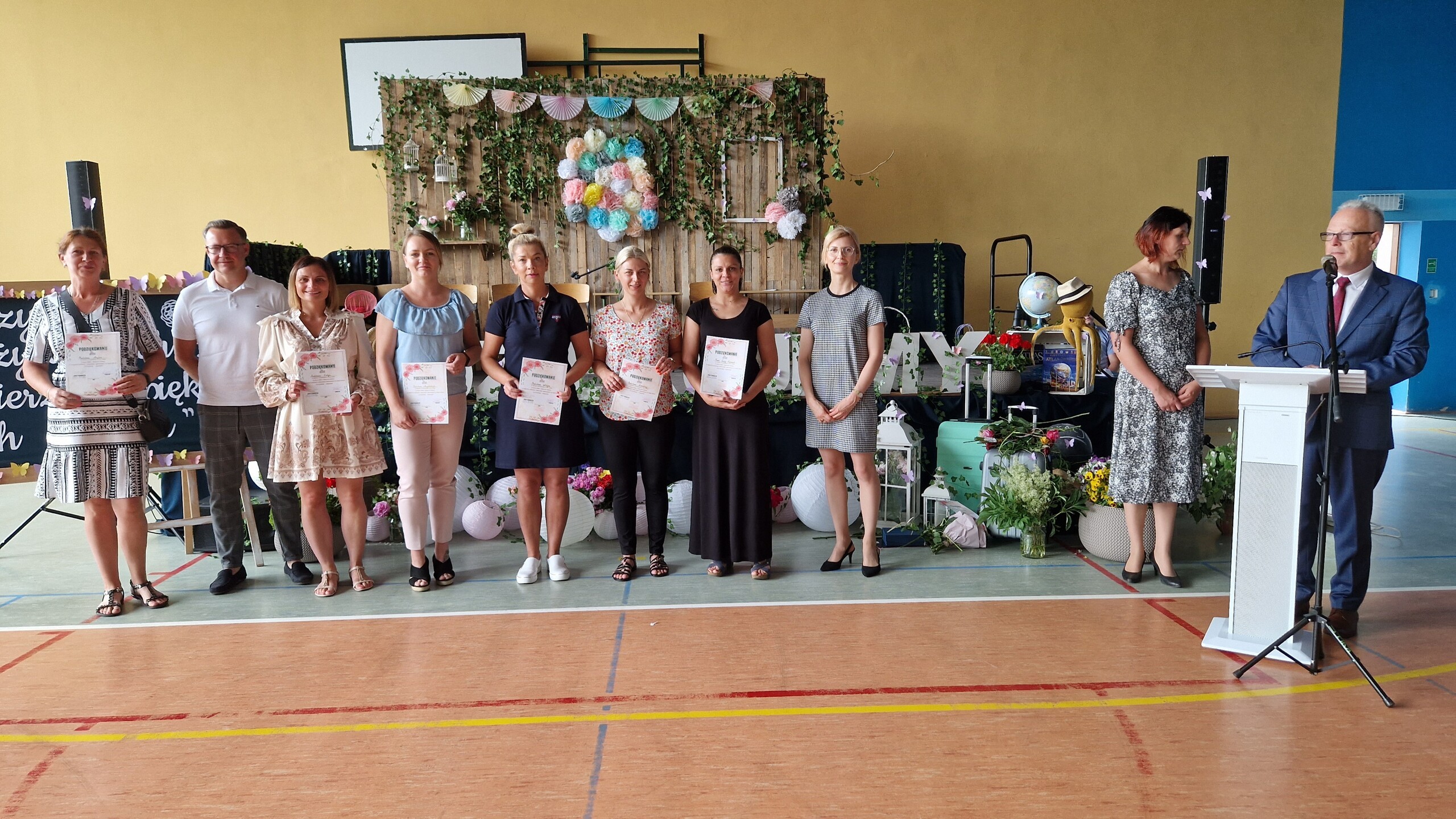 Momentem długo wyczekiwanym przez uczniów było uroczyste wręczenie świadectw i nagród uczniom wyróżniającym się w nauce, listów gratulacyjnych i podziękowań dla rodziców. Dyrektor na zakończenie uroczystości jeszcze raz wszystkim podziękował za włożony trud, za życzliwość i troskę o kształtowanie właściwych postaw naszej młodzieży. Życzeniami udanych wakacji dyrektor zakończył rok szkolny 2022/2023.