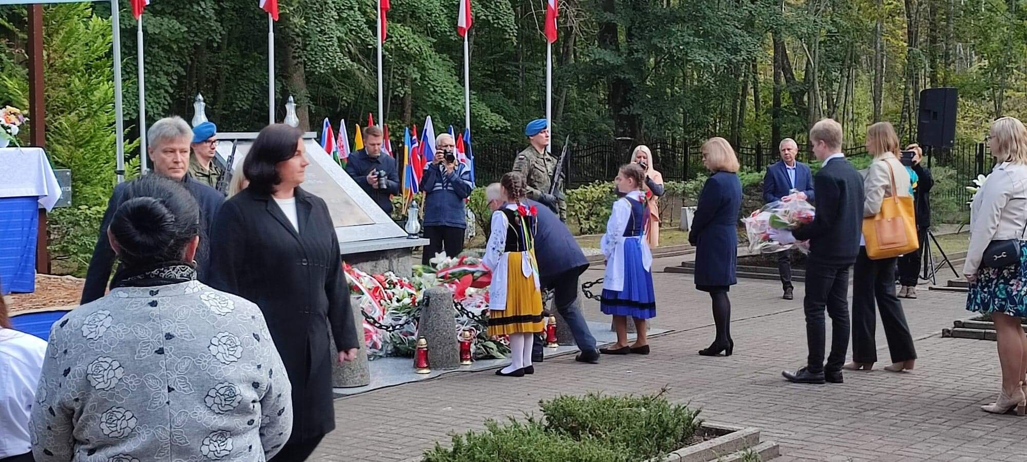 Po odczytaniu Apelu Poległych i salwie honorowej delegacje władz samorządowych, organizacji społecznych, służb mundurowych, dyrektorzy szkół oraz przedstawiciele lokalnej społeczności złożyli kwiaty pod pomnikiem Ofiar Marszu Śmierci. Uroczystość zakończyło odśpiewanie Roty.