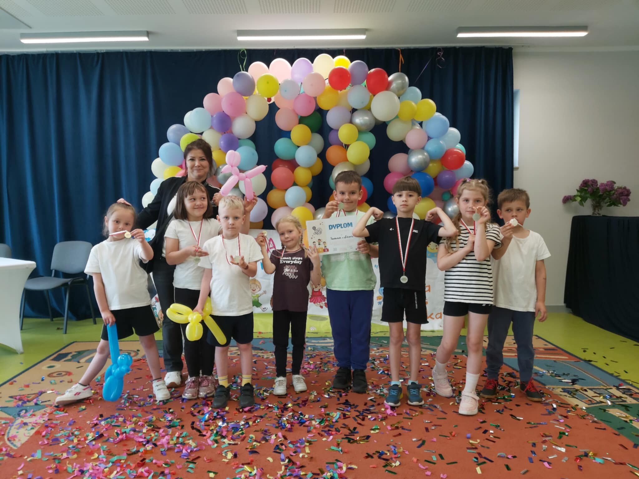 Nasi sportowcy wzorowo reprezentowali swoją grupę „Kotki”, jak i całe Przedszkole w Łebieniu, dlatego dumni wrócili z medalami i nagrodą, która z pewnością uatrakcyjni im zabawy na szkolnym boisku.