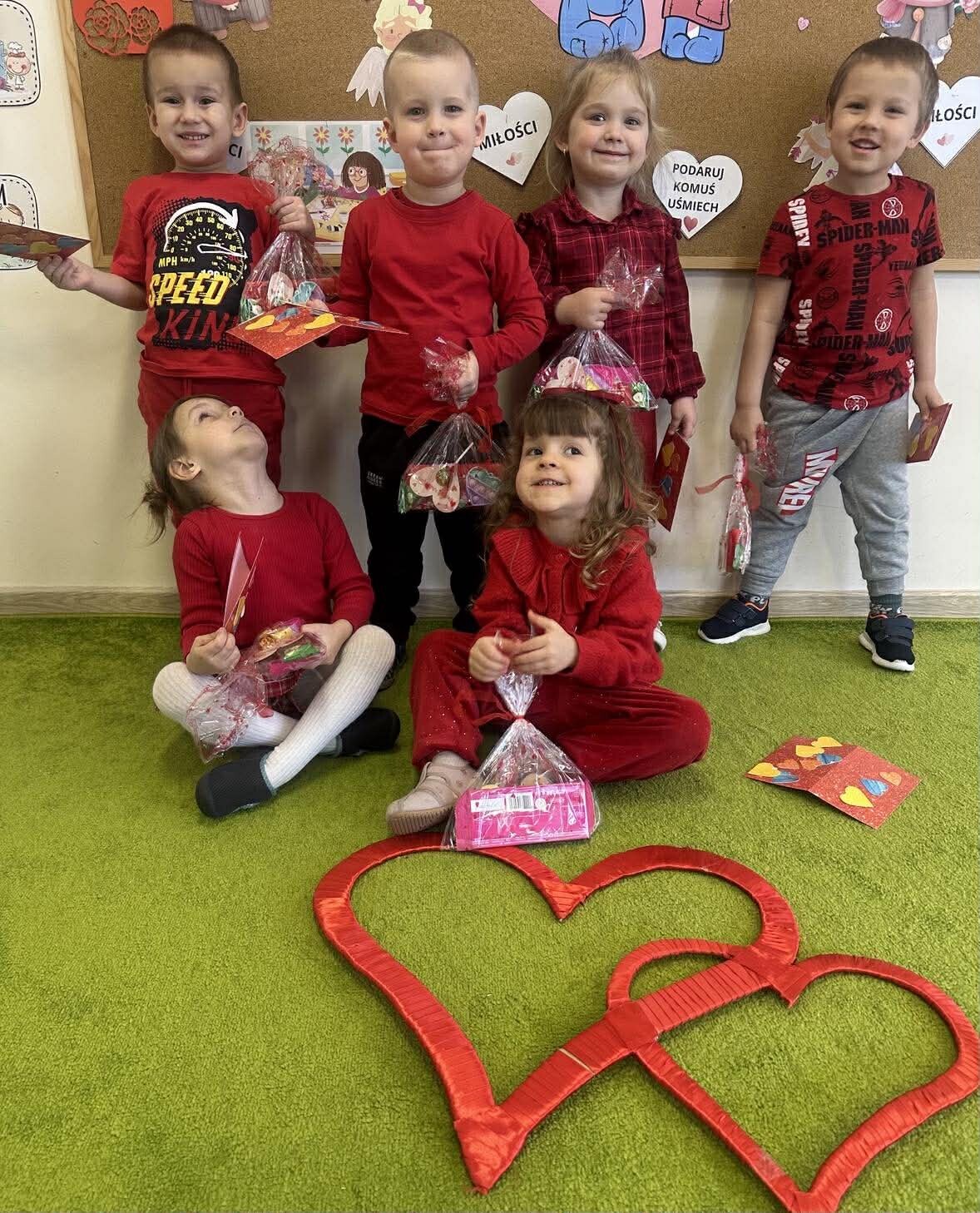 Walentynki to radosny dzień przyjaźni i życzliwości, a to uczucia bardzo bliskie i potrzebne nawet najmłodszym przedszkolakom. Dlatego z tej okazji dzieci ubrały się na czerwono, by w szczególny sposób uczcić dzień. Były tematyczne zabawy, tworzenie laurek oraz zabawy ruchowe, integrujące dzieci. Z wielkim zaangażowaniem dzieci rozmawiały o przyjaźni i o tym, co należy robić, by mieć wielu przyjaciół. W ten wyjątkowy dzień przypomnieliśmy sobie, że miłość i szacunek do świata - nie tylko ludzi, ale i zwierząt, przyrody - wyznacza jakość naszego wspólnego życia na naszej planecie Ziemi.