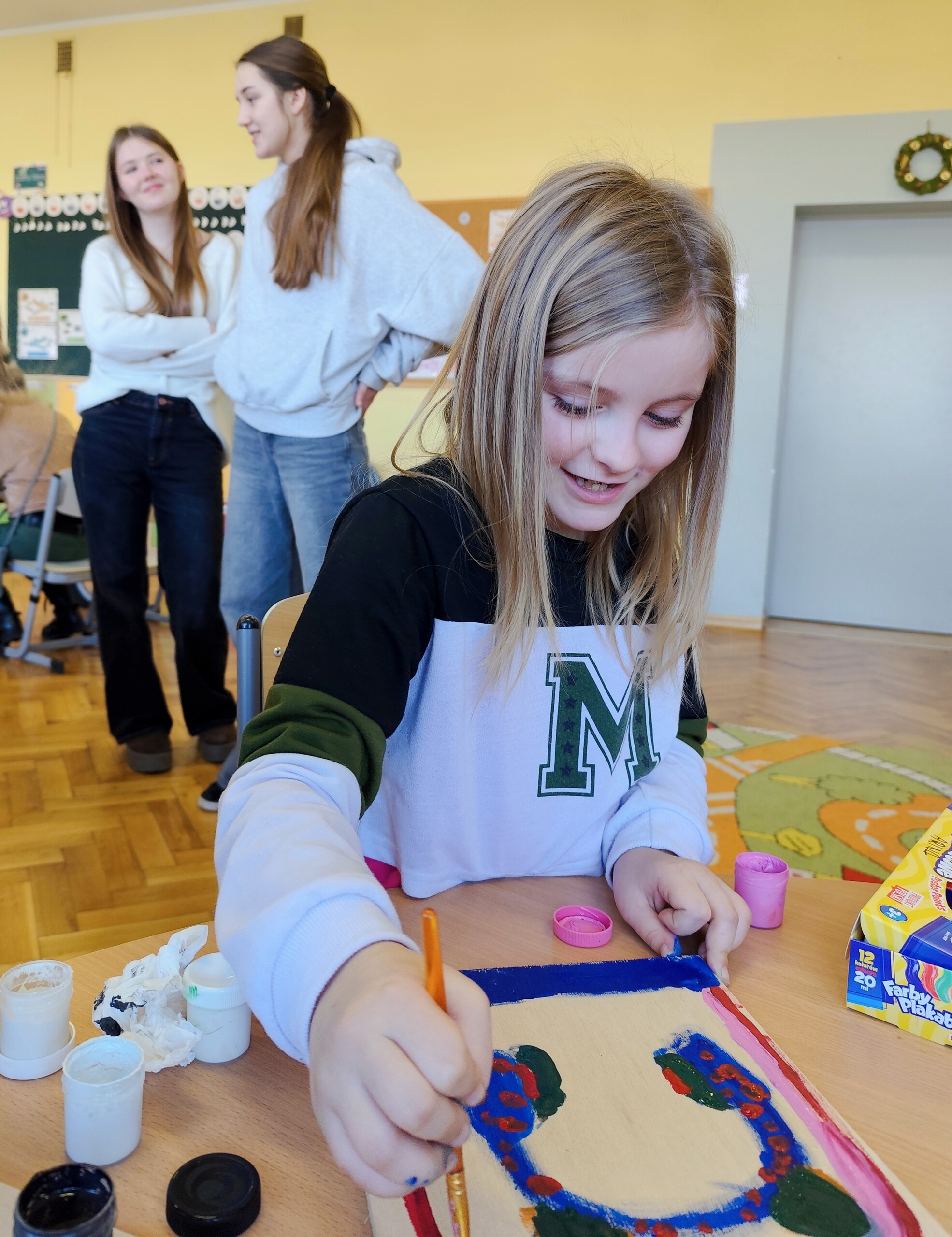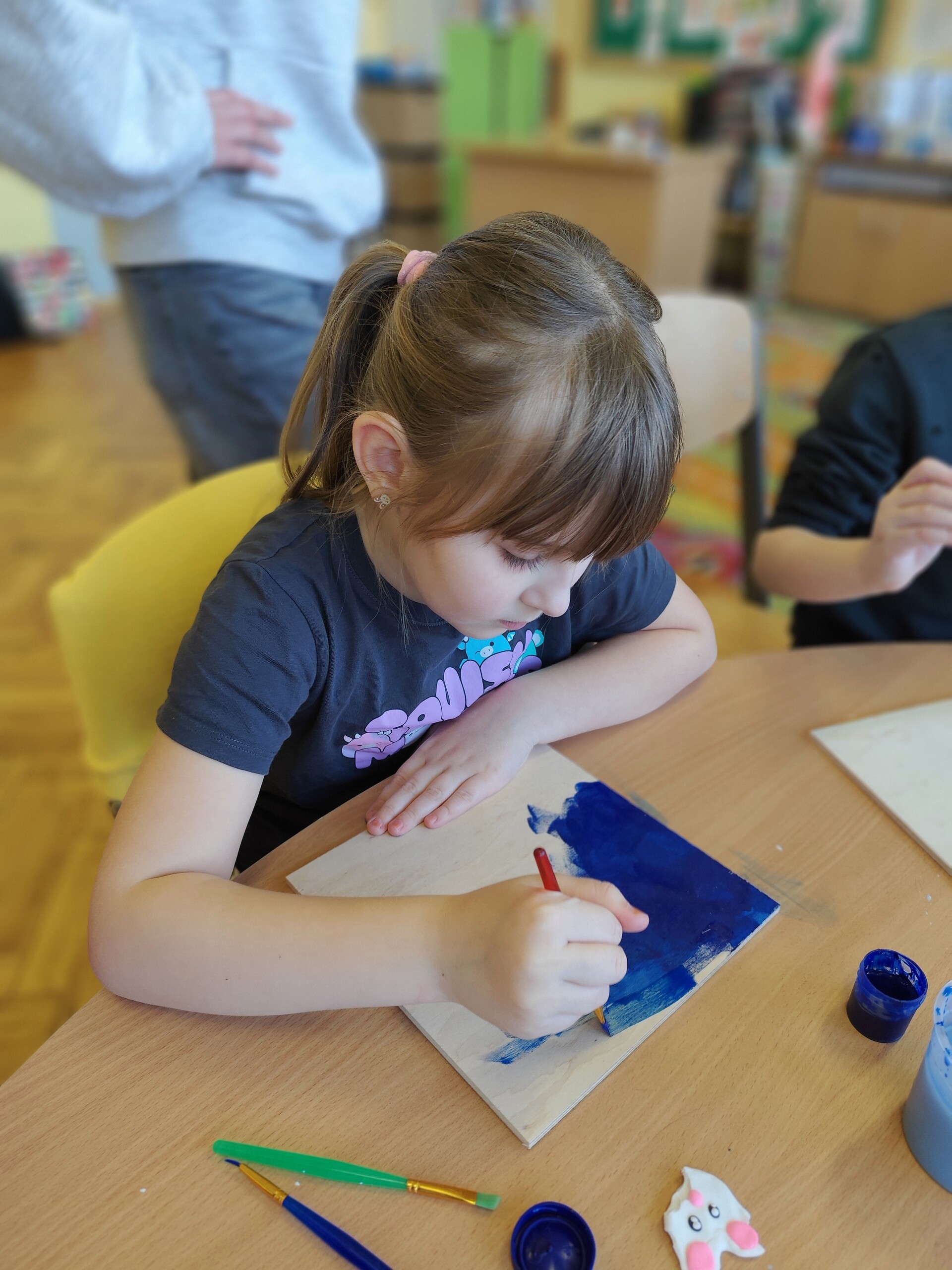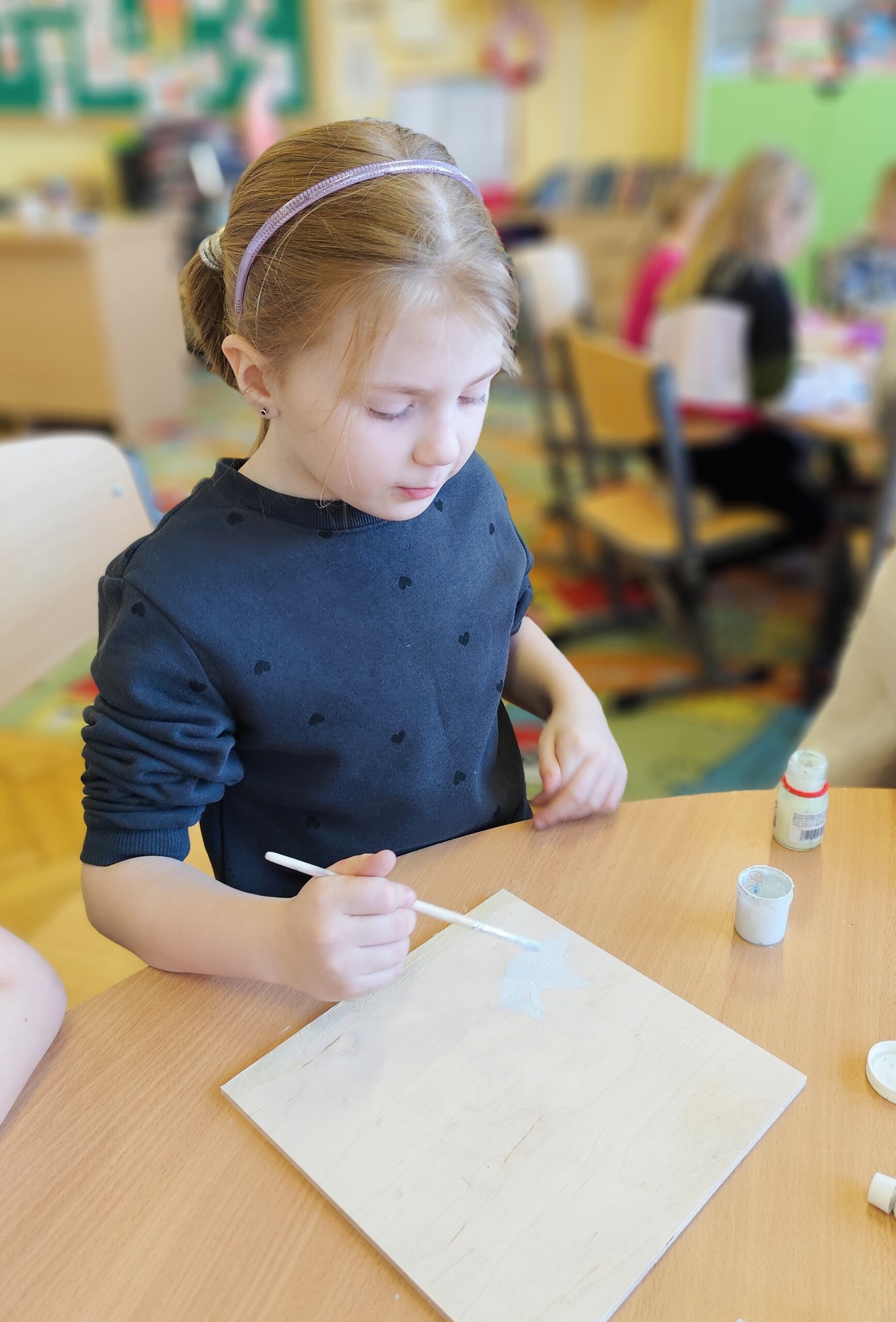11 lutego. w klasie 1. odbyły się warsztaty z malowania na drewnie. "Kim będę, gdy dorosnę" - to temat tych warsztatów. Podczas ich trwania dzieci odkrywały swoje zdolności malarskie próbując stworzyć niewielki obrazek. Poradziły sobie fantastycznie!