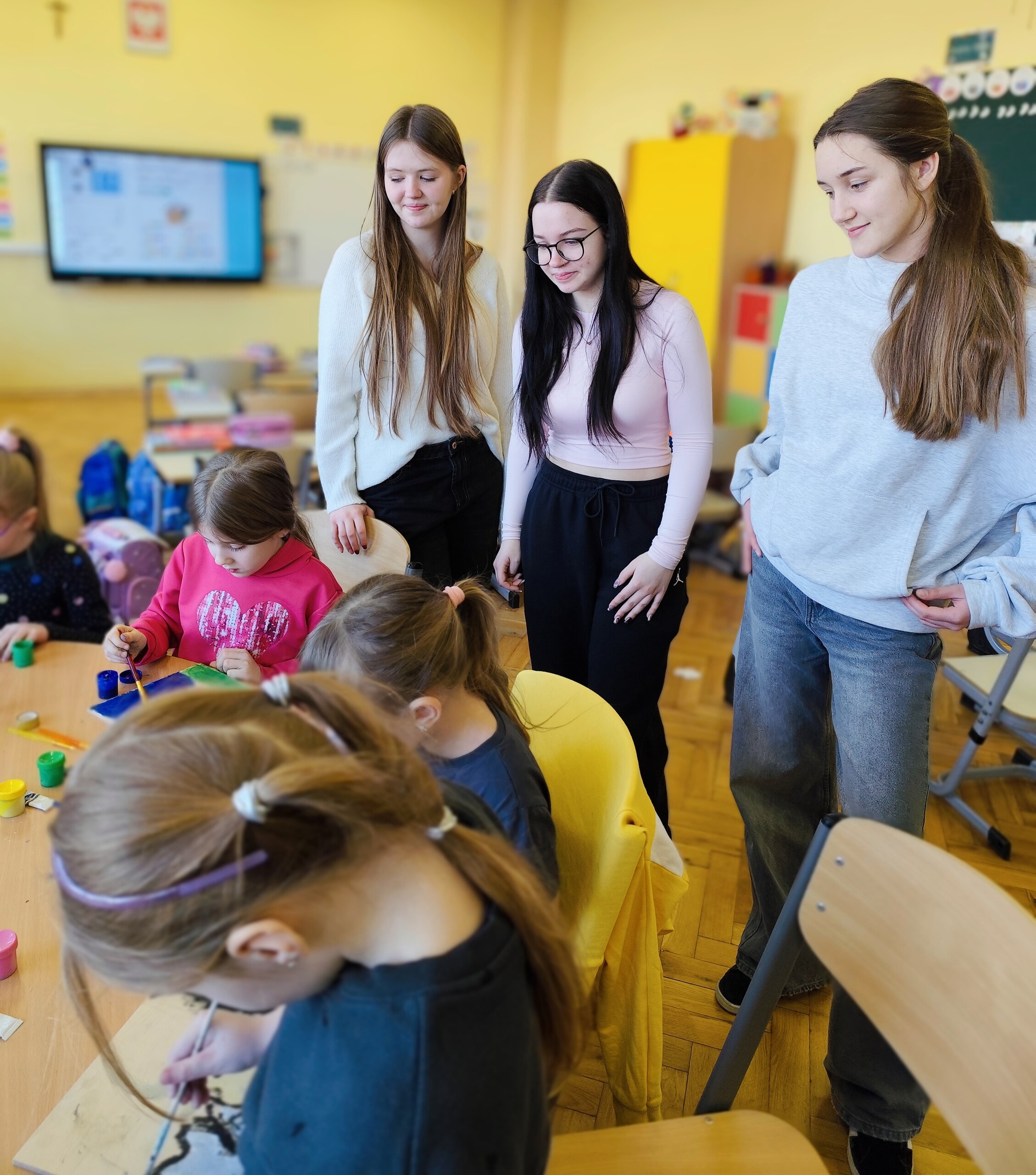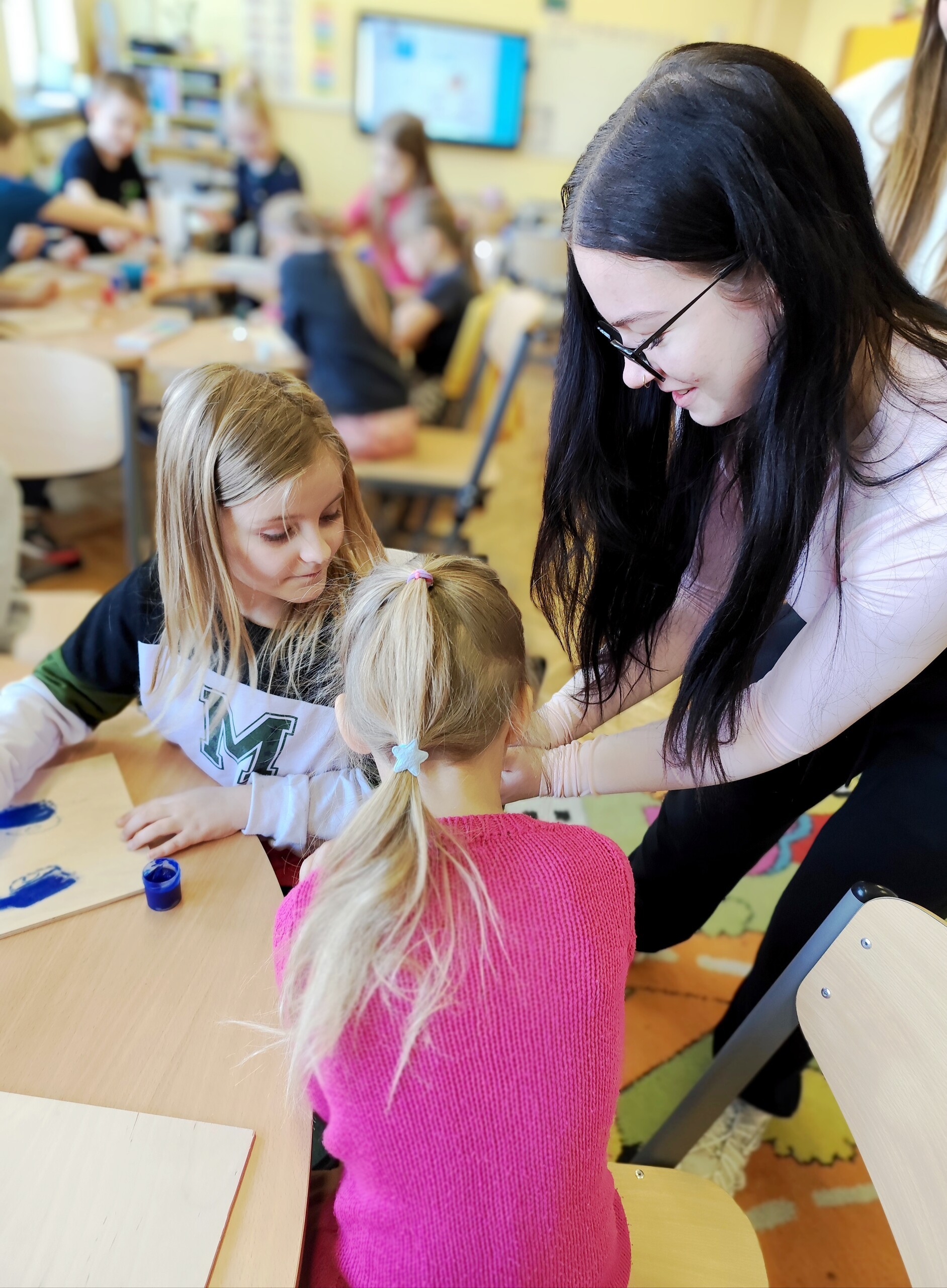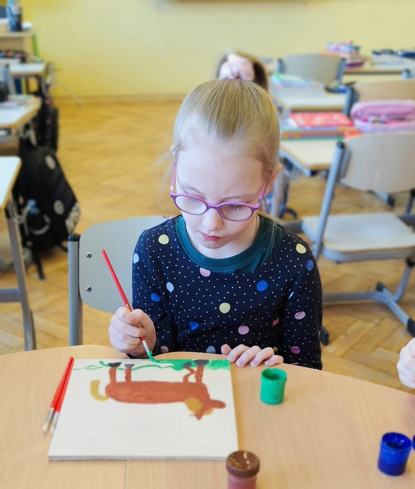 11 lutego. w klasie 1. odbyły się warsztaty z malowania na drewnie. "Kim będę, gdy dorosnę" - to temat tych warsztatów. Podczas ich trwania dzieci odkrywały swoje zdolności malarskie próbując stworzyć niewielki obrazek. Poradziły sobie fantastycznie!