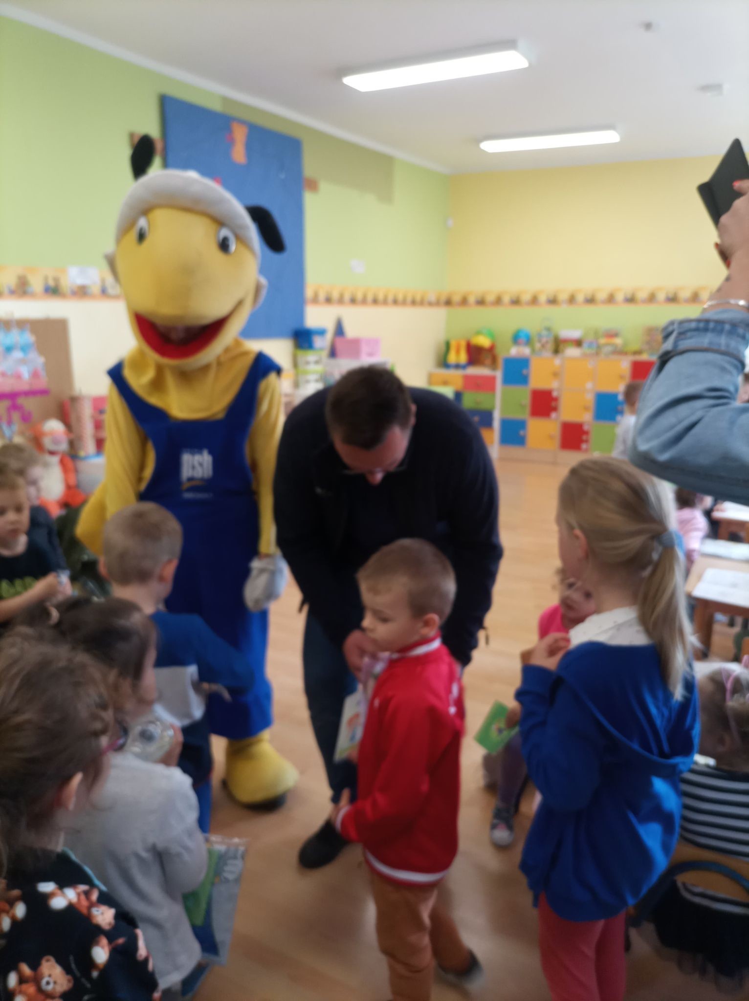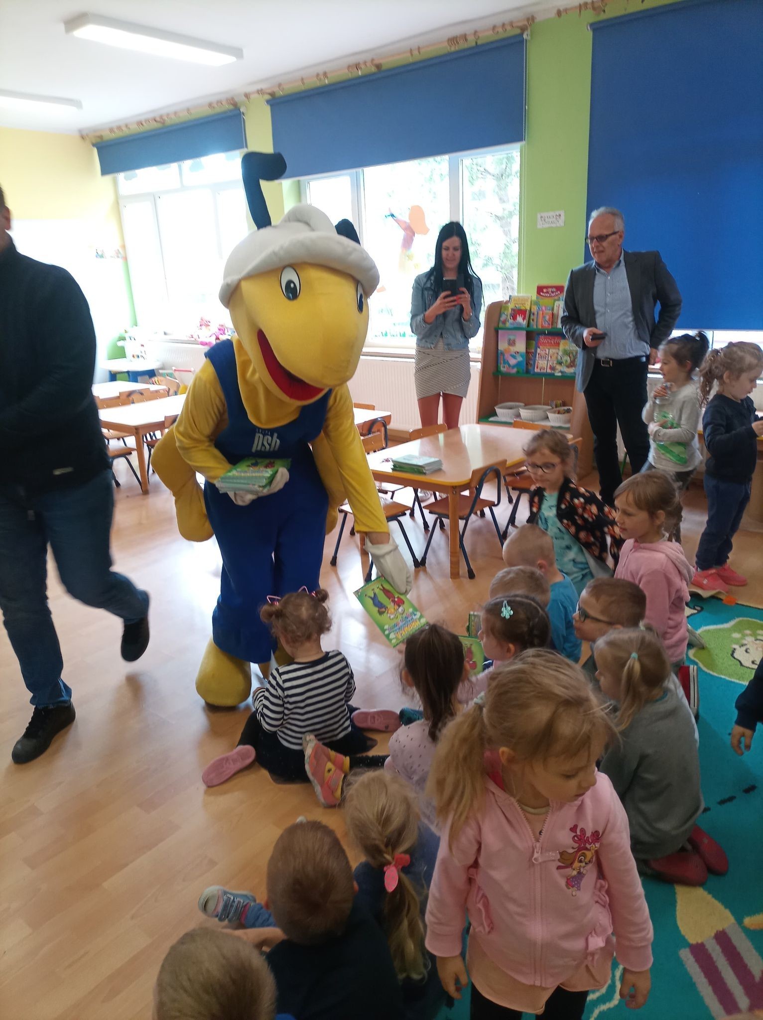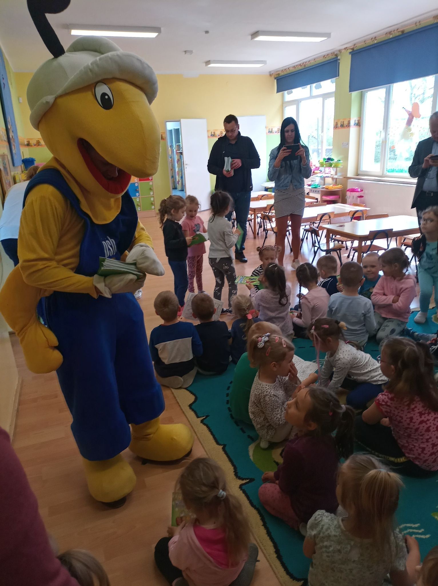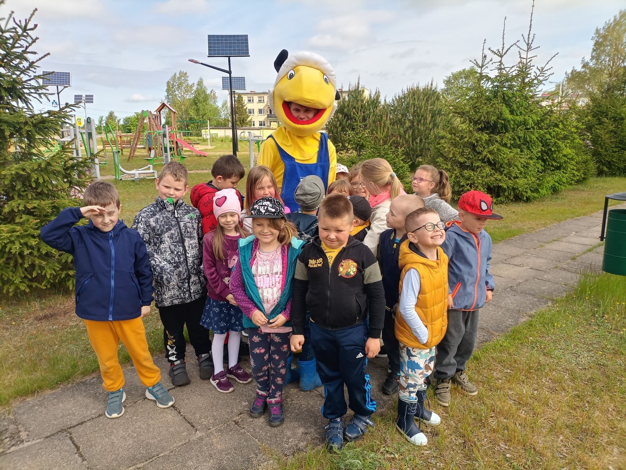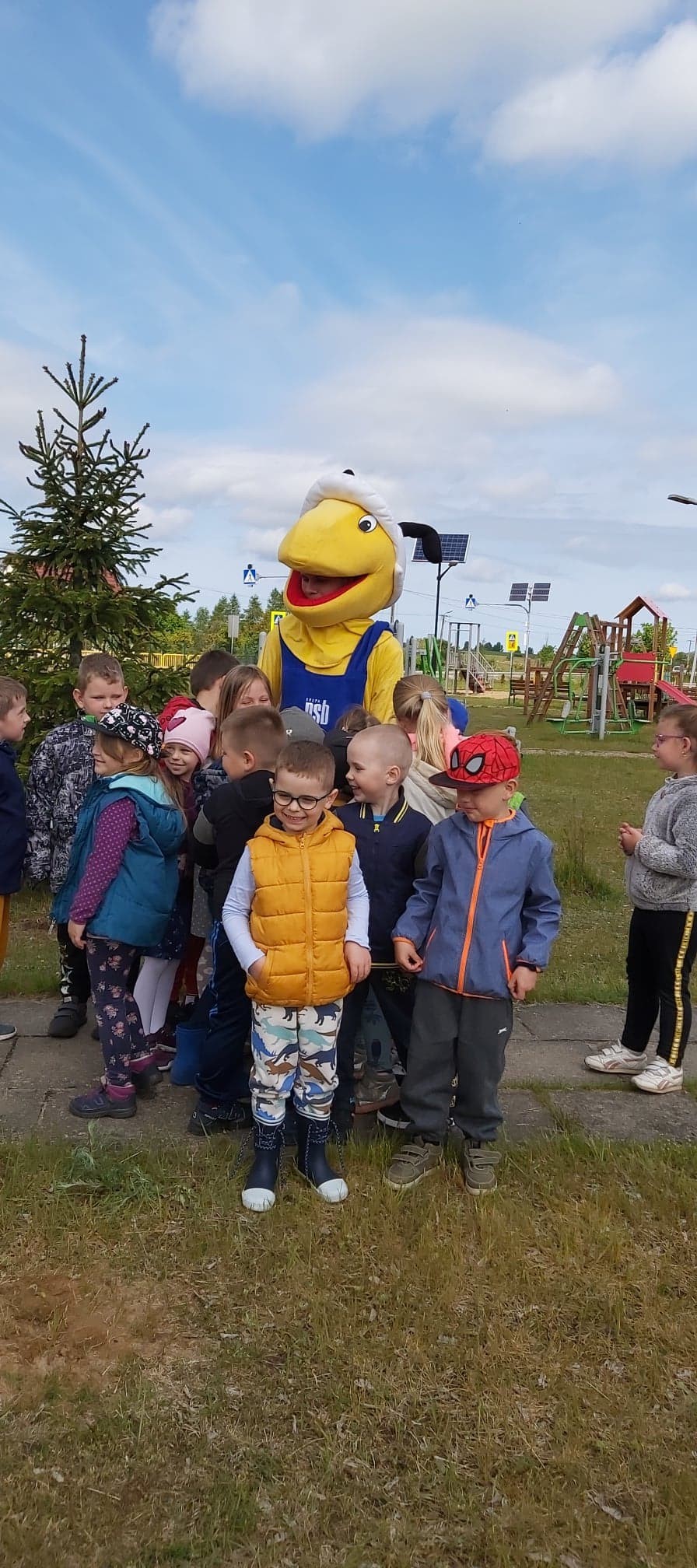 25 maja 2022r. w związku z akcją „Wiosna w przedszkolu” naszych przedszkolaków odwiedził niezwykły gość, Mrówka - maskotka ze sklepu PSB w Lęborku. Spotkanie z nim odbyło się na zewnątrz szkoły, gdyż ta bardzo miła wizyta miała wydźwięk ekologiczny. Dzieci wspólnie z Mrówką, panem Pawłem Benasiewiczem kierownikiem PBS Mrówka w Lęborku, panem dyrektorem i panią wicedyrektor sadziły drzewka, które podarował nam nasz gość. Wszystkie dzieci chętnie pomagały i każdy chciał mieć swój udział w tej pięknej akcji. Na koniec po wspólnej pracy Mrówka oraz pan Paweł Benasiewicz wręczyli każdemu dziecku koszulkę i kolorowankę, co także sprawiło dzieciom wiele radości.