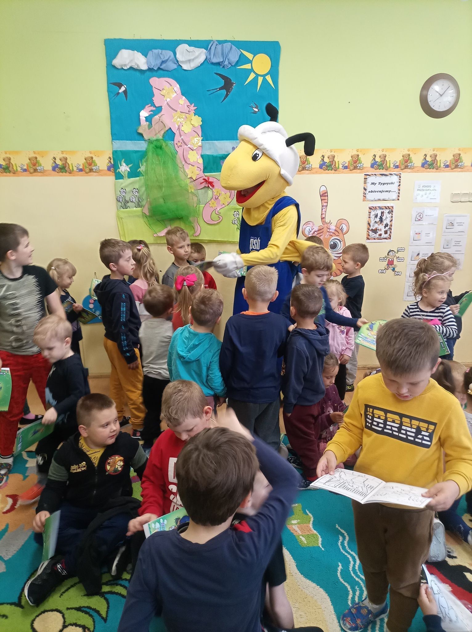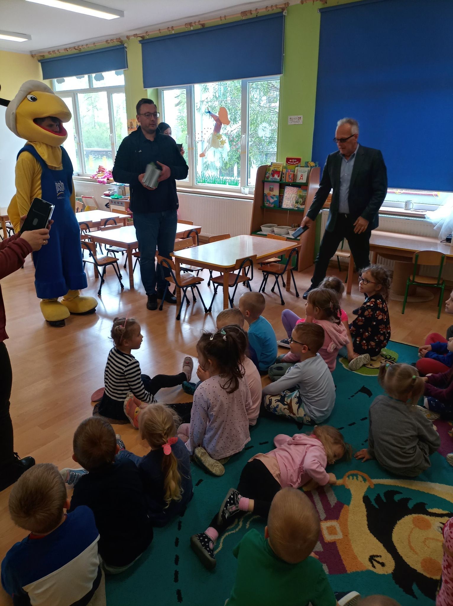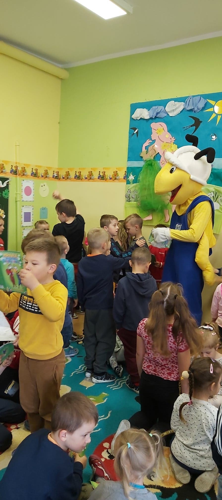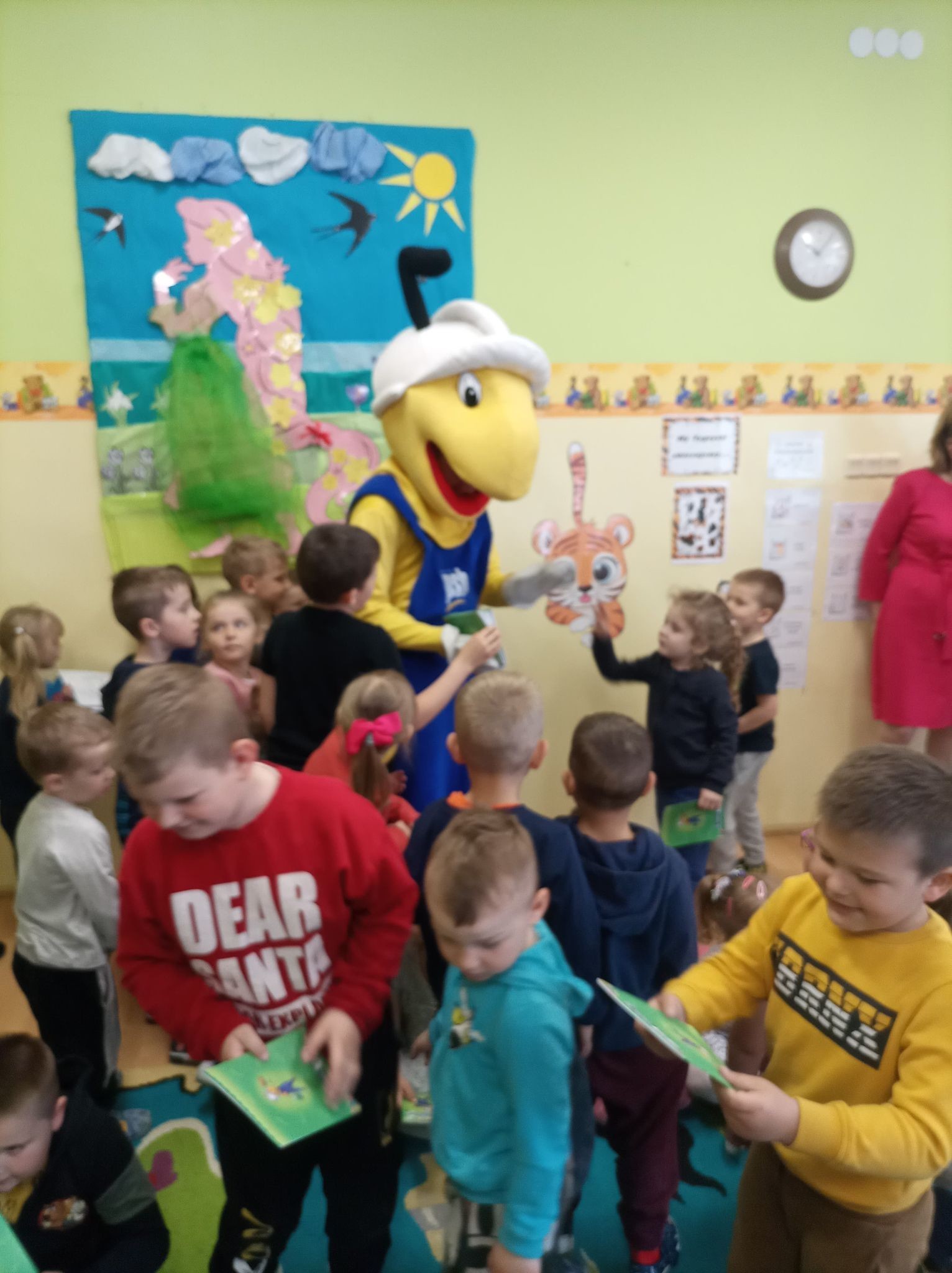 25 maja 2022r. w związku z akcją „Wiosna w przedszkolu” naszych przedszkolaków odwiedził niezwykły gość, Mrówka - maskotka ze sklepu PSB w Lęborku. Spotkanie z nim odbyło się na zewnątrz szkoły, gdyż ta bardzo miła wizyta miała wydźwięk ekologiczny. Dzieci wspólnie z Mrówką, panem Pawłem Benasiewiczem kierownikiem PBS Mrówka w Lęborku, panem dyrektorem i panią wicedyrektor sadziły drzewka, które podarował nam nasz gość. Wszystkie dzieci chętnie pomagały i każdy chciał mieć swój udział w tej pięknej akcji. Na koniec po wspólnej pracy Mrówka oraz pan Paweł Benasiewicz wręczyli każdemu dziecku koszulkę i kolorowankę, co także sprawiło dzieciom wiele radości.