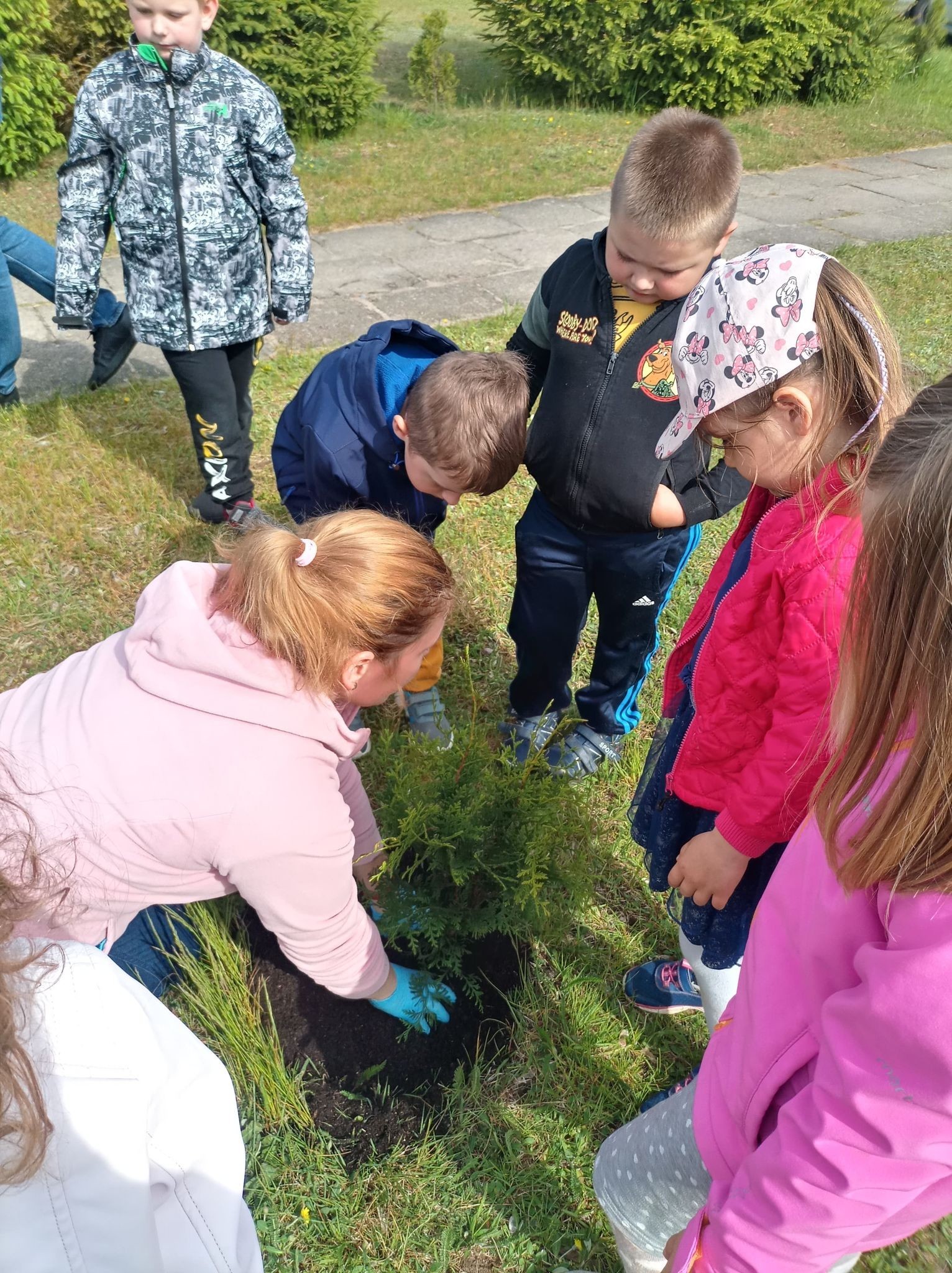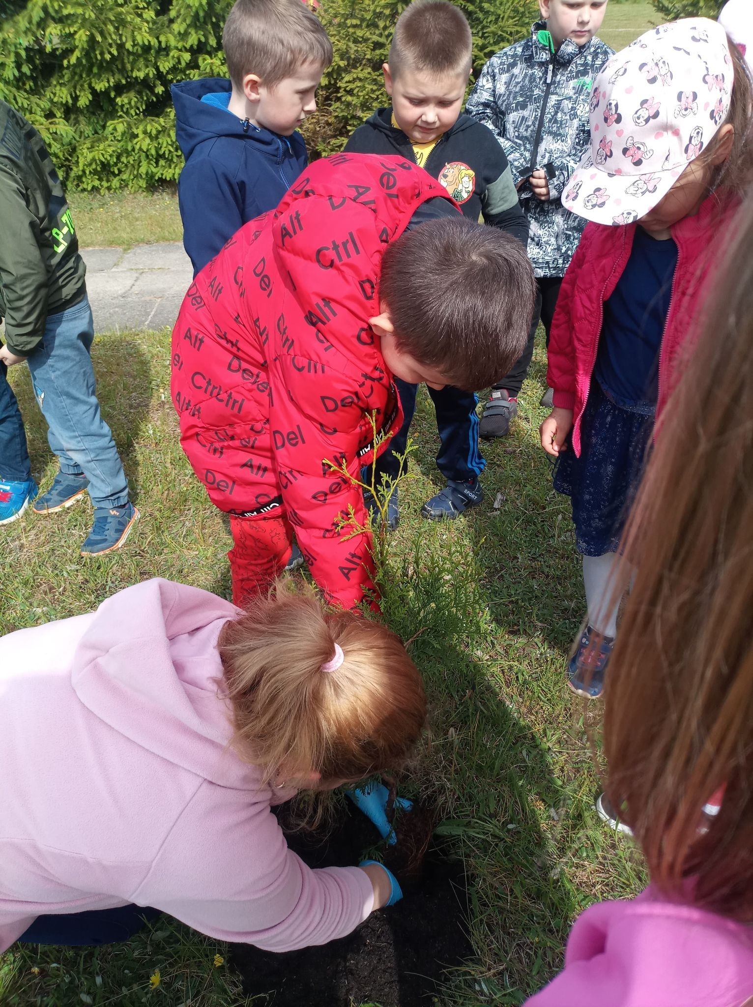Na szczęście pogoda dopisała tak samo jak humory dzieci, które zadowolone wróciły do swoich sal. Wszyscy wiemy, że każde posadzone drzewko to wielki skarb, który z każdym rokiem będzie coraz większy, a poza tym w znacznym stopniu upiększy teren przy szkole.