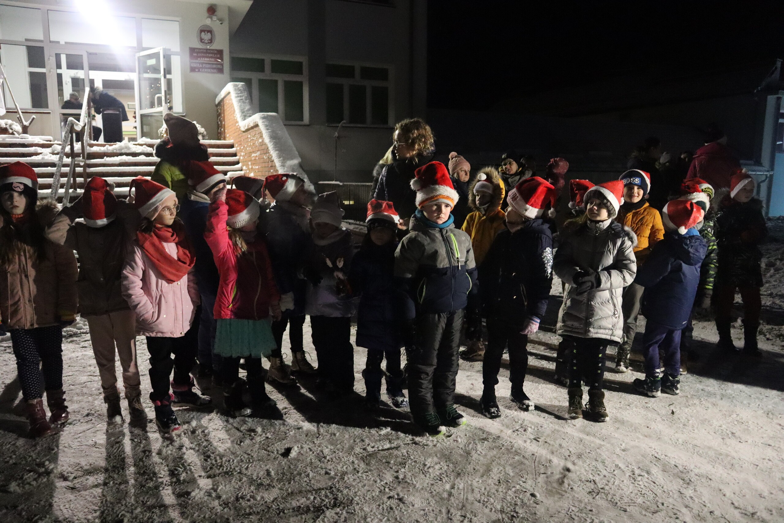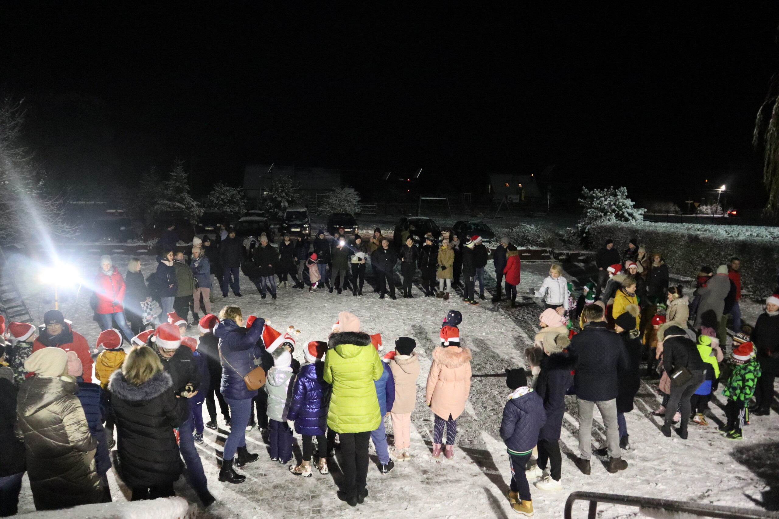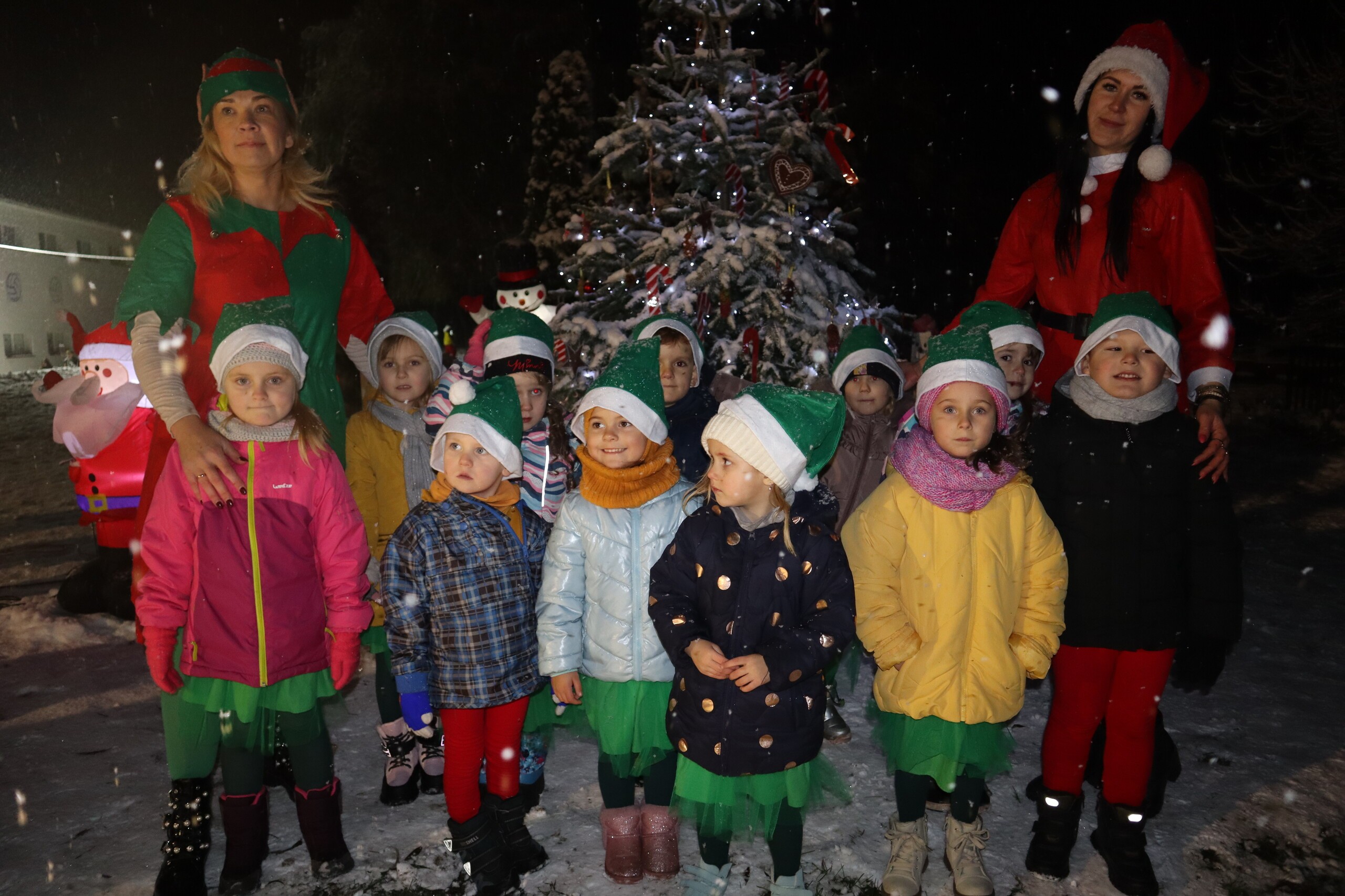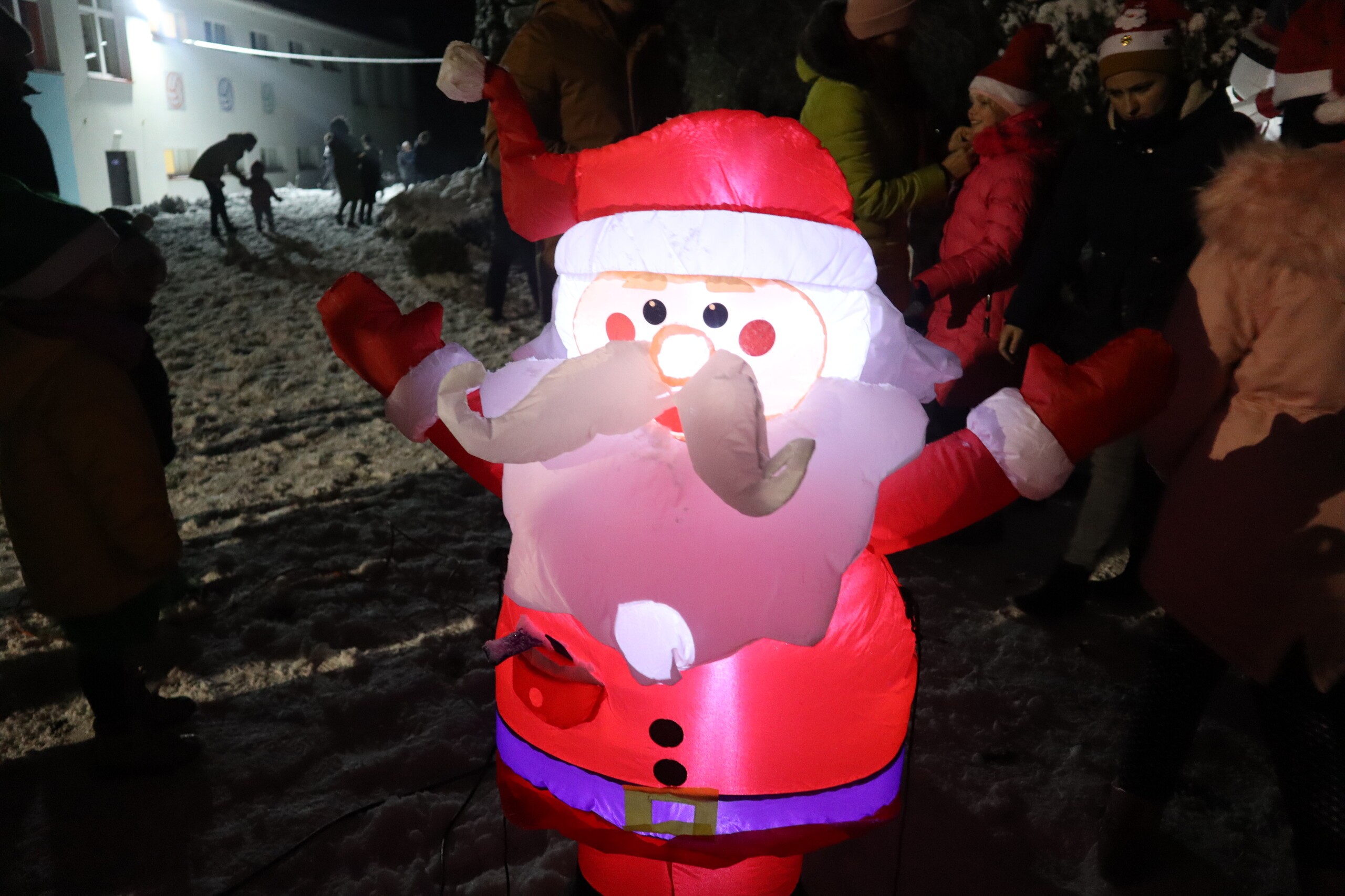 8 grudnia 2022 roku o godzinie 16.30 wspólnie z licznie przybyłymi mieszkańcami ubraliśmy choinkę. Dzieci w trakcie zajęć plastycznych i technicznych oraz w przedszkolu przygotowały ozdoby. Po wspólnej dekoracji nastąpił czas oświetlenia chwili. Radość dzieci, ale też i dorosłych była ogromna. Wspólnymi brawami, ale też i wspólnym śpiewem przywitaliśmy naszą choinkę. Dzieci z przedszkola oraz uczniowie klas I-III przygotowali pod kierunkiem swoich nauczycieli program artystyczny ze śpiewem i tańcami. Tego dnia dzieci odwiedził także święty Mikołaj ze swoimi pomocnikami. Uczniowie mogli wziąć udział w zabawach przygotowanych przez elfów, a na zakończenie każde dziecko otrzymało od Mikołaja prezent.