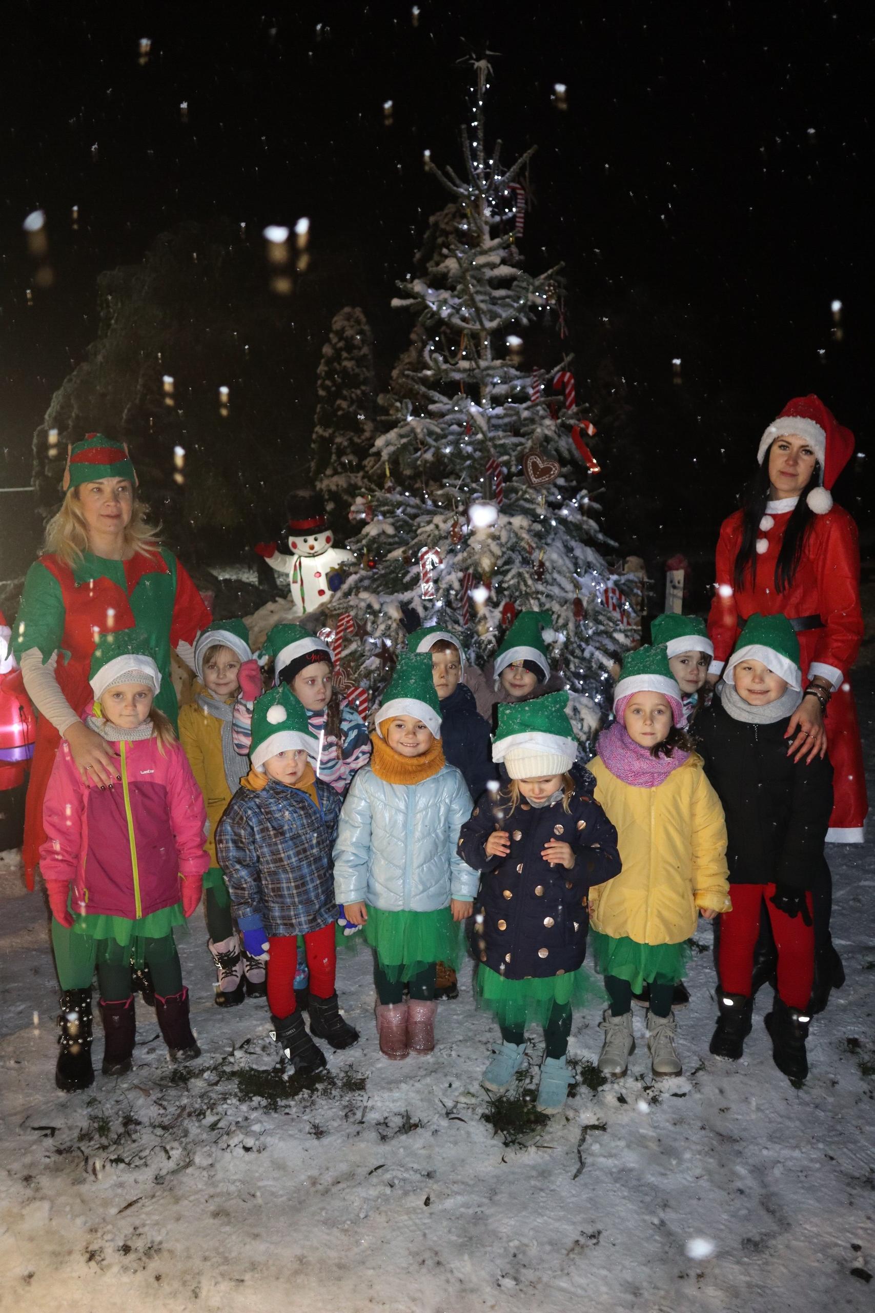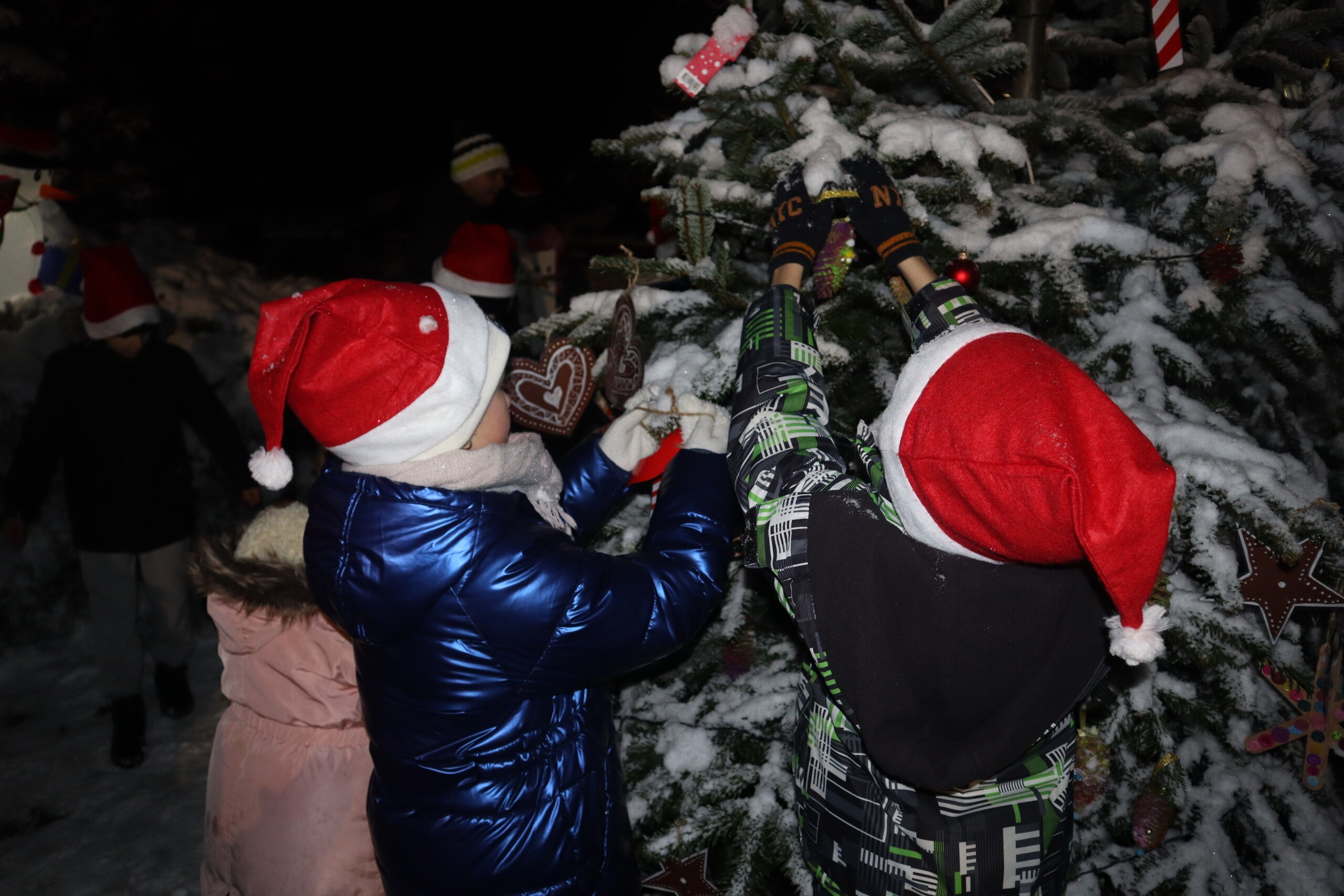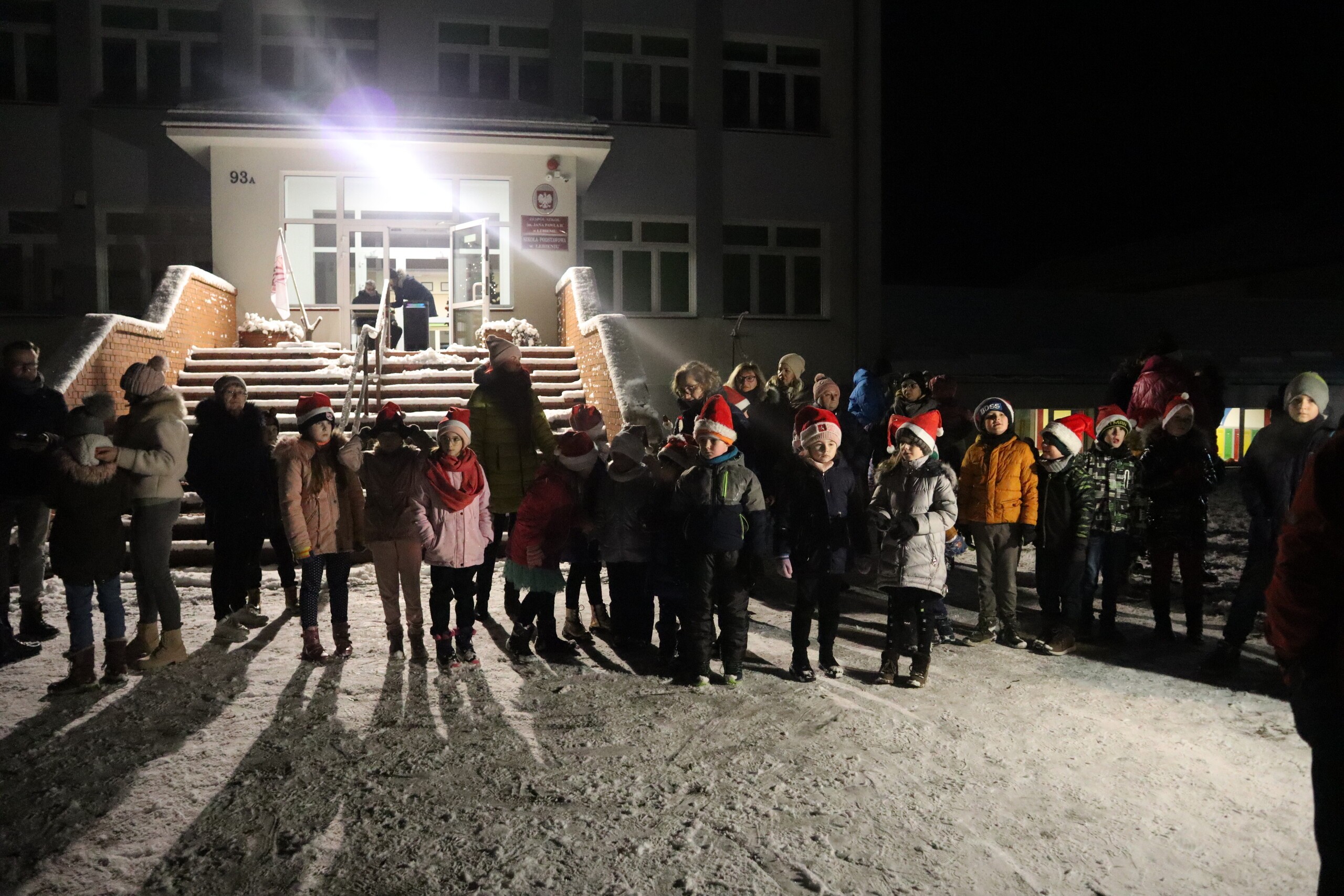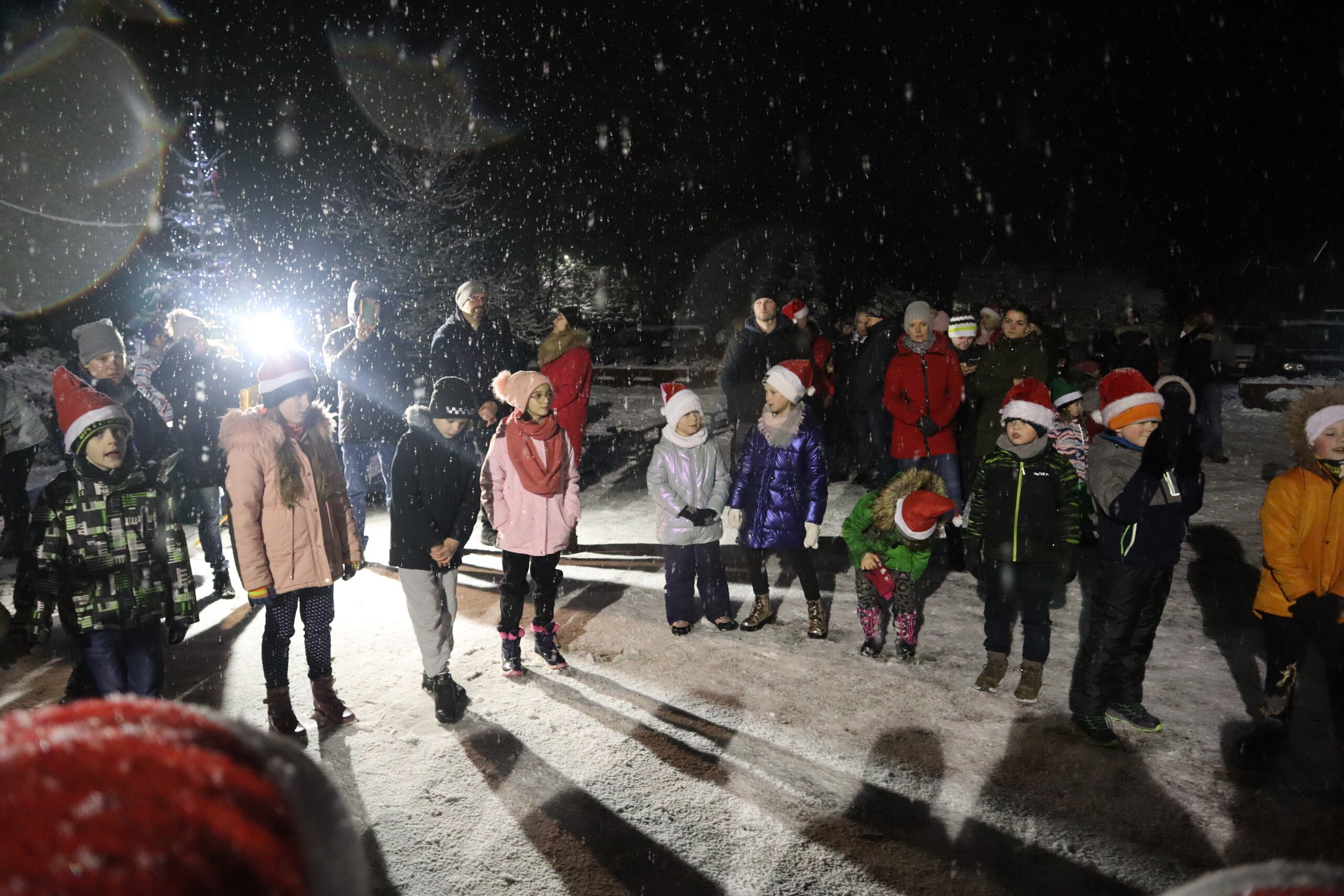 8 grudnia 2022 roku o godzinie 16.30 wspólnie z licznie przybyłymi mieszkańcami ubraliśmy choinkę. Dzieci w trakcie zajęć plastycznych i technicznych oraz w przedszkolu przygotowały ozdoby. Po wspólnej dekoracji nastąpił czas oświetlenia chwili. Radość dzieci, ale też i dorosłych była ogromna. Wspólnymi brawami, ale też i wspólnym śpiewem przywitaliśmy naszą choinkę. Dzieci z przedszkola oraz uczniowie klas I-III przygotowali pod kierunkiem swoich nauczycieli program artystyczny ze śpiewem i tańcami. Tego dnia dzieci odwiedził także święty Mikołaj ze swoimi pomocnikami. Uczniowie mogli wziąć udział w zabawach przygotowanych przez elfów, a na zakończenie każde dziecko otrzymało od Mikołaja prezent.