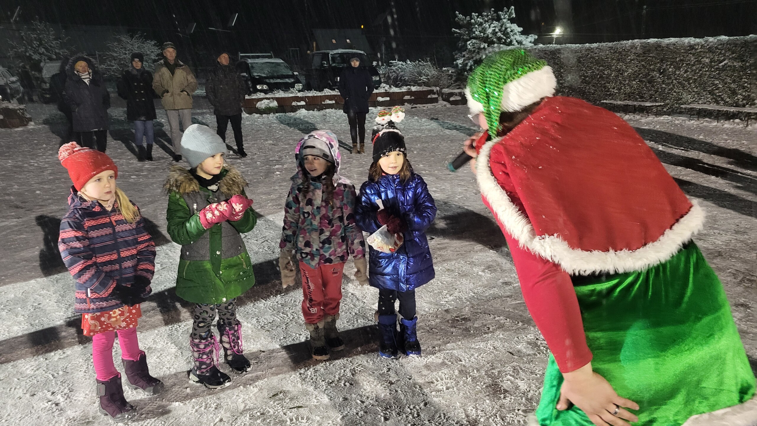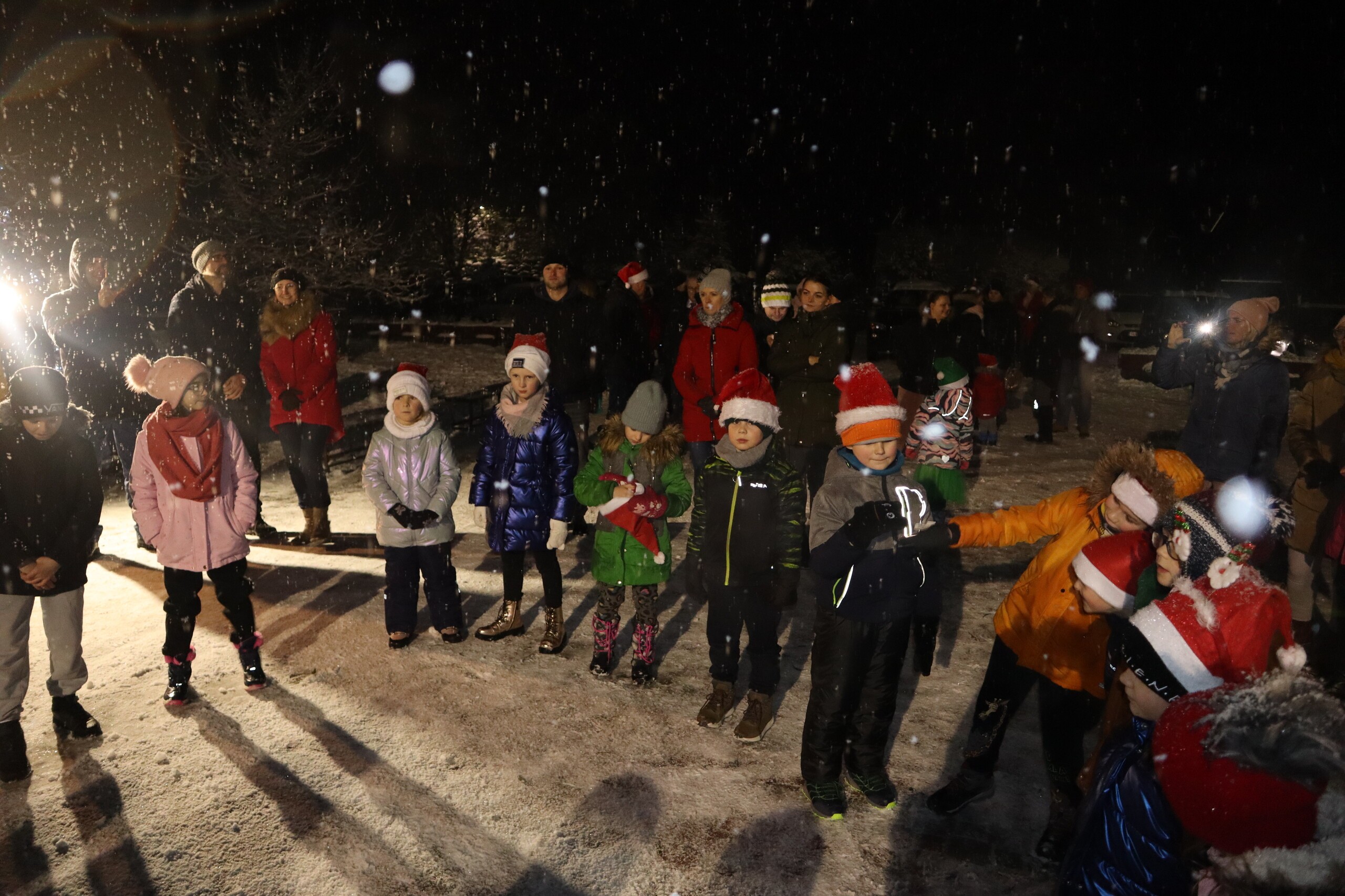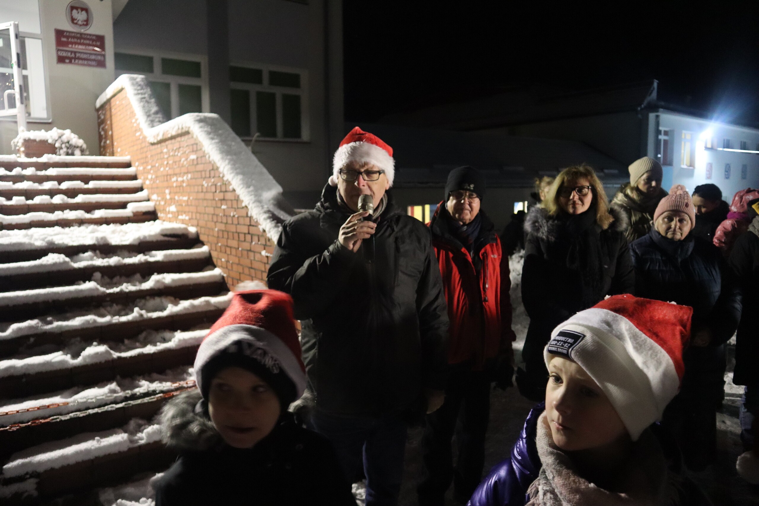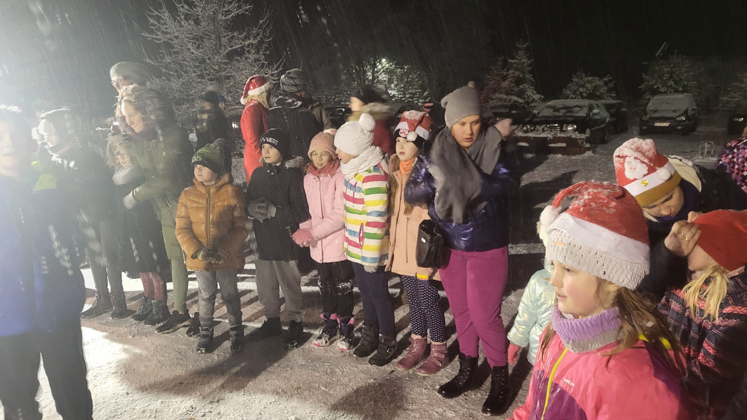 8 grudnia 2022 roku o godzinie 16.30 wspólnie z licznie przybyłymi mieszkańcami ubraliśmy choinkę. Dzieci w trakcie zajęć plastycznych i technicznych oraz w przedszkolu przygotowały ozdoby. Po wspólnej dekoracji nastąpił czas oświetlenia chwili. Radość dzieci, ale też i dorosłych była ogromna. Wspólnymi brawami, ale też i wspólnym śpiewem przywitaliśmy naszą choinkę. Dzieci z przedszkola oraz uczniowie klas I-III przygotowali pod kierunkiem swoich nauczycieli program artystyczny ze śpiewem i tańcami. Tego dnia dzieci odwiedził także święty Mikołaj ze swoimi pomocnikami. Uczniowie mogli wziąć udział w zabawach przygotowanych przez elfów, a na zakończenie każde dziecko otrzymało od Mikołaja prezent.
