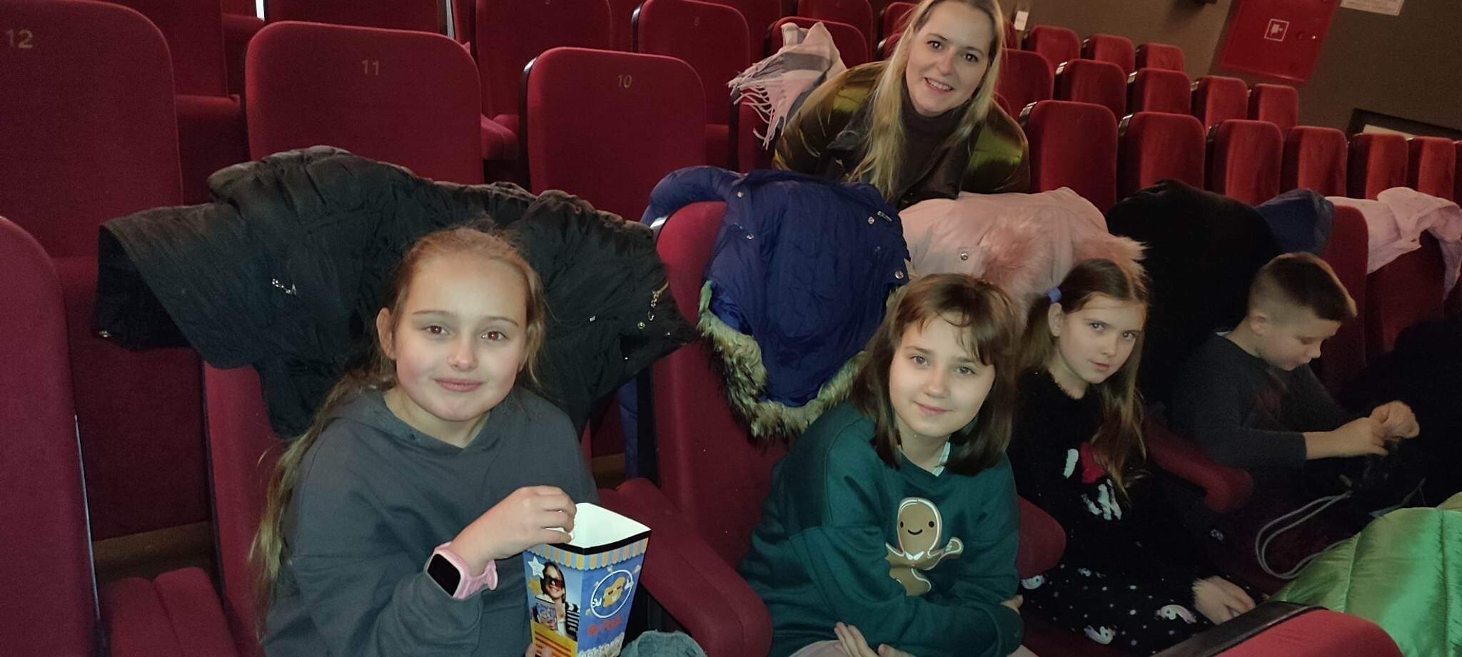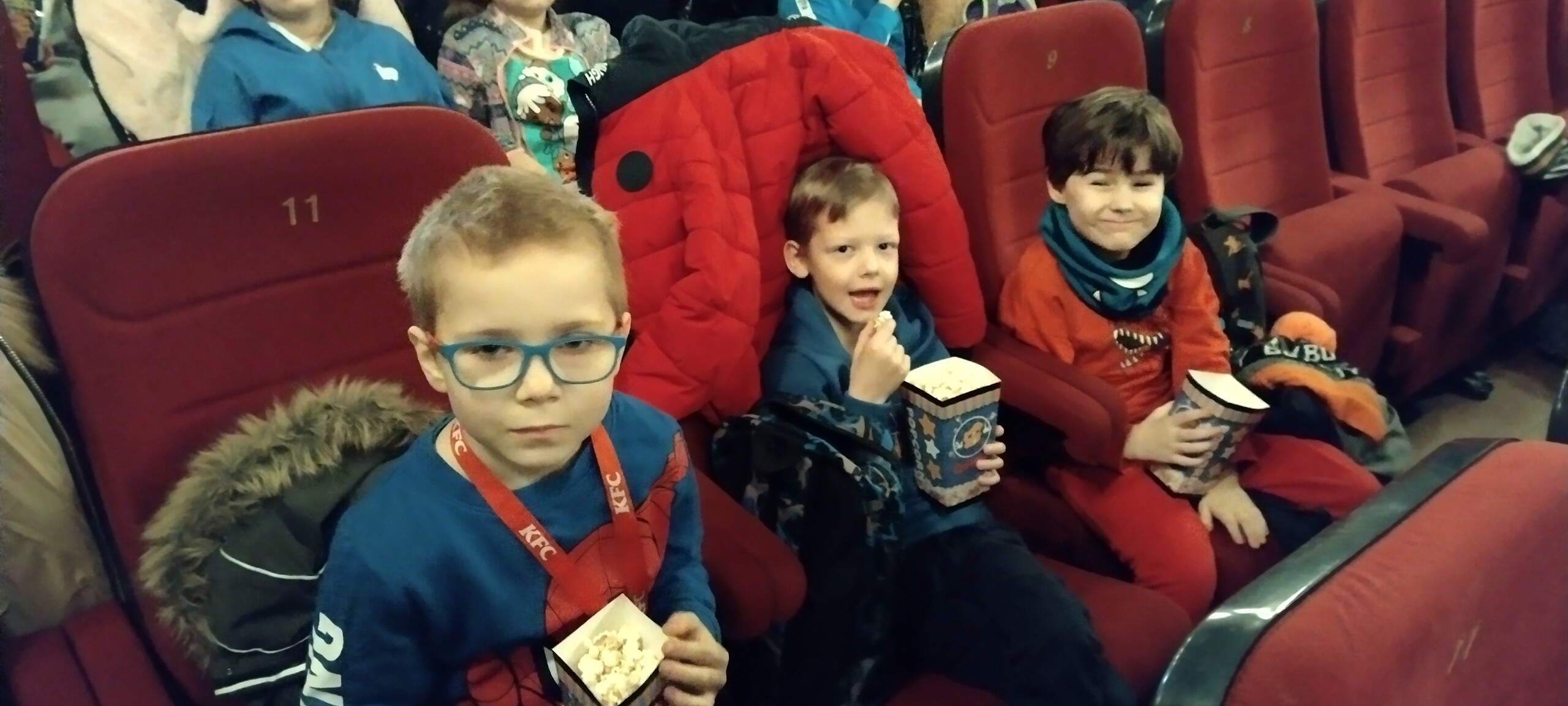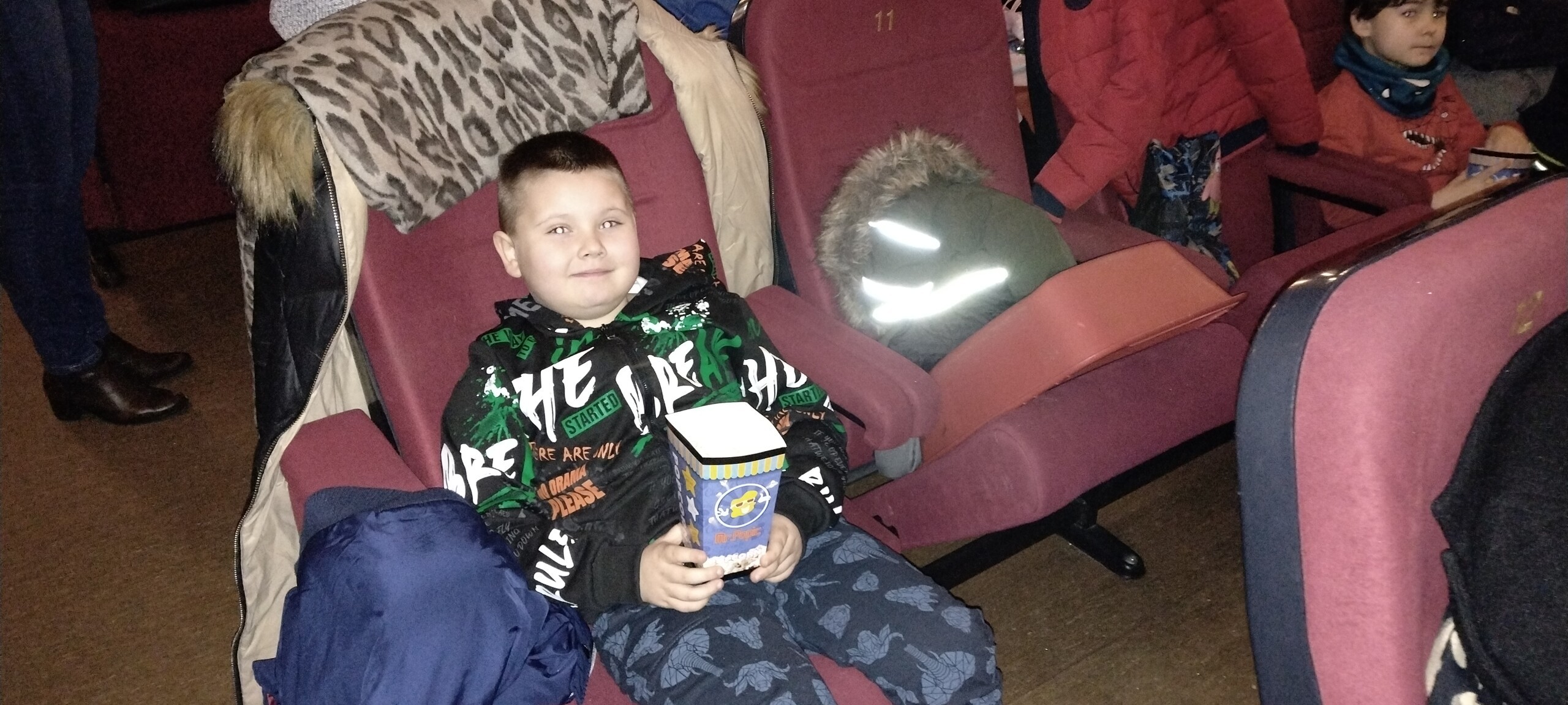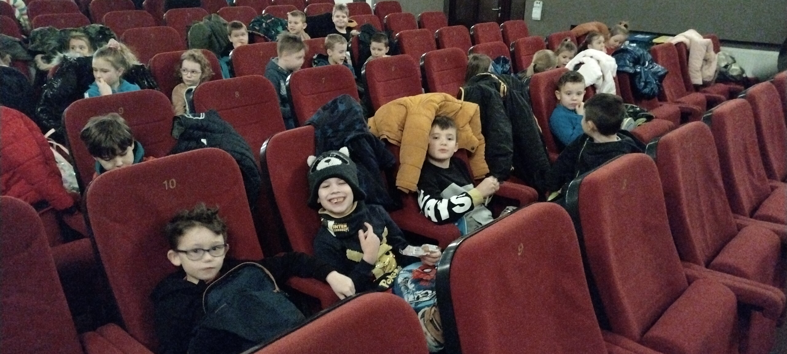 16 grudnia klasa 1, 2 i 3 wybrały się na wycieczkę do kina „Fregata” w Lęborku na film pt. „Dziwny Świat”. Oryginalna i pełna akcji produkcja Walta Disneya opowiada o rodzinie odkrywców o nazwisku Clade, która trafia do niezbadanej, zdradzieckiej krainy wraz z dziwną paczką, do której należą psotna klucha, trójnogi pies i liczna wygłodniałe stworzenia. Film dostarczył uczniom niezapomnianych wrażeń, a wycieczka wzbogaciła ich o nowe i ciekawe doświadczenia oraz wywołała wiele pozytywnych emocji. Uczniowie kształtowali nawyki kulturalnego zachowania się w miejscach publicznych i w środkach transportu.