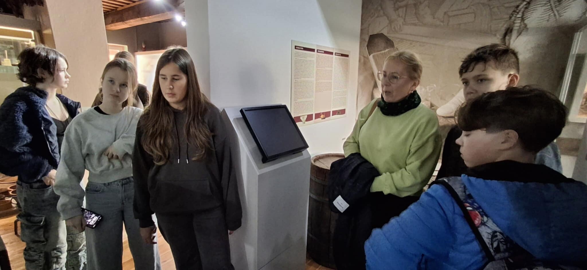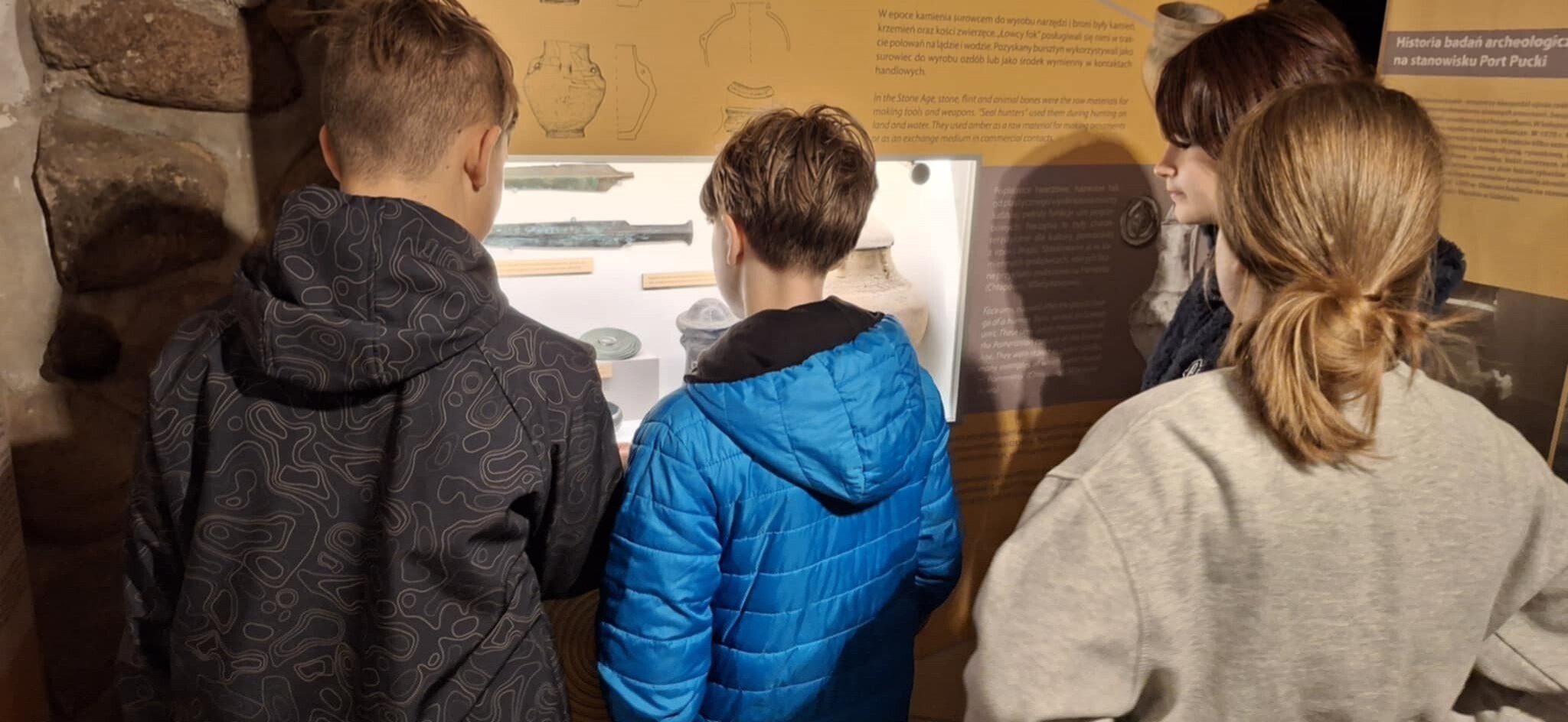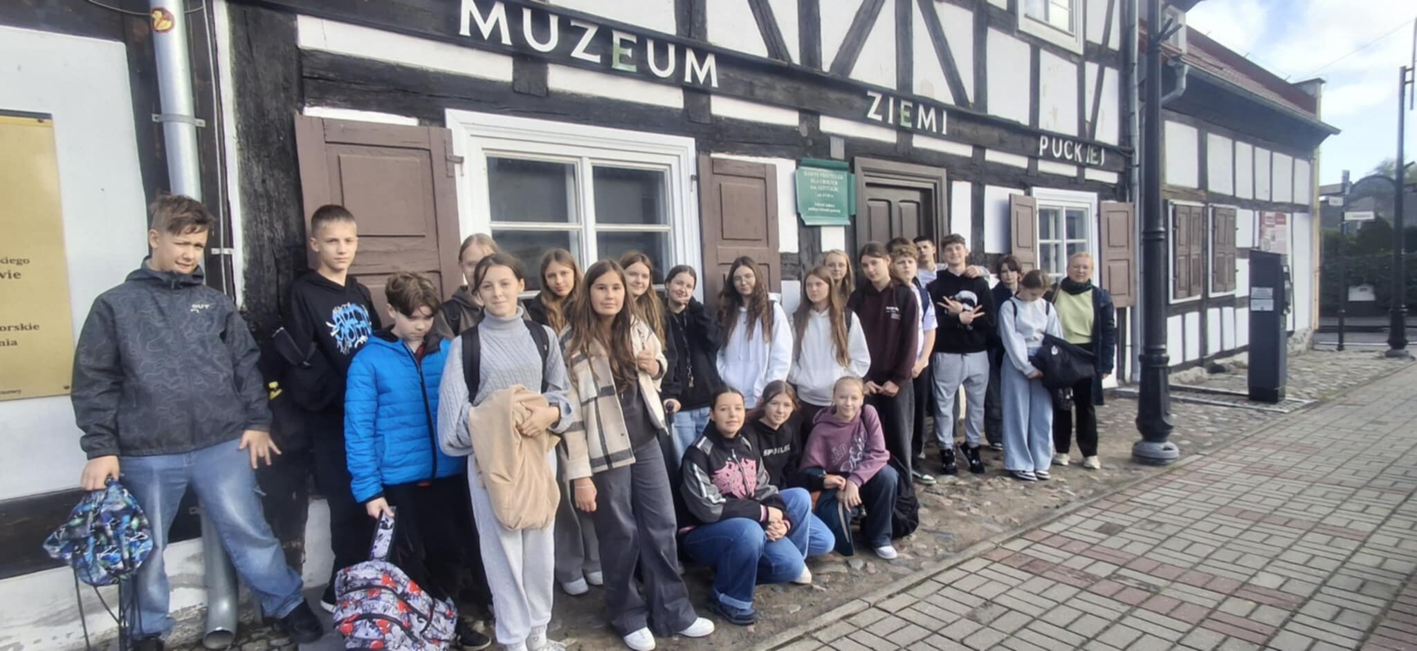 10 października uczniowie z klasy IV,V,VII i VIII uczęszczający na zajęcia języka kaszubskiego udali się na wycieczkę do Pucka, która rozpoczęła się zwiedzaniem Muzeum Ziemi Puckiej im. Floriana Ceynowy. W oddziale zwanym „Szpitalikiem” na ul. Wałowej dzieci miały możliwość zwiedzania ekspozycji stałej odtwarzającej wnętrze domu wiejskiego, w tym klasy szkolnej, sieni, izby i kuchni oraz warsztatów rzemieślniczych. Zobaczyły, jak wyglądało miejsce pracy szewca, krawca czy tkacza, a znajdujące się tam urządzenia były dla nich sporym zaskoczeniem. Na zakończenie zwiedzania obejrzały wystawę wytworów kultury ludowej Kaszub oraz ekspozycję pokazującą dzieje rozwoju medycyny i lecznictwa w Pucku i na Kaszubach. Kolejnym miejscem była Manufaktura Szkła PuckGlas. Huta szkła artystycznego jest miejscem, w którym pracują artyści. Tworzą oni niepowtarzalne konstrukcje szklane. Tuż obok huty znajduje się szlifiernia, gdzie następuje dalsza obróbka – szlifowanie oraz polerowanie. W hucie uczniowie poznali technikę dmuchania szkła połączoną z omówieniem sposobów obróbki szkła. Zobaczyli jak hutnik własnoręcznie wykonuje wazon i ptaka.