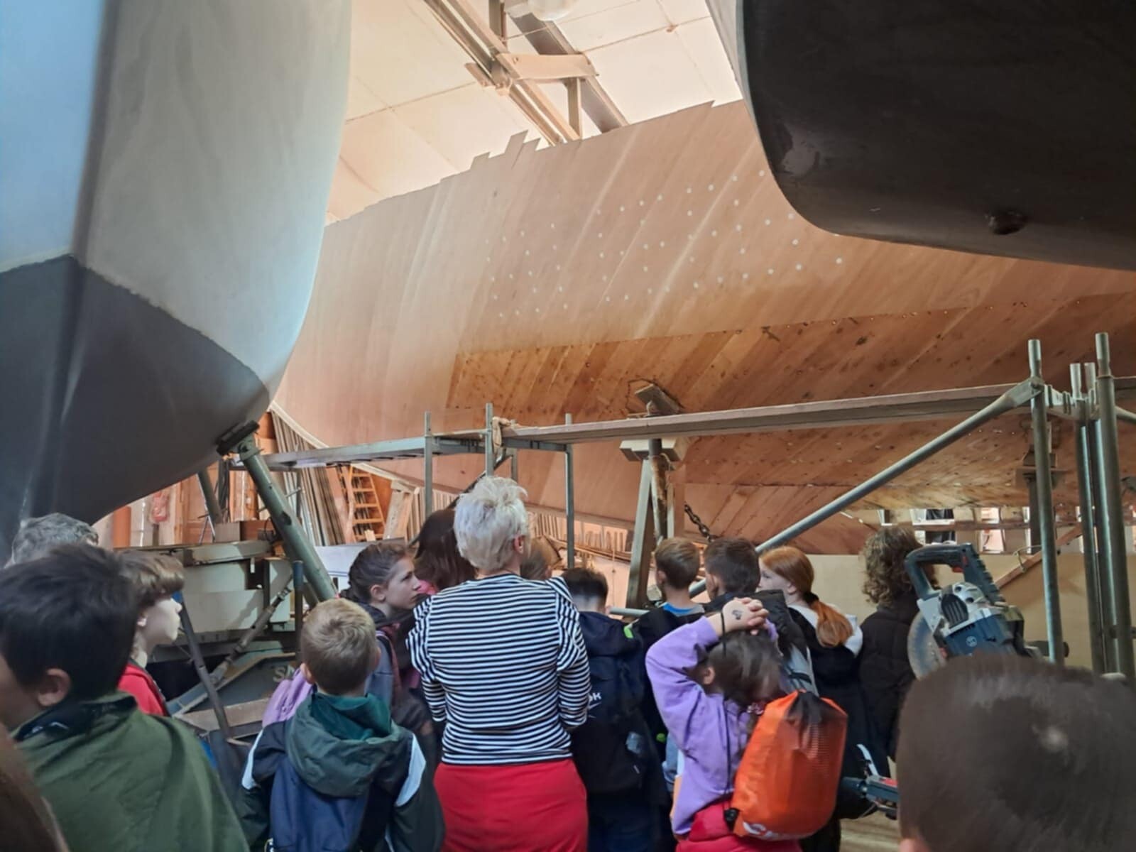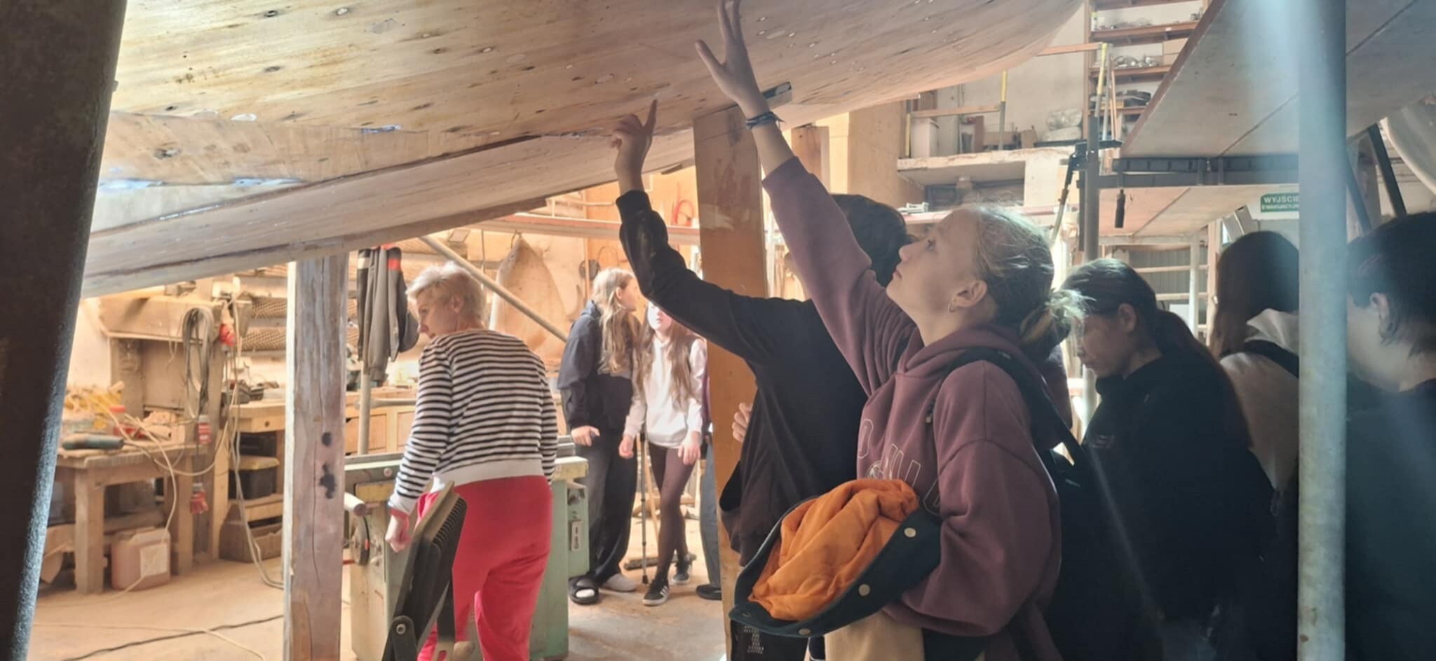 Następnie odwiedzili zakład szkutniczy, w którym pracownik opowiedział im, jak remontuje się jachty. Mogli obejrzeć je na różnych etapach prac.