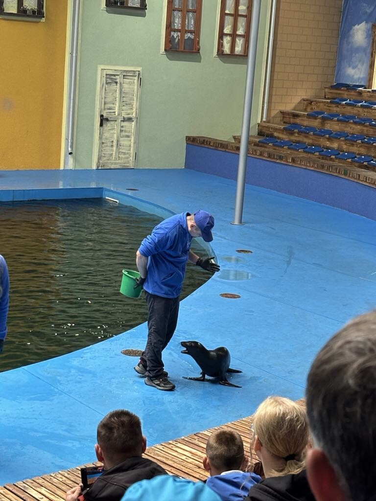 30 maja 2025r. uczniowie klasy czwartej i klas drugich uczący się języka kaszubskiego udali się do Sea Parku w Sarbsku. Wizyta w największym w Polsce fokarium była pełna atrakcji.