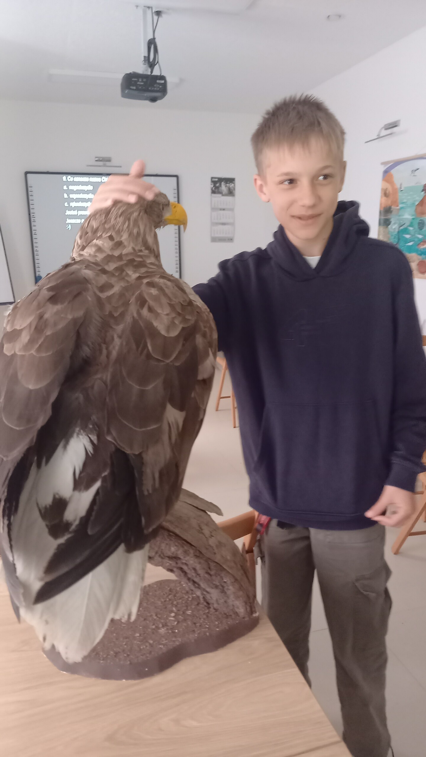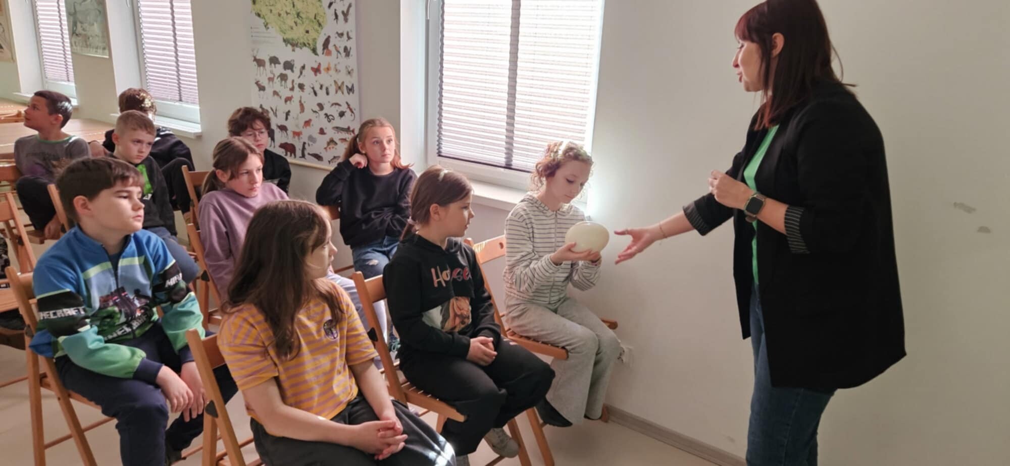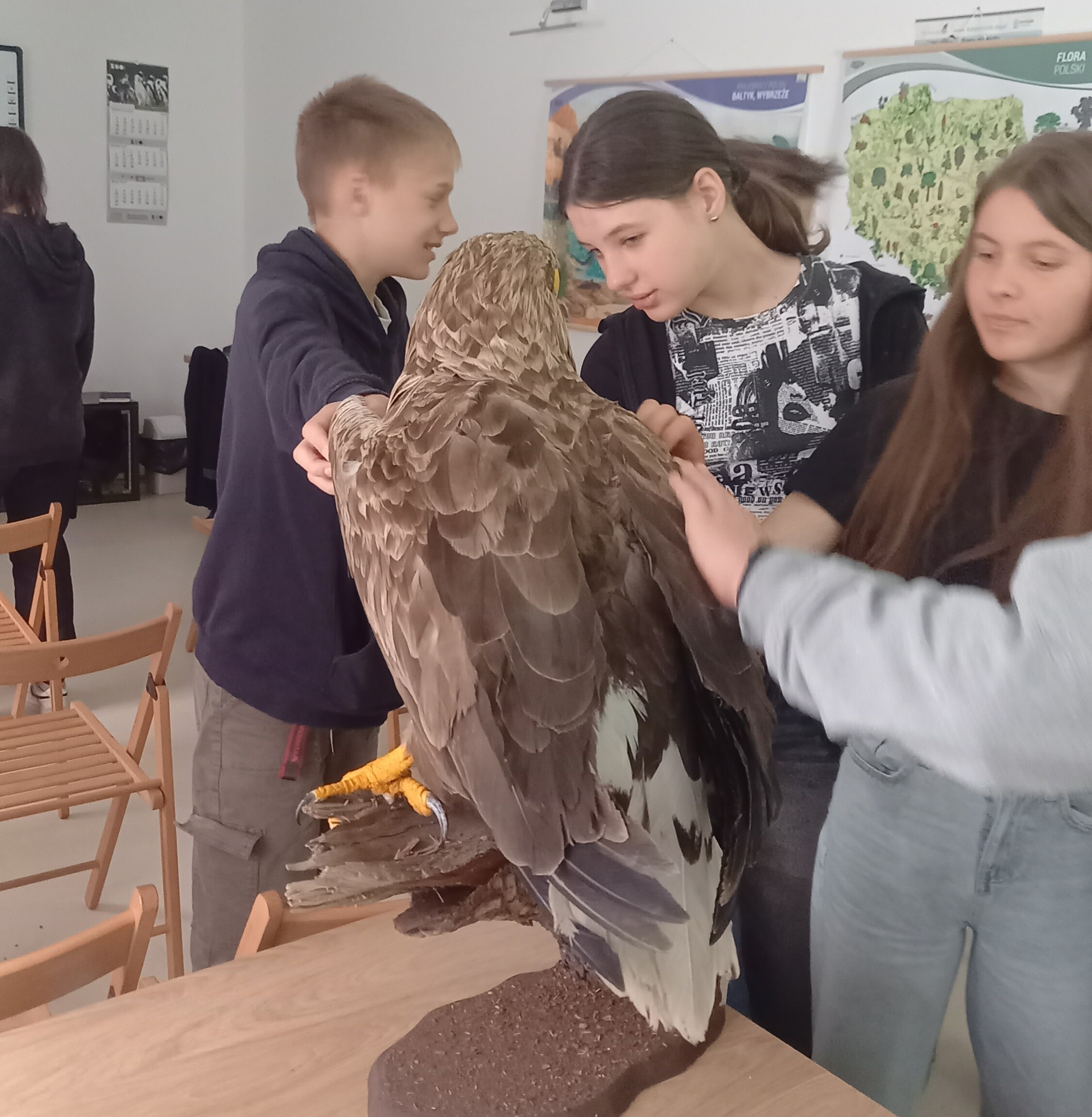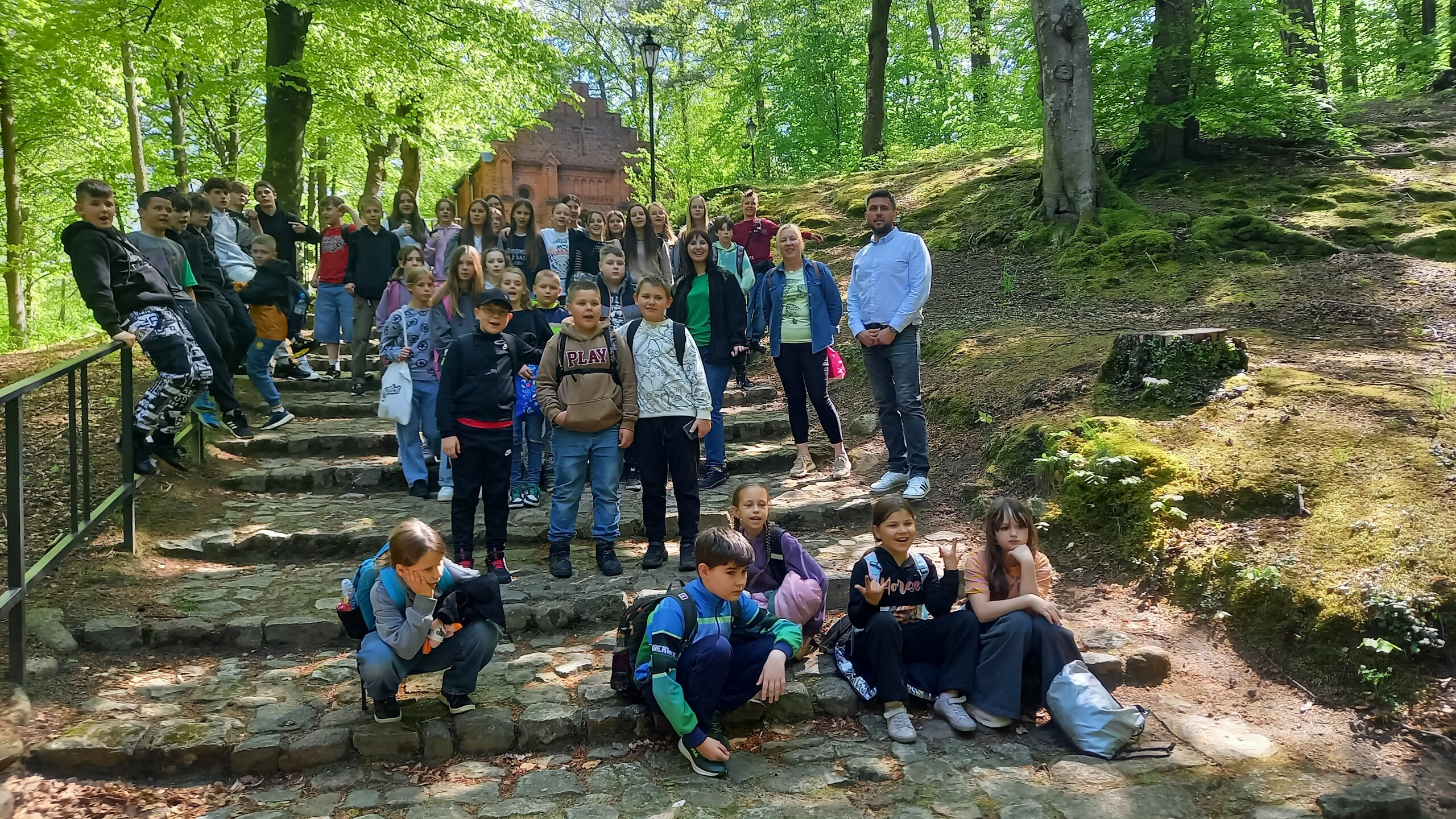 20 maja 2025 r. uczniowie z klasy III, IV, VI i VII (uczęszczający na zajęcia języka kaszubskiego) uczestniczyli w wycieczce do Wejherowa. Dział Edukacji Przyrodniczej Mieszczący się w Parku Miejskim im A. Majkowskiego zorganizował dla naszej grupy zajęcia pt.: „Ptaki wokół nas" oraz „Nie taki nietoperz straszny". Podczas nich uczniowie poznali wiele ciekawych informacji na temat życia ptaków i nietoperzy. Część nietypowej lekcji przyrody odbyła się na terenie parku, gdzie dzieci wraz z edukatorką panią Joanną Janiec karmiły czarnego łabędzia, oglądały pelikany i łabędzie czarnoszyje. W specjalnej wolierze mogły podziwiać z bliska bielika, co w naturze jest prawie niemożliwe.