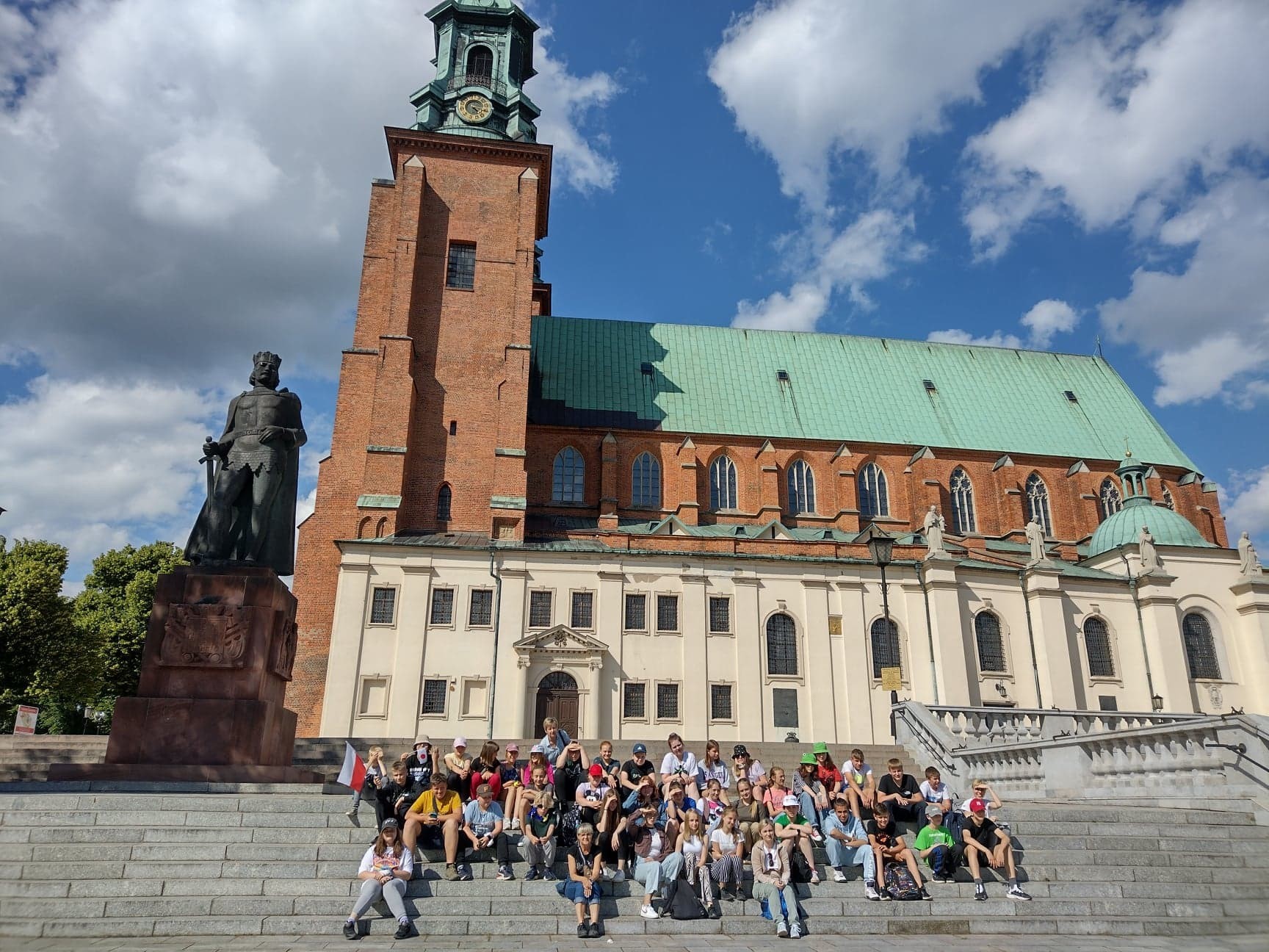 W dniu 15 czerwca klasy V- VIII wybrały się na wycieczkę do Poznania i Gniezna. Podroż trwała aż 6 godzin. Wizytę w mieście zaczęli nietypowo, bo od obiadu w zabytkowej restauracji „Bamberka”. Po posiłku zwiedzili Stare Miasto: Bazylikę Archikatedralną, Stary Rynek z Ratuszem, renesansowe i barokowe kamieniczki. O historii miasta i jego zabytkach bardzo ciekawie opowiadała pani przewodnik. Następnie autobusem udali się w kierunku Ostrowa Tumskiego. Tam zwiedzili monumentalną katedrę romańsko-gotycką, gdzie w XV wiecznej Złotej Kaplicy, znajduje się mauzoleum z nagrobkami pierwszych królów polskich: Mieszka I i Bolesława Chrobrego. Po południu pojechali do Gniezna , gdzie zawitali na Wzgórzu Katedralnym zwiedzając gotycką katedrę i Drzwi Gnieźnieńskie. Potem jeszcze spacer Traktem Królewskim do centrum, zakup pamiątek i powrót późnym wieczorem do domu. Zarówno pogoda jak i humory dopisywały wszystkim do samego końca.