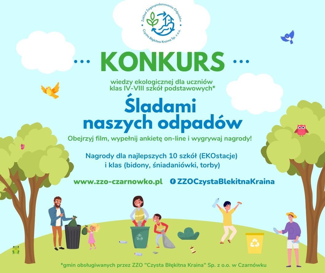 Uczniowie klas IV- VIII wzięli udział w konkursie wiedzy ekologicznej pt.: „Śladami naszych odpadów” organizowanym przez Zakład Zagospodarowania Odpadami Czysta Błękitna Kraina w Czarnówku. Konkurs polegał na sprawdzeniu wiedzy na temat zapobiegania powstawania odpadów, a jeśli już powstaną – to prawidłowej ich segregacji. Zadaniem dzieci było zapoznanie się z materiałem edukacyjnym i udzielenie odpowiedzi na pytania w ankiecie on-line. Nasi uczniowie poradzili sobie bardzo dobrze w rezultacie czego, nasza placówka jako jedna z 10-ciu innych szkół została nagrodzona – EKOstacją ( pojemniki do segregacji i tablice informacyjne) oraz zestawami EKOupominków.