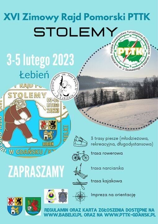 W dniach 3-5 lutego 2023 roku na terenie powiatu lęborskiego odbył się XVI Zimowy Rajd Pomorski PTTK „STOLEMY” zorganizowany przez PTTK Oddział im. dra J. Szukalskiego w Gdańsku. Honorowy patronat na imprezą objęli starosta lęborski Alicja Zajączkowska i wójt gminy Nowa Wieś Lęborska Zdzisław Chojnacki. Ponad 130 osobowa grupa uczestników rajdu przez 3 dni miała możliwość zwiedzania obiektów historycznych i geograficznych na terenie powiatu lęborskiego. Trasy rajdu wiodły przez następujące miejscowości: Lębork, Wilkowo Nowowiejskie, Obliwice, Nowa Wieś Lęborska, Garczegorze, Łebień, Lędziechowo, Zdrzewno, Kopalino, Maszewko, Roszczyce, Sarbsk, Ulinia, Nowęcin, Łeba, Wicko, Gęś, Charbrowo, Wrzeście, Krępa Kaszubska. Uczestnicy rajdu mogli skorzystać z przygotowanych przez kadrę rajdu tras pieszych, rowerowych, kajakarskich i górskich oraz imprez na orientację.