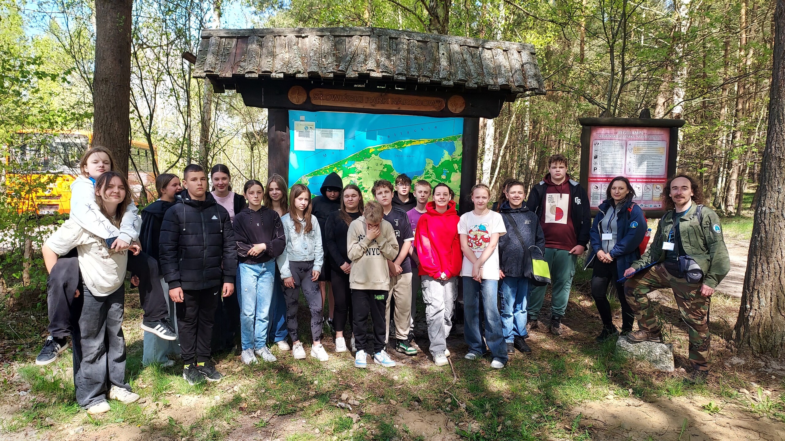 29 kwietnia uczniowie klasy VI i VII uczestniczyli w zajęciach terenowych na trasie ścieżki przyrodniczej „Żarnowska”. Poprowadzili je edukatorzy ze Słowińskiego Parku Narodowego. Zajęcia rozpoczęły się w miejscowości Gać. Trasa ścieżki prowadziła poprzez leśne tereny objęte ochroną. Na szlaku znajdowały się przystanki z chronionymi gatunkami roślin, które opisane były na tablicach informacyjnych, np. długosz królewski, malina moroszka i inne. Spacer edukacyjny prowadził m.in. przez bór sosnowy, las olszowy i bukowy aż do Wielkiego Bagna. Uczniowie zobaczyli nieistniejącą już miejscowość Babidół (osada rybacka z widocznymi jeszcze gruzami budynków oraz dawny cmentarz, na którym mieszkańcy wsi Gać i pobliskich osad rybackich chowali niegdyś swoich bliskich. Podczas zajęć uczniowie mogli podziwiać osobliwości natury niespotykane w innych częściach naszego kraju. Zostali zapoznani m.in. z wydmami śródlądowymi, sukcesją roślinności, fizjonomią torfowiska wysokiego. Podczas tych zajęć uczniowie odkryli jak złożony, bogaty i tajemniczy jest świat przyrody.