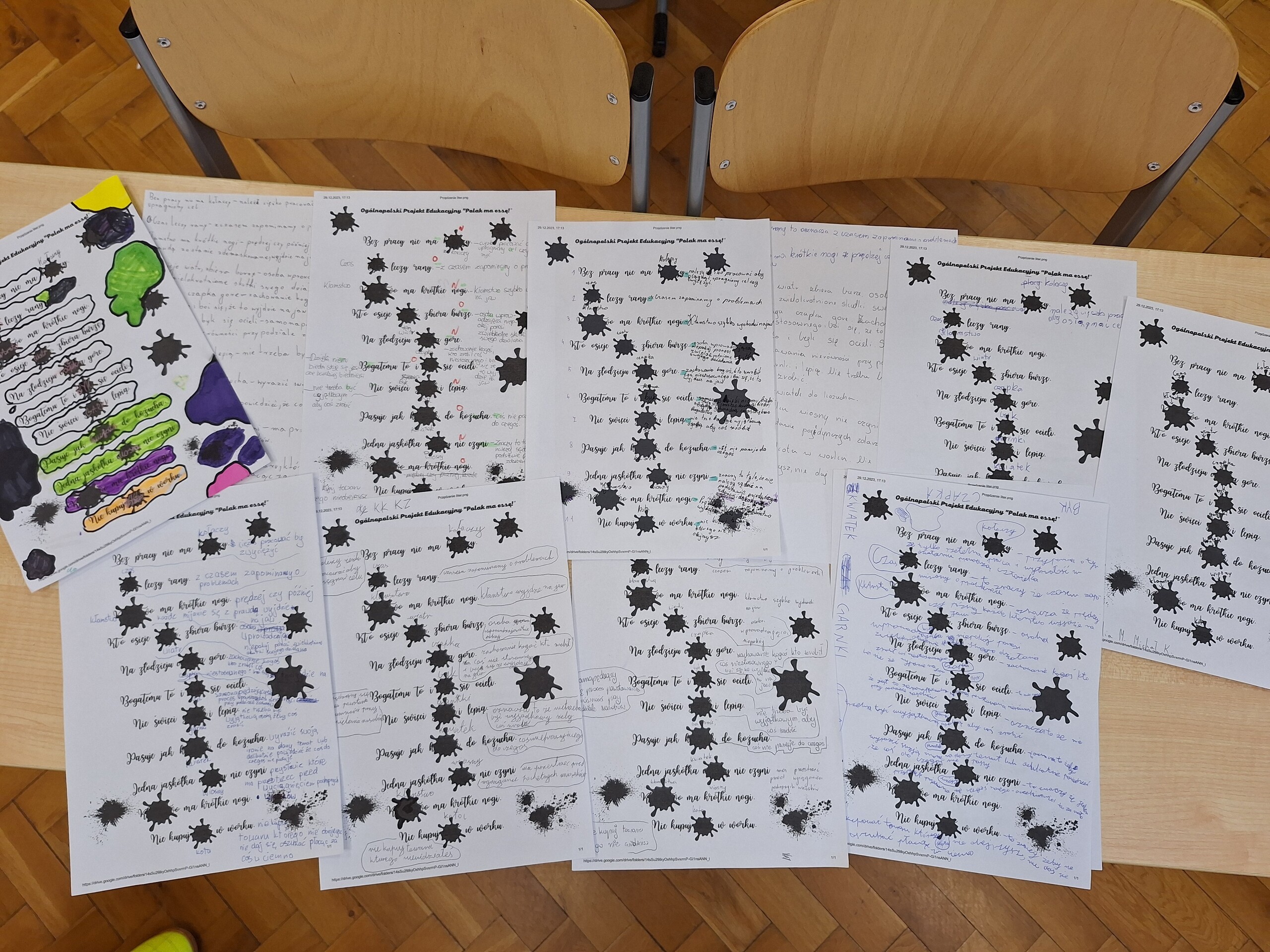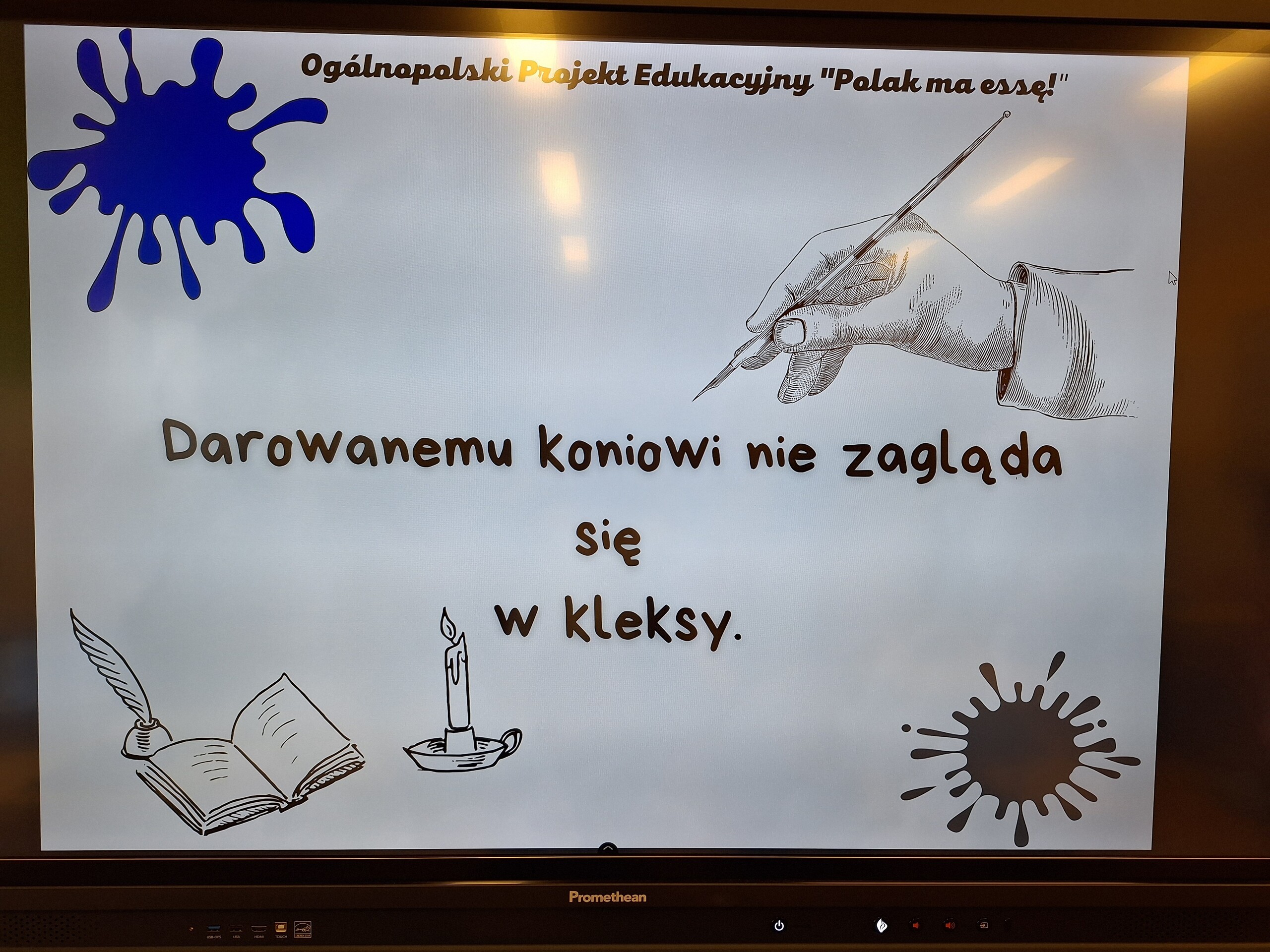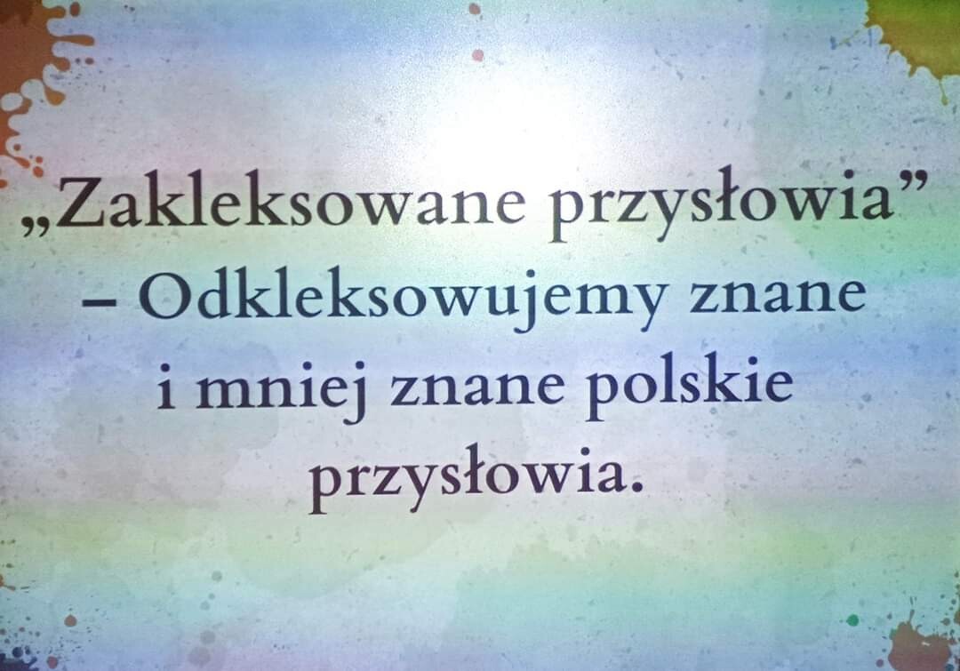 Uczniowie klasy 5 wykonali dziś następne zadanie w Ogólnopolskim Projekcie Edukacyjnym "Polak ma essę!" Zadanie polegało na odszyfrowaniu kleksów, dzięki temu poznali nowe przysłowia i przekonali się, że prawdą jest powiedzenie, że: „Przysłowia są mądrością narodu”. Była to też dobra okazja do przypomnienia omawianej rok wcześniej lektury "Akademia pana Kleksa" Jana Brzechwy.
