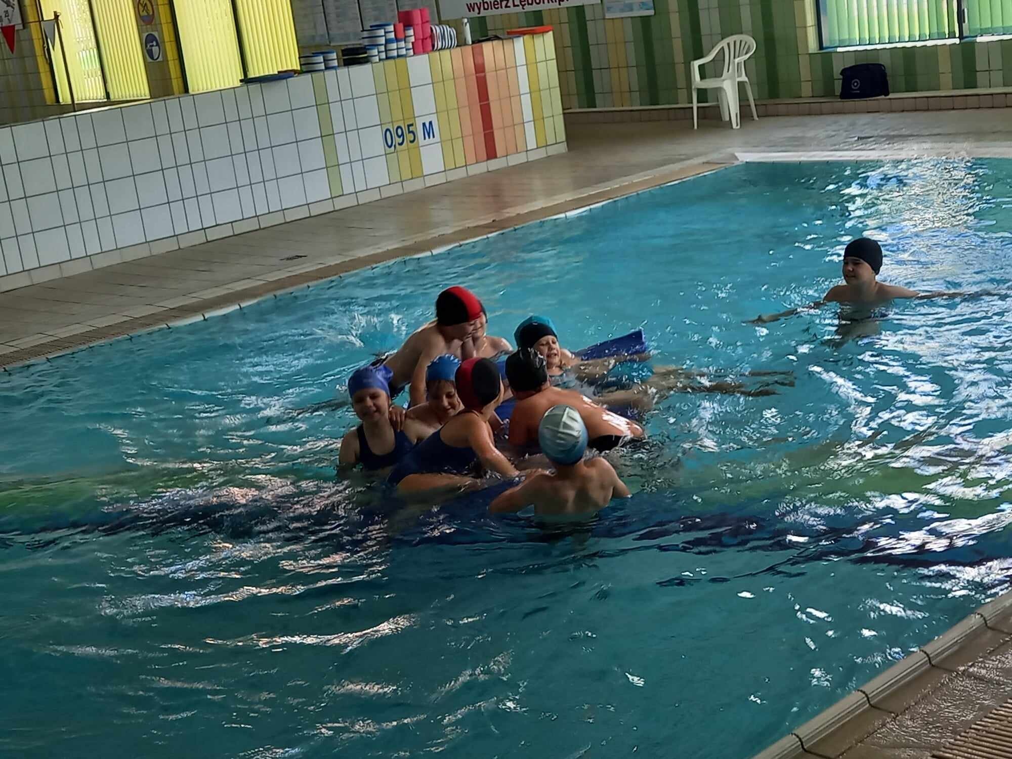Uczniowie klasy Ia i Ib zakończyły Program Powszechnej Nauki Pływania „Umiem pływać”. Zajęcia odbywały się w Pływalni Miejskiej „Rafa” w Lęborku. Program powszechnej nauki pływania był propozycją uczestnictwa w dodatkowych zajęciach dla uczniów, którzy chcą podejmować aktywność fizyczną poza obowiązkowymi zajęciami wychowania fizycznego.