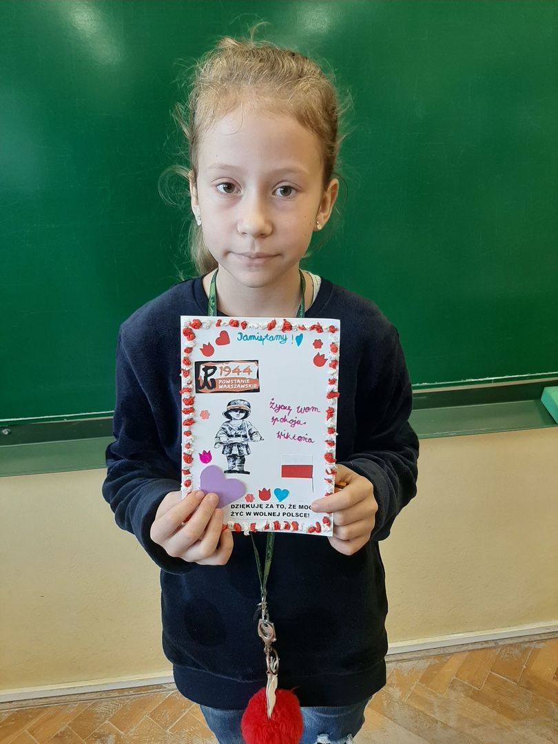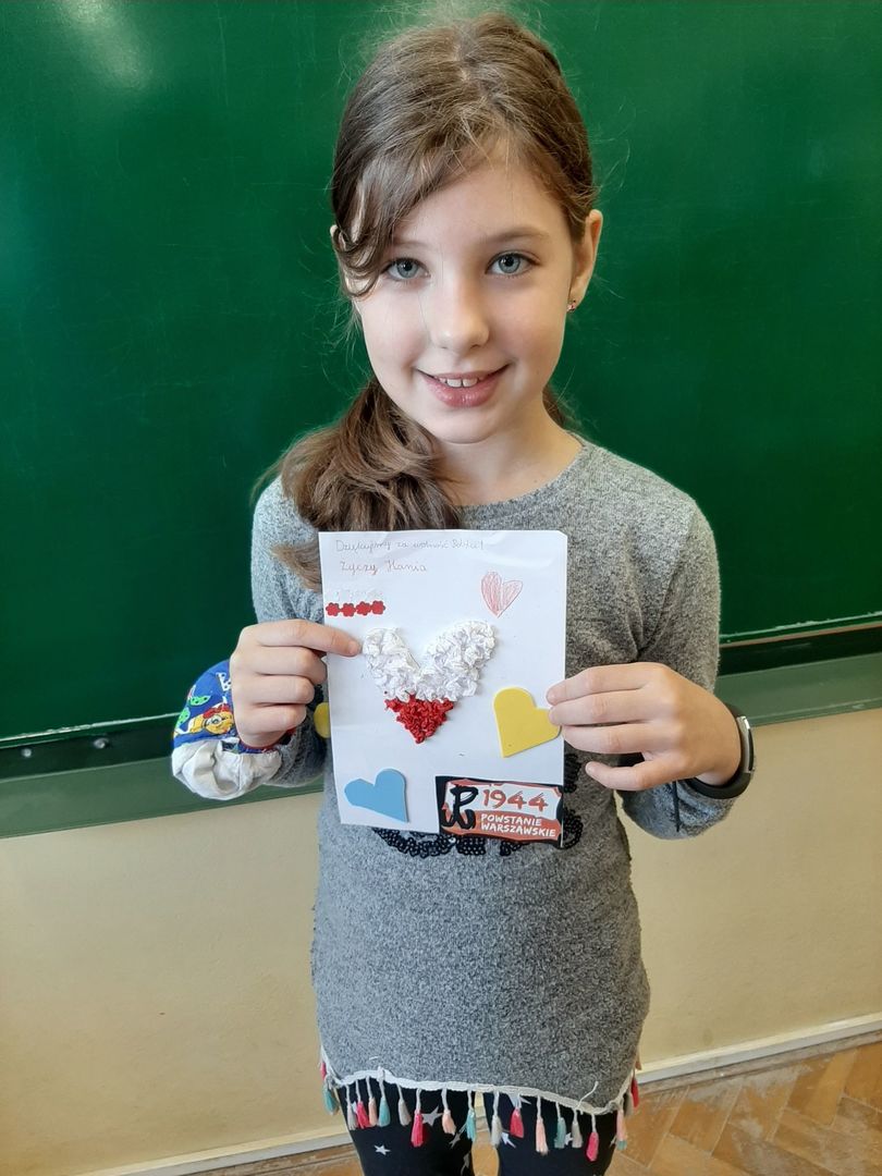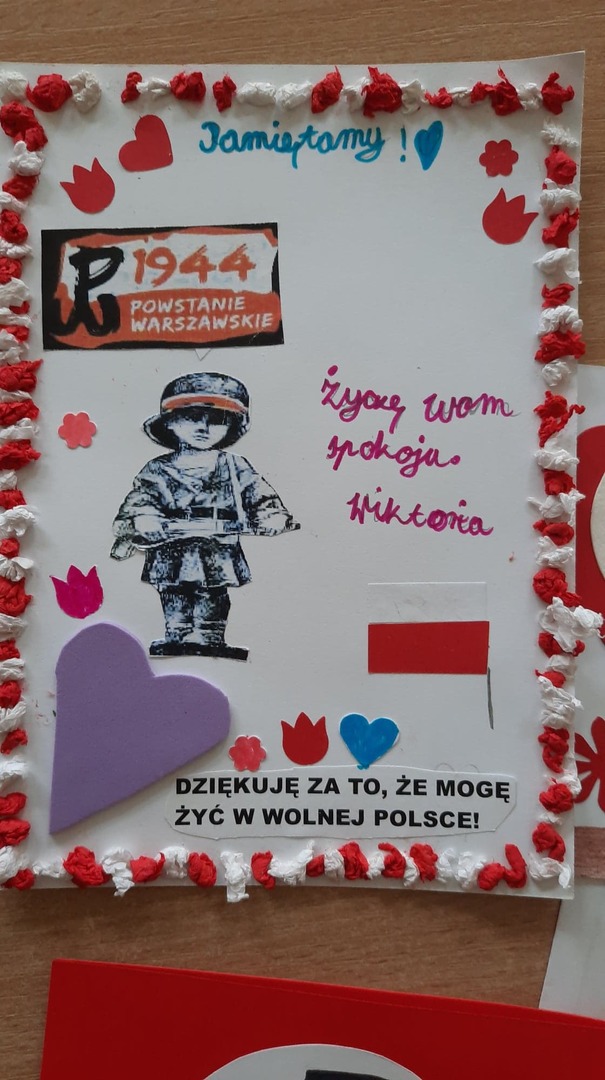 Na lekcjach historii czy też na zajęciach zintegrowanych zapoznawano uczniów z tematyką Powstania Warszawskiego oraz ideą akcji. Podczas zajęć w szkole lub w domu uczniowie wykonali piękne laurki, napisali listy, w których wyrażali swoją wdzięczność. 53 kartki zostały wysłane do Fundacji Sensoria do Wrocławia. Stamtąd trafią już we właściwe ręce- do uczestników Powstania Warszawskiego. Patrząc na laurki, od razu nasuwa się wniosek- zostały one wykonane z potrzeby serca, z chęci powiedzenia Naszym Bohaterom jak bardzo jesteśmy wdzięczni… Gratulujemy dzieciom postawy i cały czas PAMIĘTAMY…