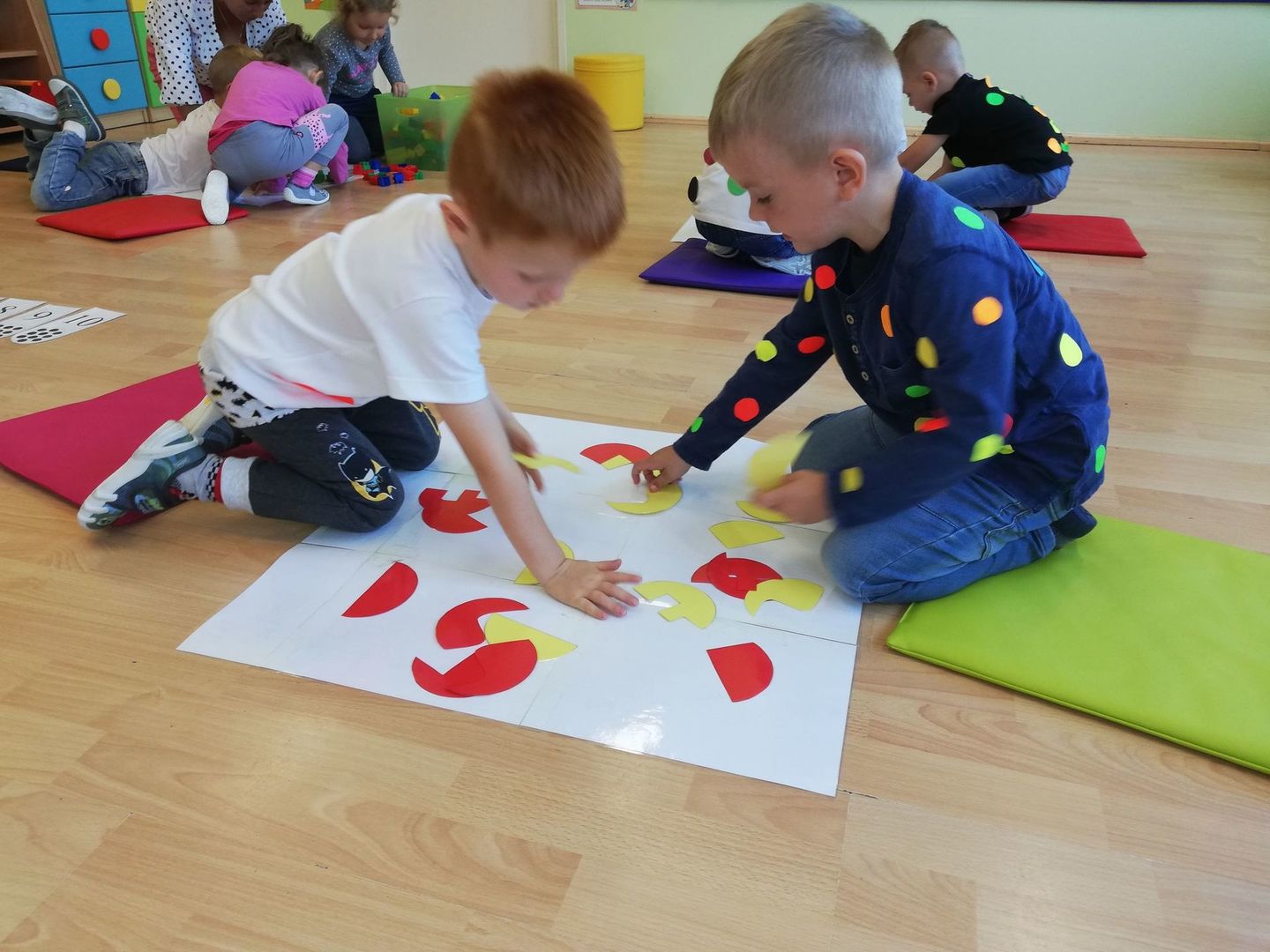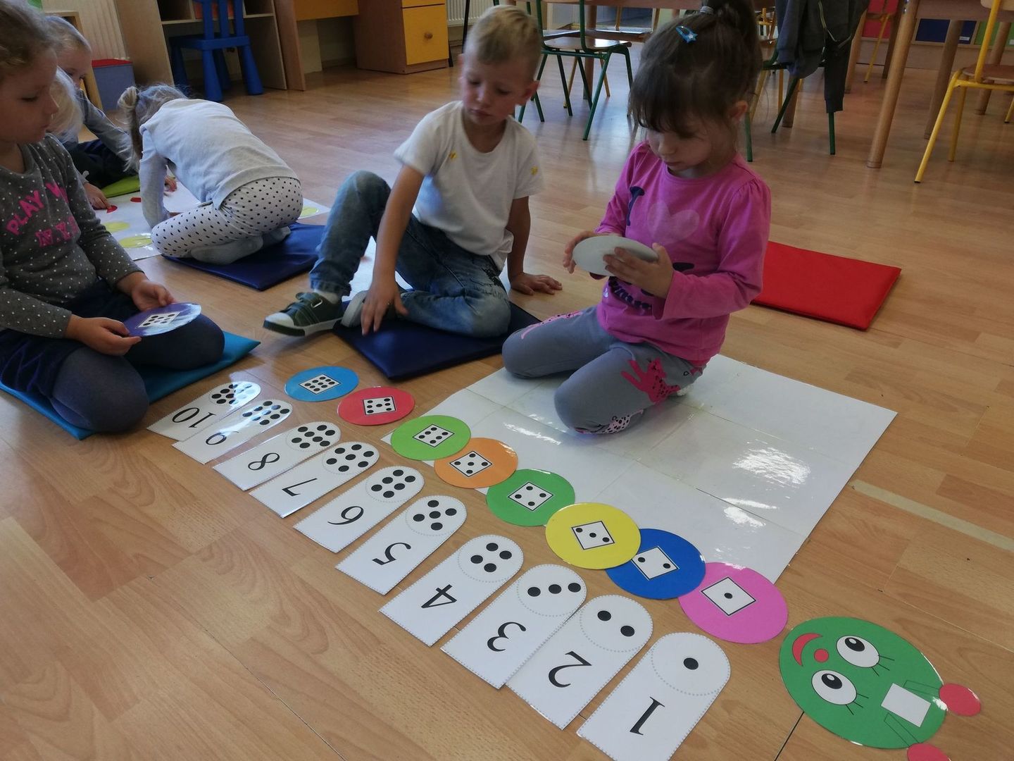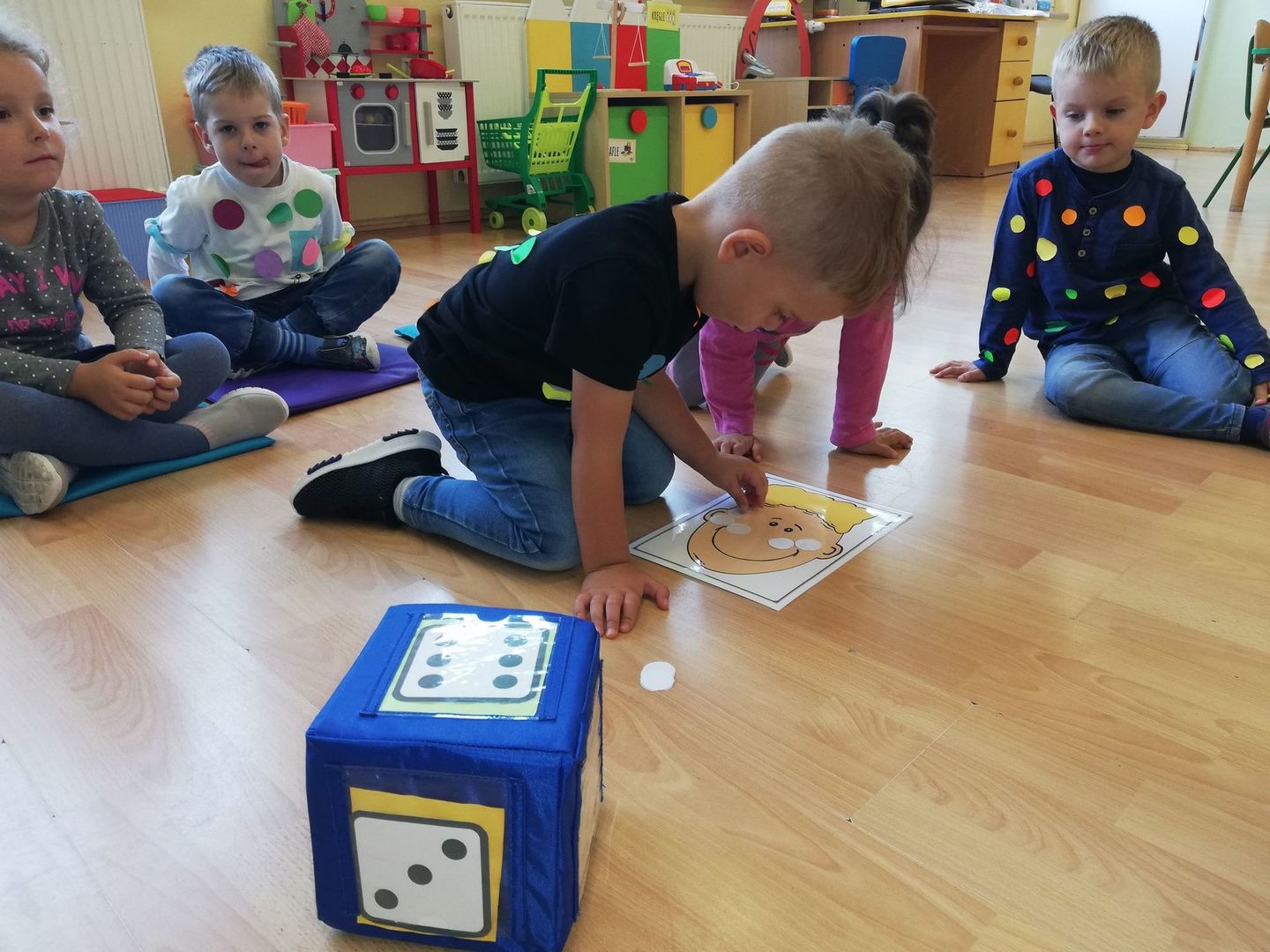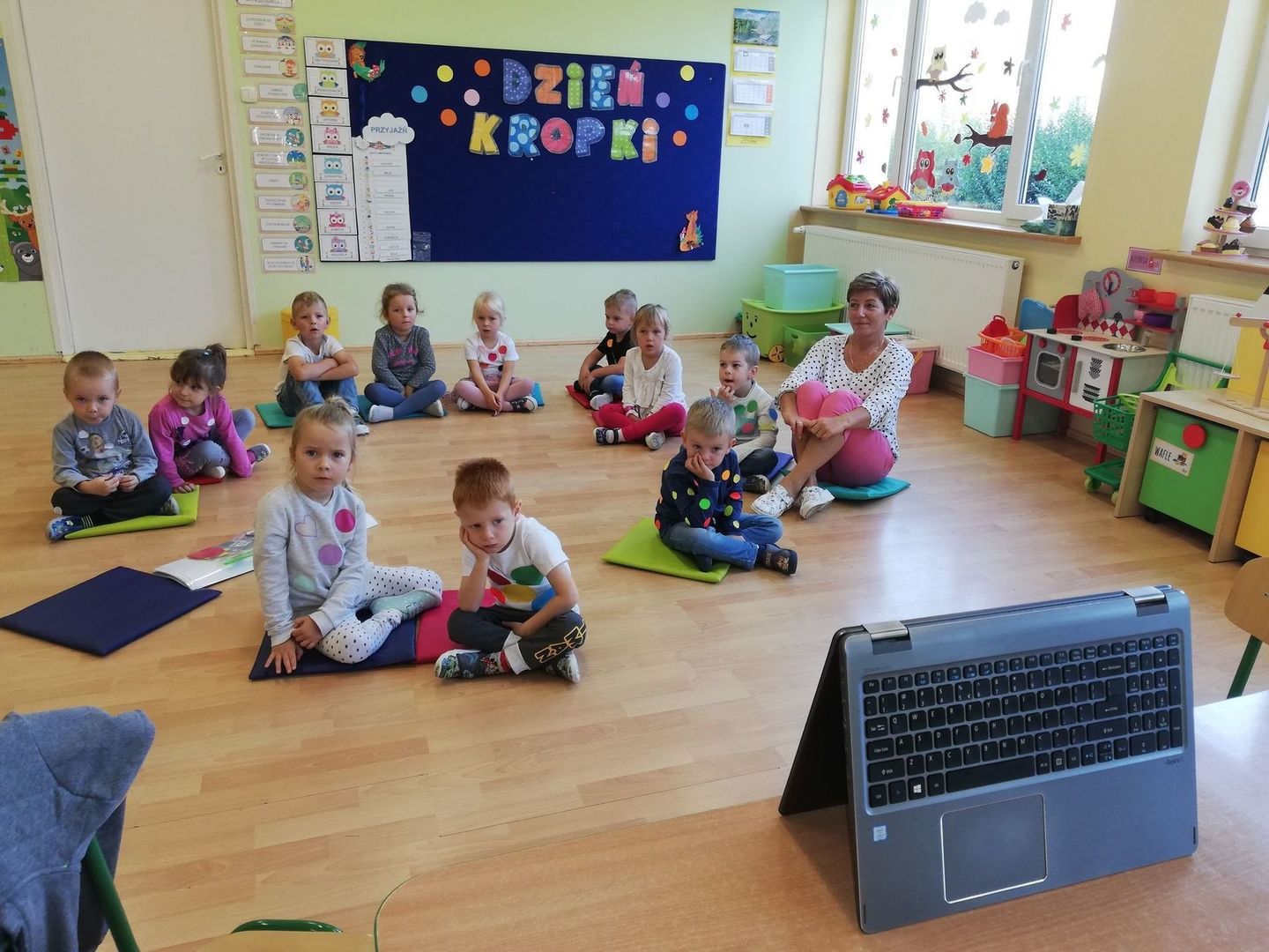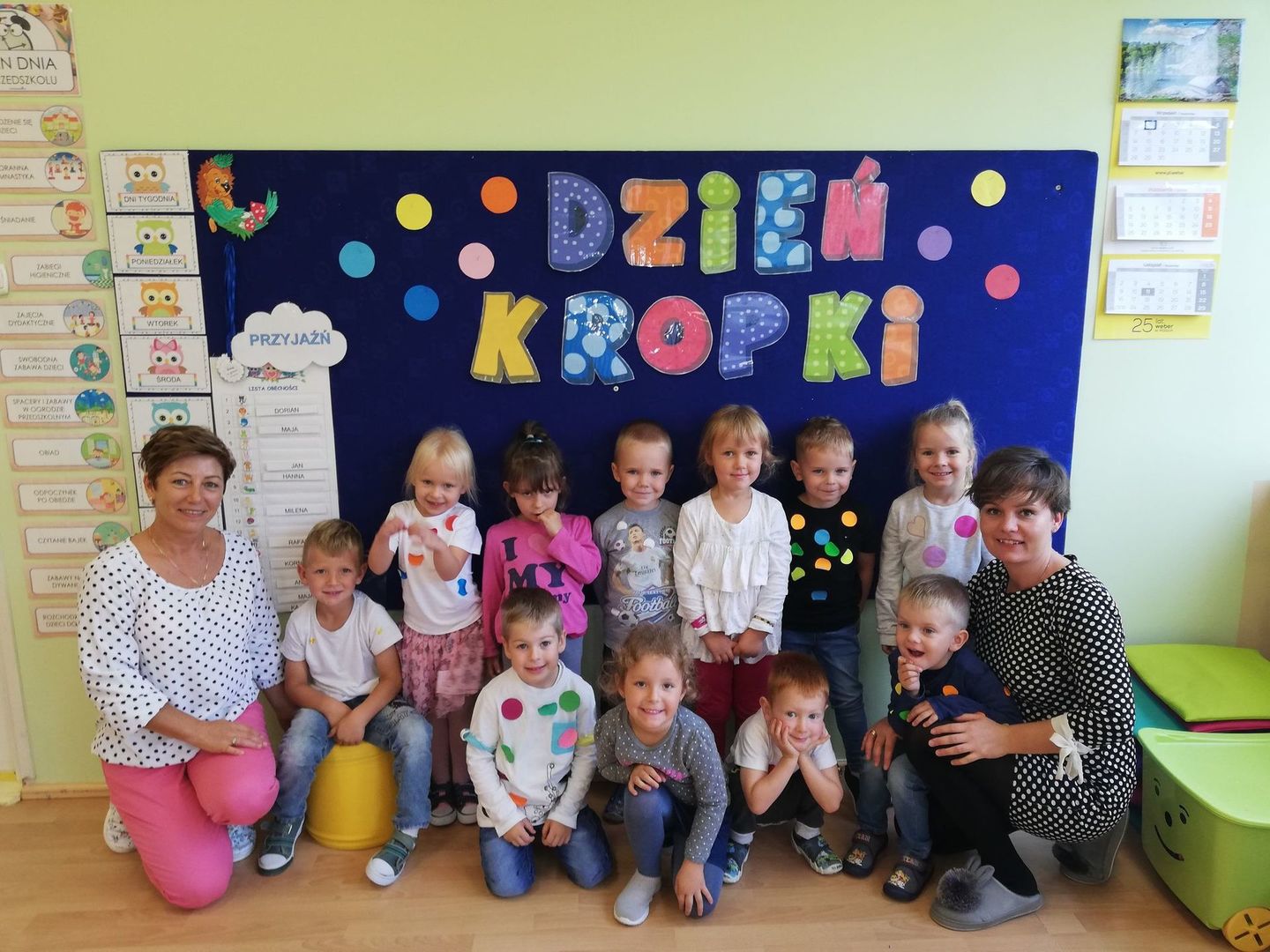 15 września obchodziliśmy Międzynarodowy Dzień Kropki, którego celem było wzbudzenie u dzieci kreatywności, pomysłowości i zachęcenie ich do tworzenia. Tego dnia nasze ubrania i wszelka aktywność wypełnione były kolorowymi kropkami. Punktem wyjściowym było poznanie historię Vashi, małej dziewczynki, której zwyczajna kropka zmieniła świat, a przedszkolakom uświadomiła, że w każdy ma ukryty talent-zdolności.