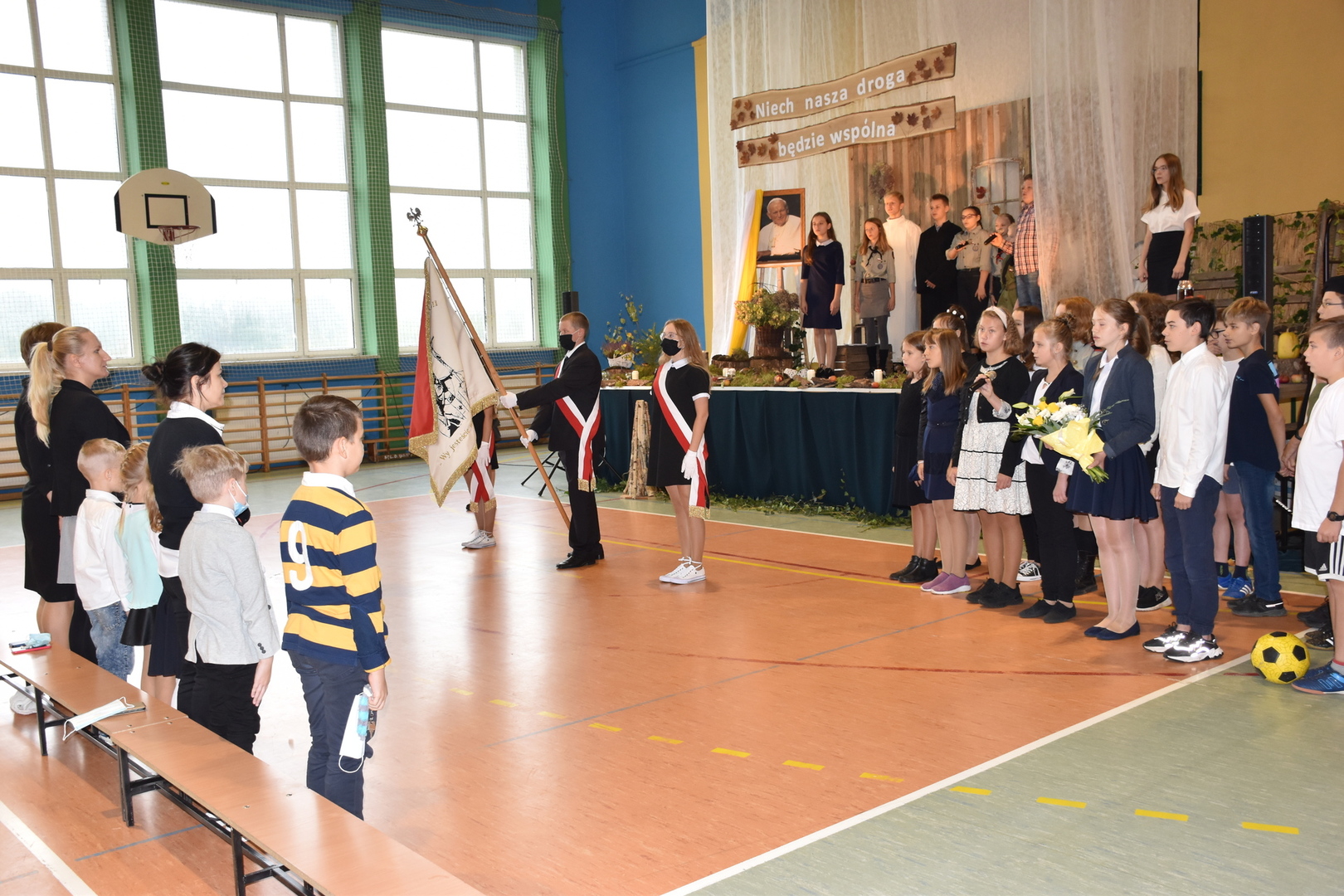 Pod takim hasłem obchodziliśmy 14 rocznicę nadania naszej szkole imienia Jana Pawła II. Ze względu na sytuację jaka panuje w naszym kraju i w naszej okolicy zachowaliśmy wszelkie środki ostrożności. Każdy z uczestników miał założoną maseczkę oraz siedzieli od siebie w odpowiednich odległościach. Święto naszego patrona obchodziliśmy przez dwa dni.