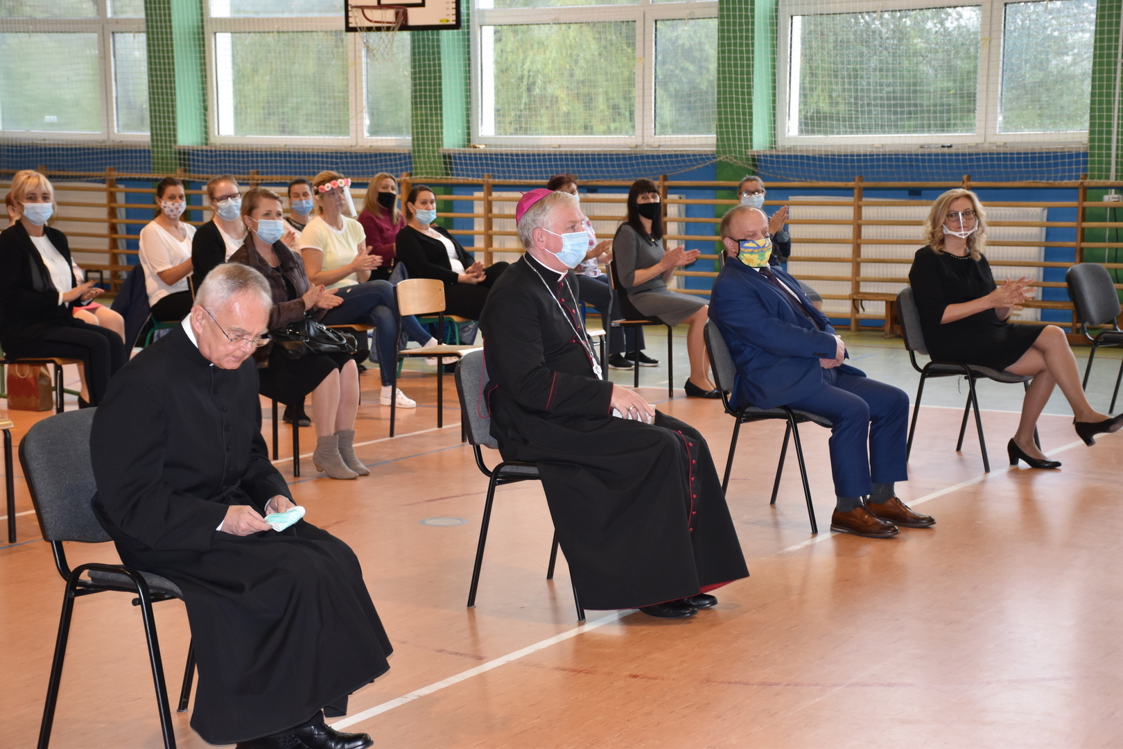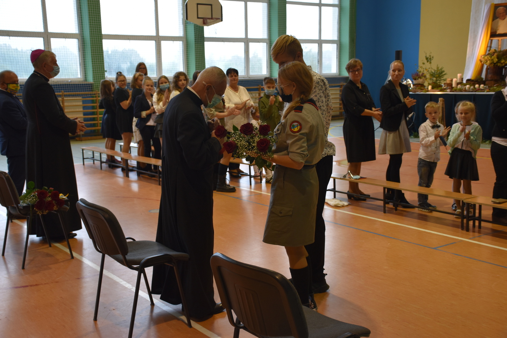 Dzień 14 października był w naszej szkole dniem wyjątkowym, ponieważ tego dnia gościliśmy w naszej społeczności Jego Ekselencję Księdza Biskupa Ryszarda Kasynę, który przybył, aby spotkać się z nami w towarzystwie Księdza Proboszcza Janusza Górala oraz Wójta Gminy Nowa Wieś Lęborska pana Ryszarda Wittke. W uroczystości brali również udział przedstawiciele Rady Rodziców, nauczyciele, pracownicy oraz dzieci przedszkolne pięcio i sześciolatki.