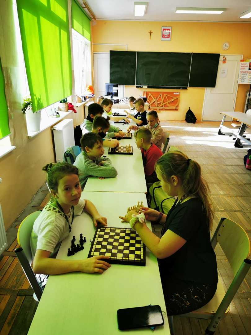 W ramach innowacji pedagogicznej „Rozwijanie myślenia z wykorzystaniem elementów gry w szachy” w klasie III prowadzone są zajęcia gry w szachy.