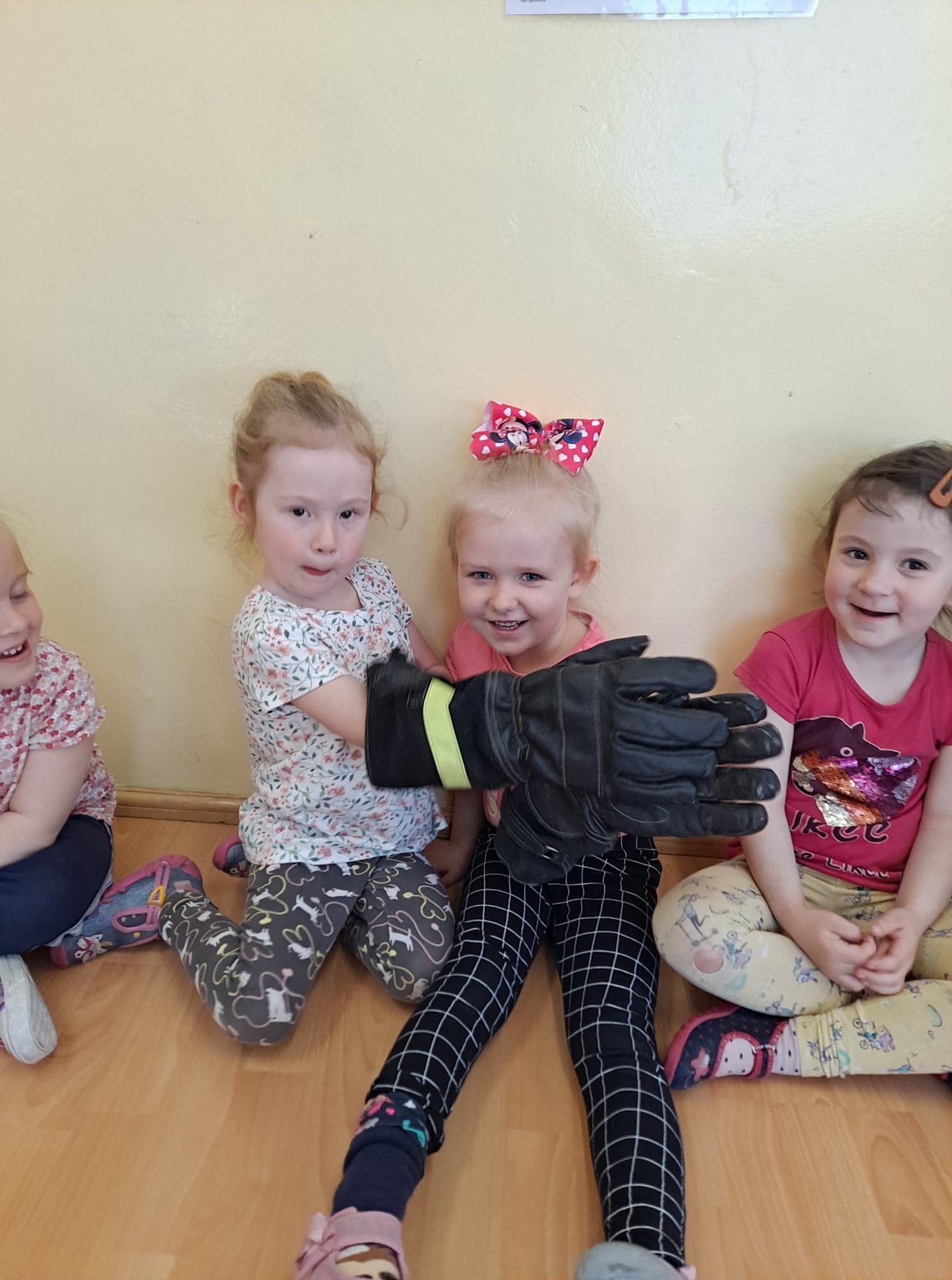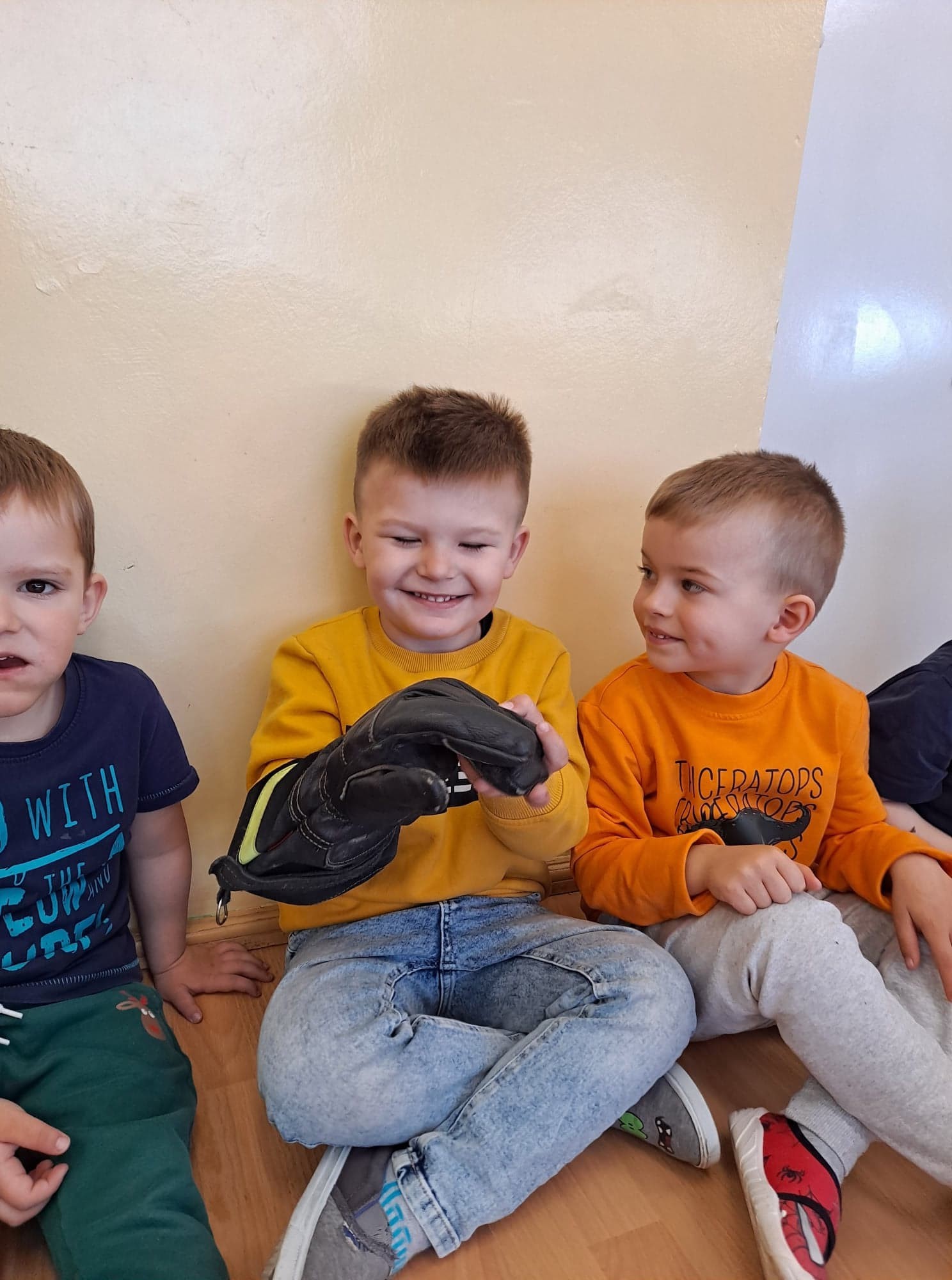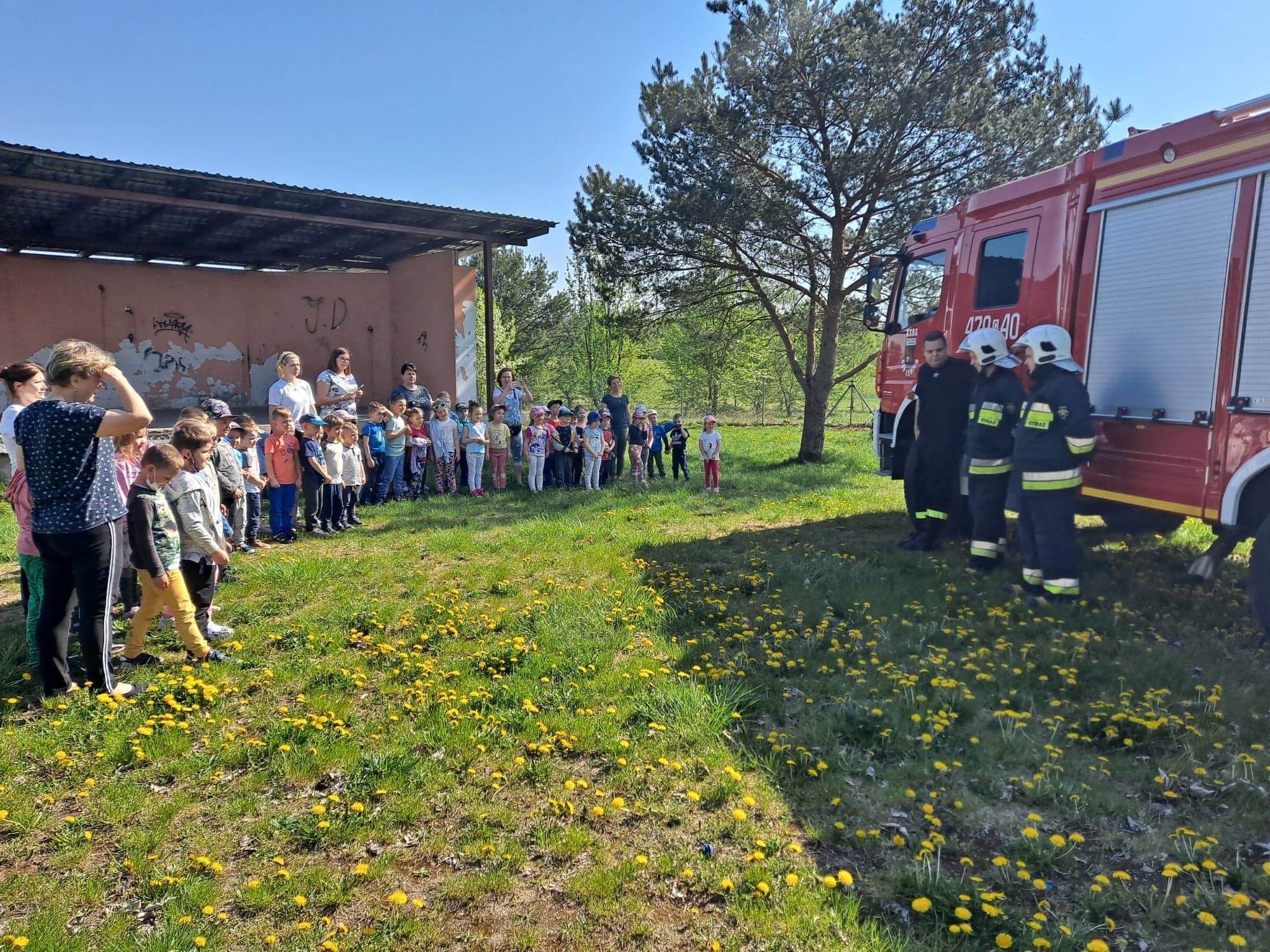 Wizyta gości wzbudziła zainteresowanie dzieci, które w skupieniu słuchały ciekawostek na temat pracy strażaka. Dowiedziały się, w jakich okolicznościach można wzywać straż pożarną, że strażacy nie tylko gaszą pożary, ale również są wzywani do wypadków i innych zdarzeń.