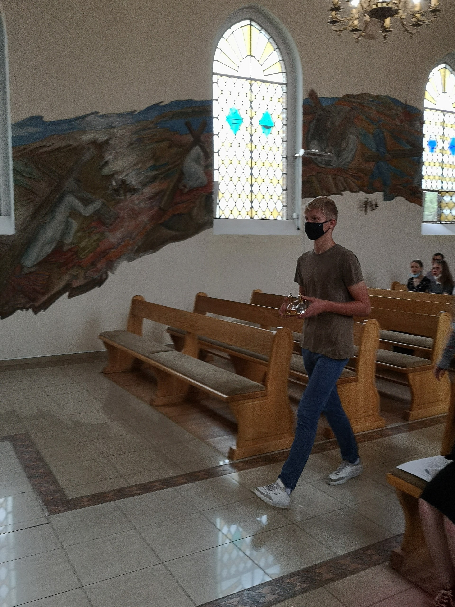 Dziękując za cały rok wytężonej pracy uczestniczyliśmy 22 czerwca 2021 r. o godz. 8.00 w Kościele Parafialnym w Łebieniu w uroczystej mszy świętej z okazji zbliżającego się zakończenia roku szkolnego i katechetycznego. Mszę św. celebrował ks. Janusz Góral proboszcz parafii Matki Bożej Królowej Polski w Łebieniu, który przywitał dyrekcję, grono pedagogiczne oraz rodziców i dzieci. Uczniowie wzięli czynny udział w Ofierze Mszy Świętej niosąc dary ołtarza, śpiewając psalmy i czytając modlitwy wiernych. Lektorem był dyrektor Krzysztof Wojtysiak. Uroczystość uświetniła obecność sztandaru szkoły. W czasie mszy dziękowaliśmy Bogu za otrzymane łaski. Na zakończenie kapłan udzielił wszystkim zebranym błogosławieństwa i życzył spokojnych, bezpiecznych wakacji, aby wypoczęci i szczęśliwi uczniowie we wrześniu wrócili do szkoły.