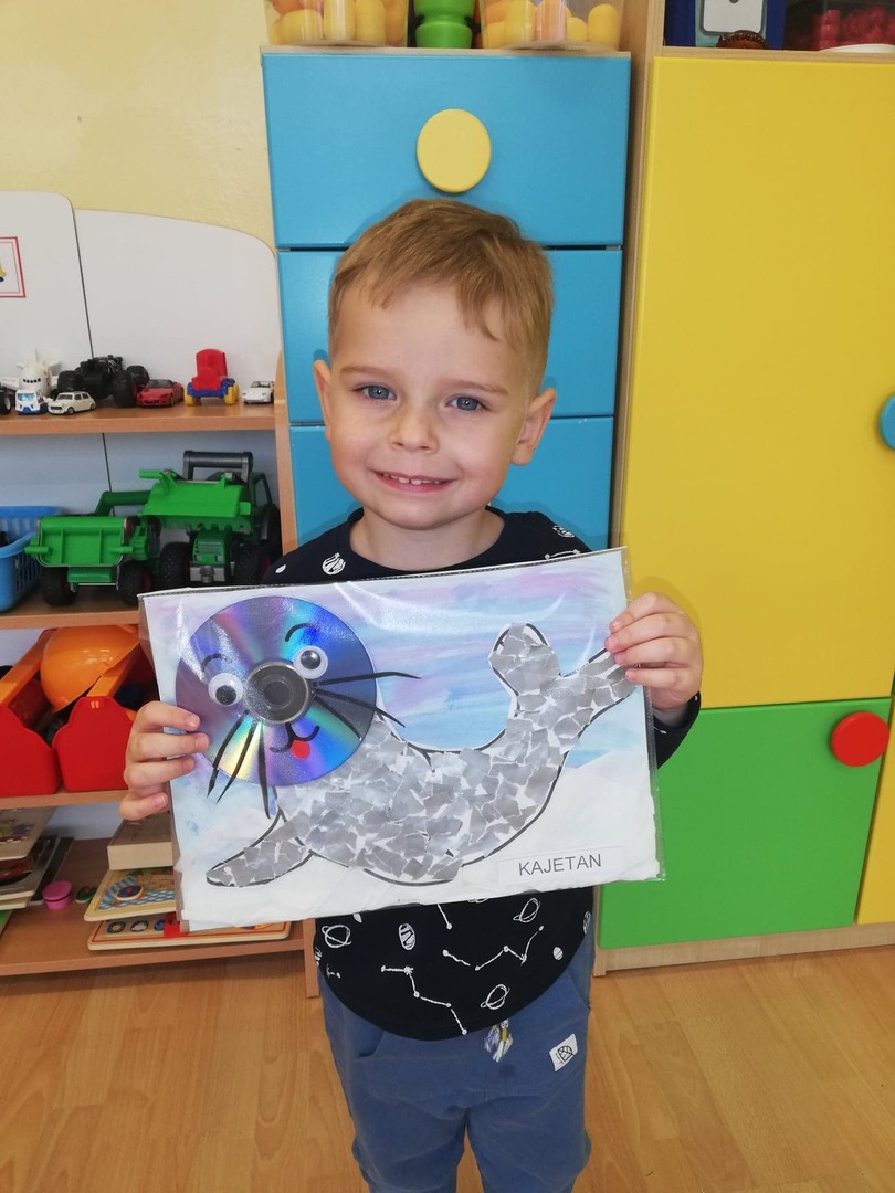 Wielkie gratulacje dla Kajetana z gr. Sówki, za zdobycie wyróżnienia w konkursie plastycznym pt.:„Prezentacja roślin i zwierząt Muzeum SPN w Czołpinie- Foka".