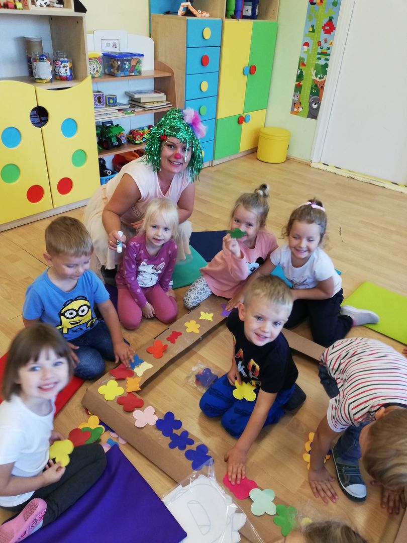 Tego dnia, Sówki otrzymały tajemniczy list z balonami od Clowna, który był bardzo zasmucony, iż ze względu na katar nie może odwiedzić przedszkolaków. Jednakże, pomysłowy Clown przygotował wiele niespodzianek m.in. ukryte zadania w balonach, fotobudka, poszukiwanie jajek ze słodkościami, mega bańki mydlane, drobne prezenciki oraz film dedykowany Sówką z Przedszkola w Łebieniu. Dzieci wykazały się zręcznością w poszukiwaniu jajeczek oraz umiejętnością klasyfikowania wg. cyfry oraz świetnie współpracowały w stworzeniu fotobudki. Nie zabrakło tańców i zabaw ruchowych. Wszystkich przedszkolakom, życzymy beztroskiego dzieciństwa wypełnionego wartościową zabawą.