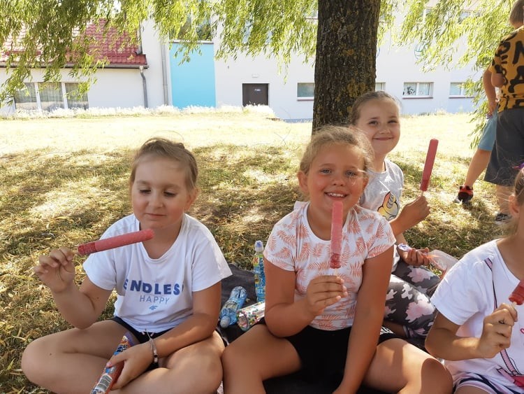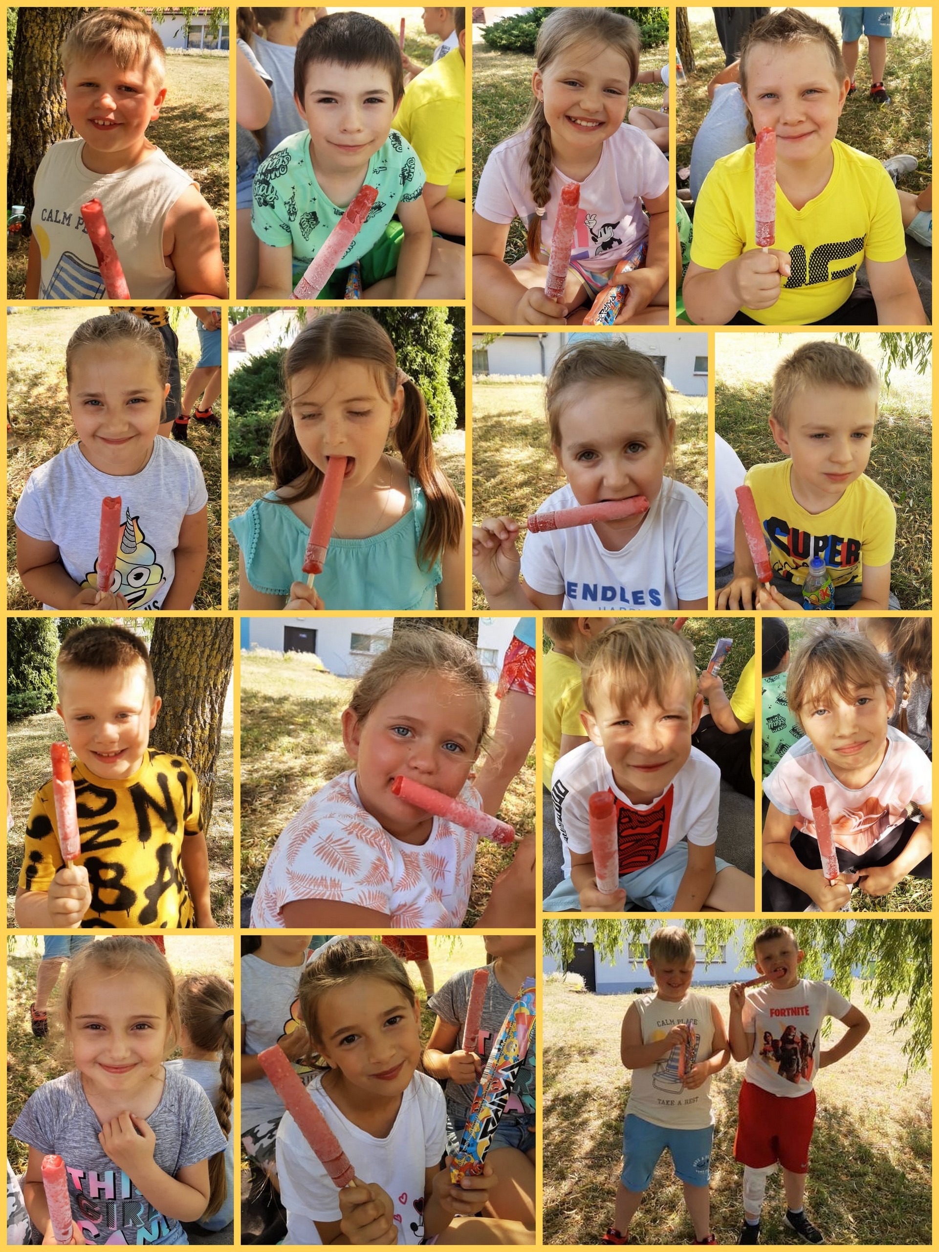 To ostatni tydzień w szkole, cieszymy się ostatnimi chwilami spędzonymi ze sobą. Uczniowie klasy pierwszej, korzystając z pięknej pogody, postanowili wraz z wychowawczynią lekcję spędzić na świeżym powietrzu. Ulubioną zabawą uczniów stała się gra w kolory. Nie obyło się bez niespodzianki – uwielbianych przez wszystkich – LODÓW.