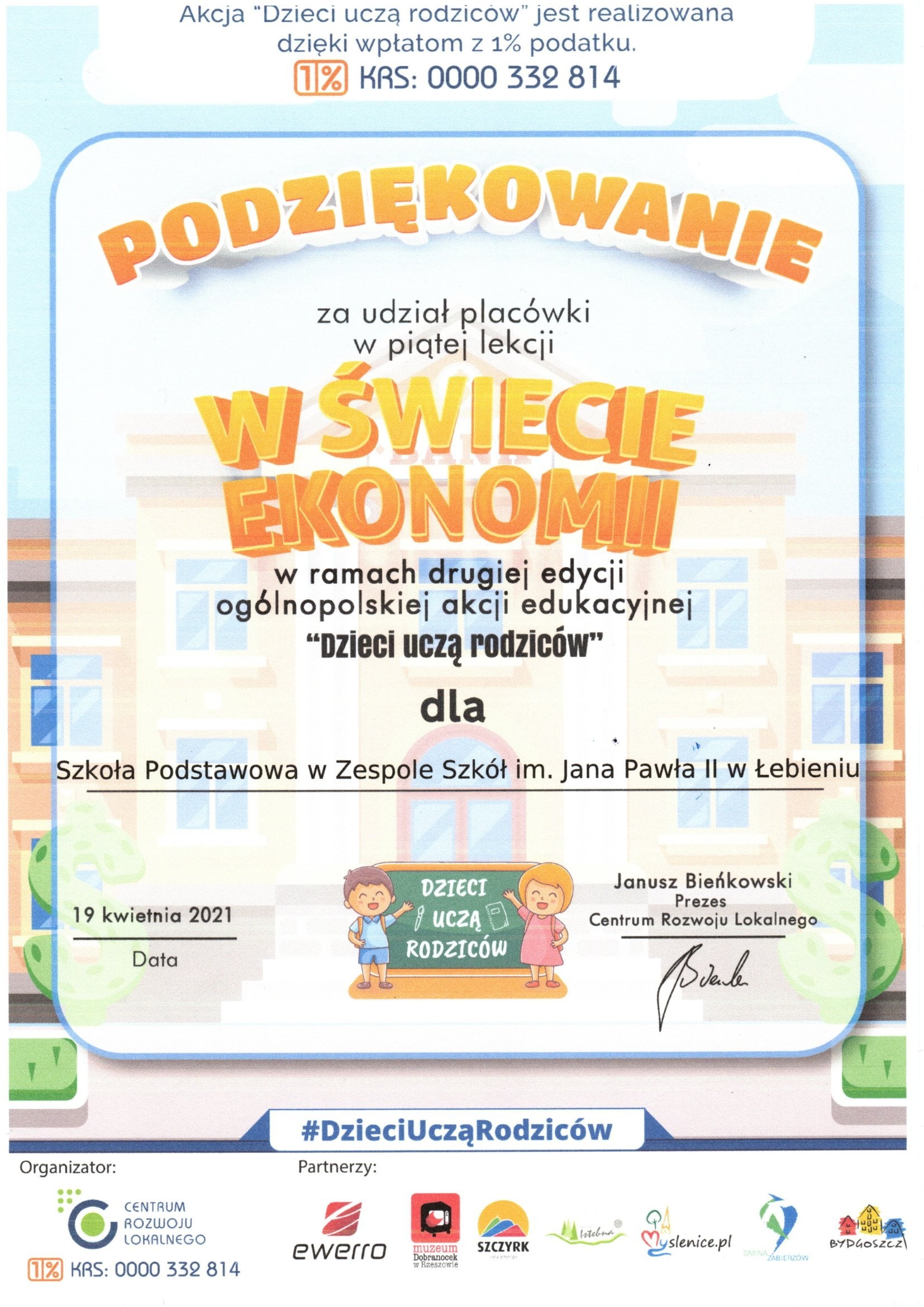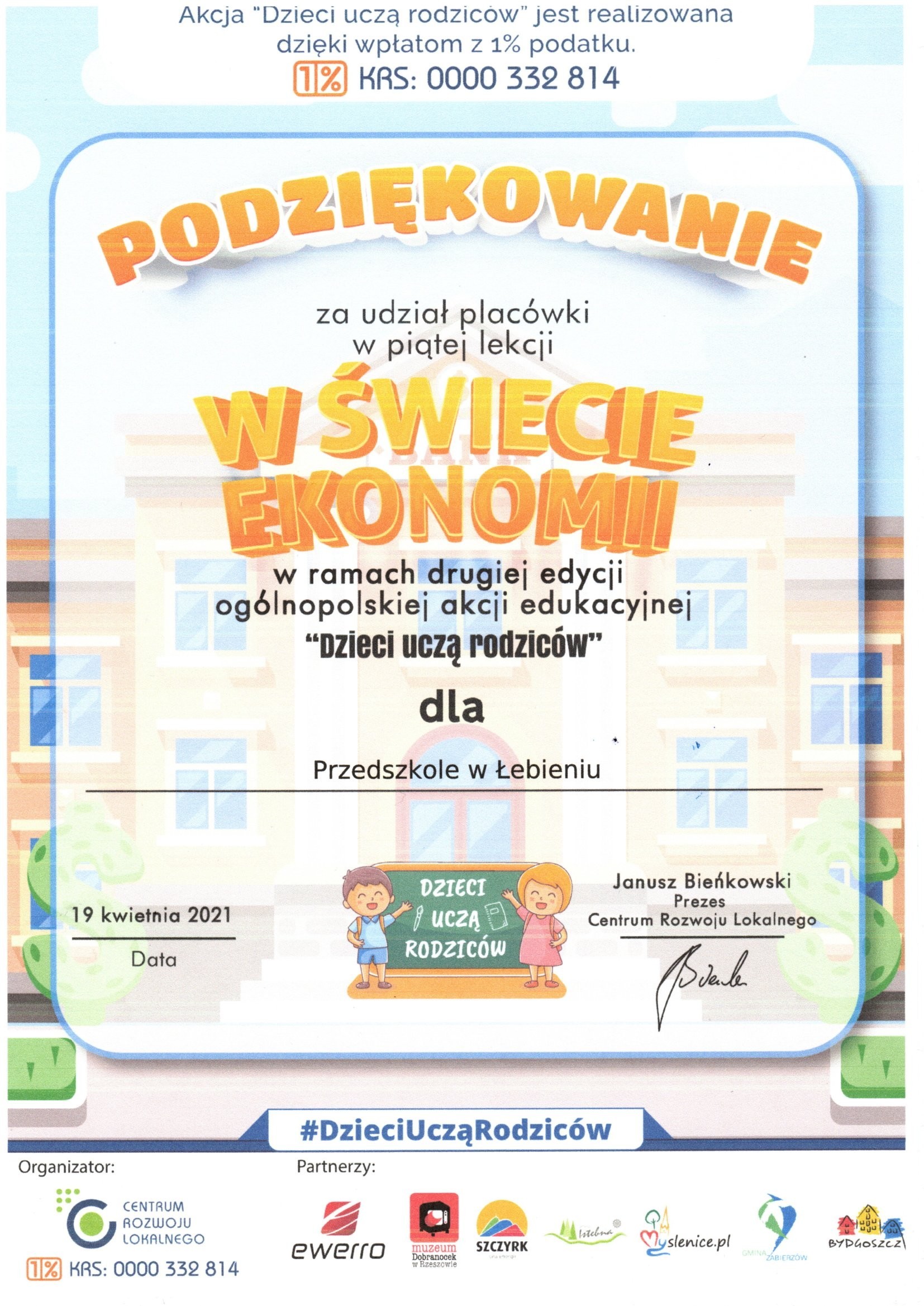 Podziękowania za udział w ogólnopolskiej akcji edukacyjnej „Dzieci uczą Rodziców”