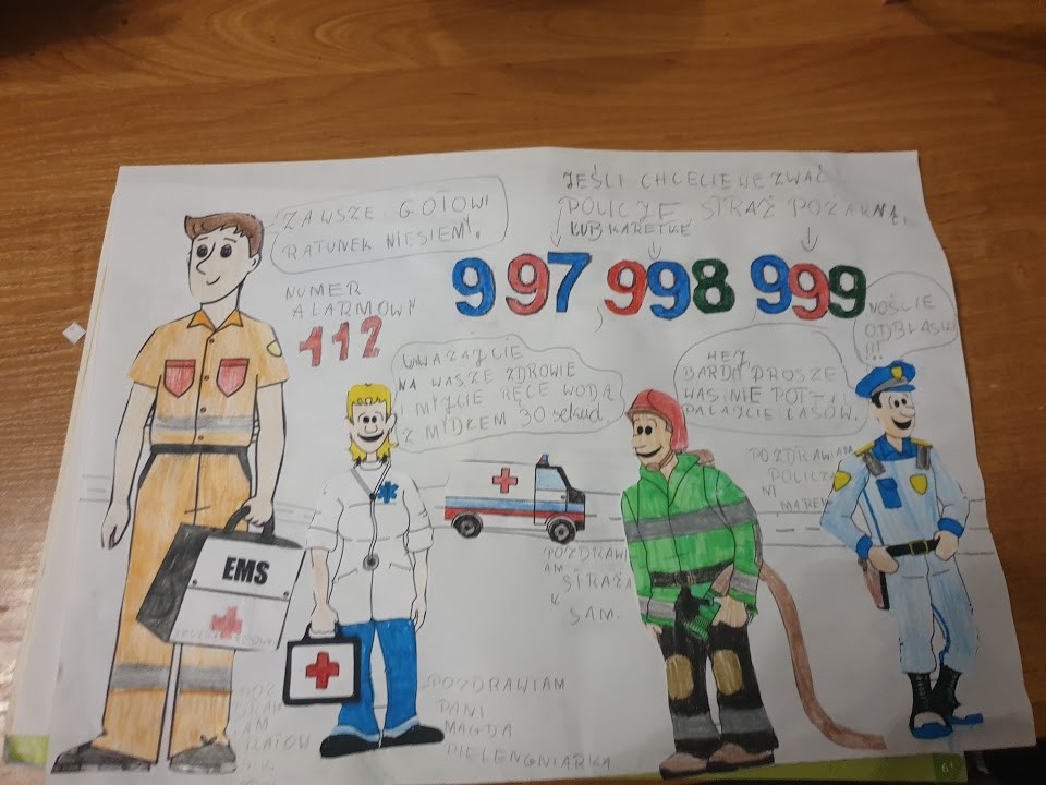 Później, na lekcji plastyki wykonaliśmy plakaty z numerami alarmowymi.