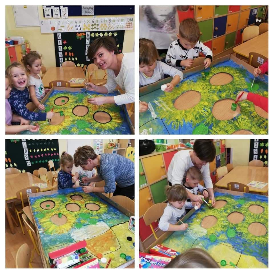 Kreatywna interpretacja obrazu Vincenta van Gogha pt. „Słoneczniki” to zadanie listopadowe projektu: „Kreatywny Przedszkolak”. Prezentujemy fotorelację z powstania nowego oblicza wielkiego dzieła: „Słoneczniki” w wizji 4-latków i 5-latków. Interpretacja obrazu: „Słoneczniki”: poprzedzona była pogadanką dotyczącą autora dzieła, jego innych prac a przede wszystkim etiologii powstania obrazu. Dzieci poznały jednego z największych malarzy w historii, artystę, którego twórczość stanowi istotne źródło sztuki współczesnej.