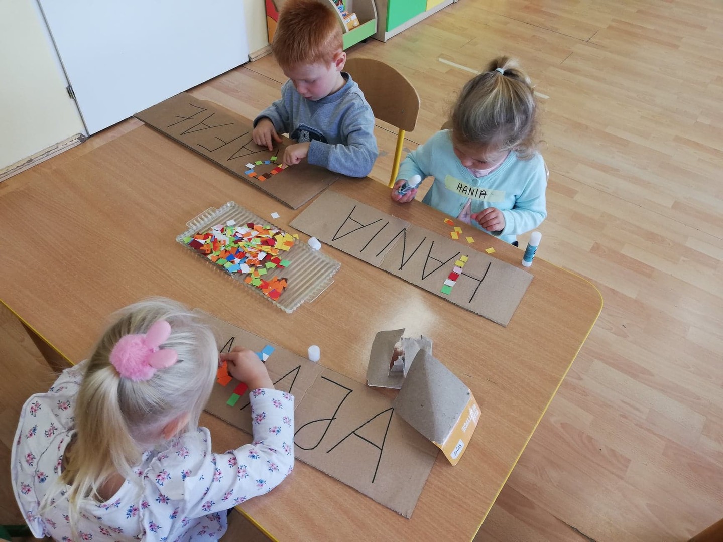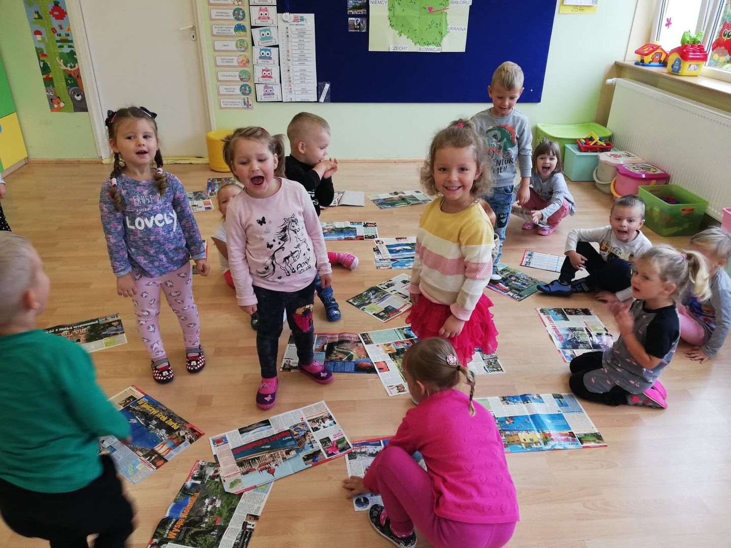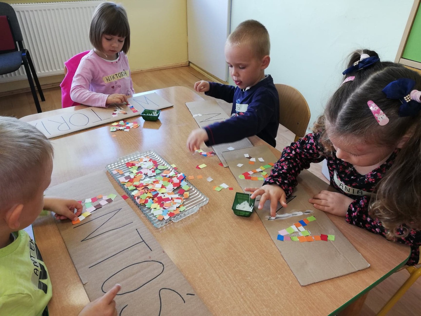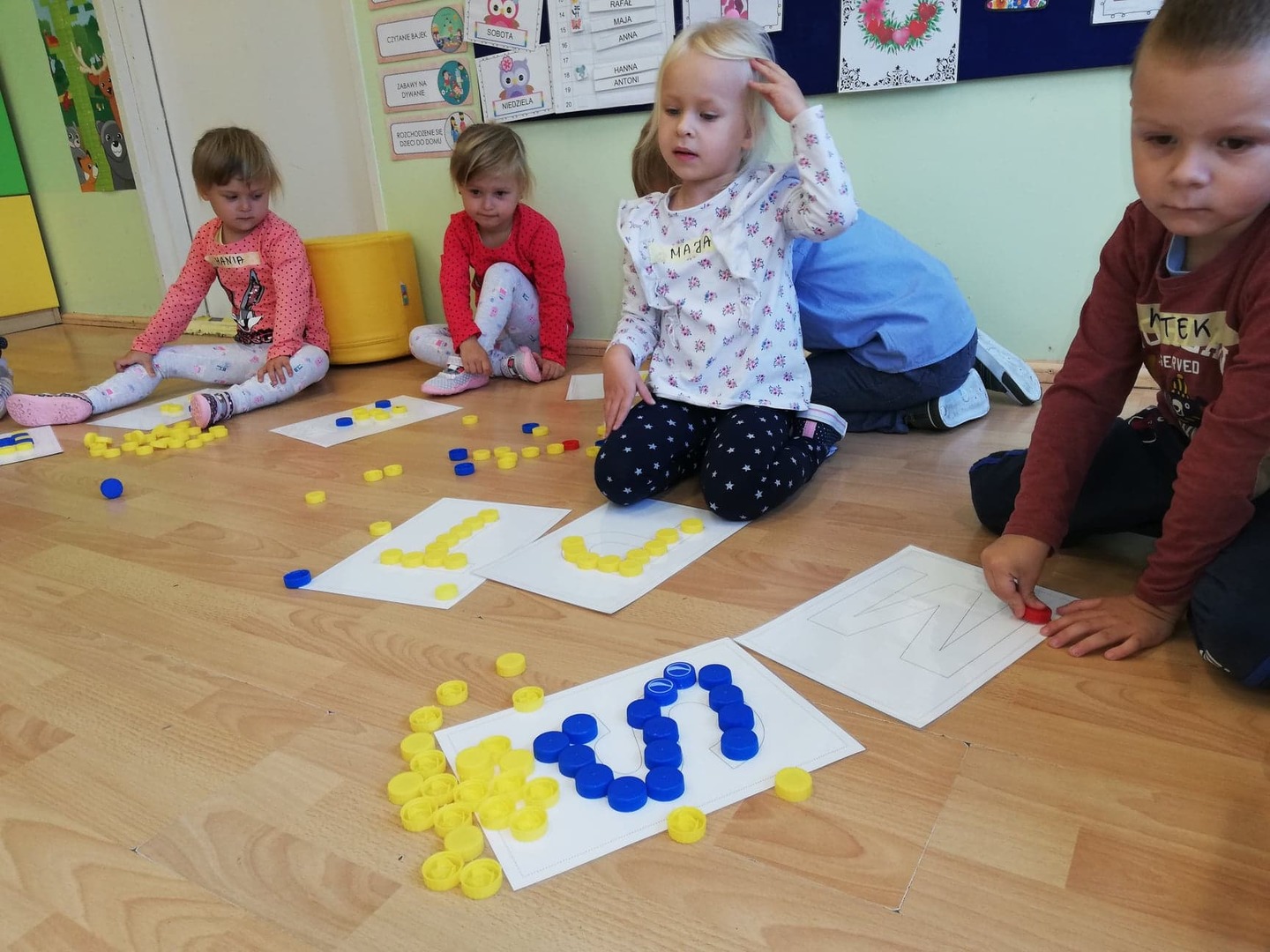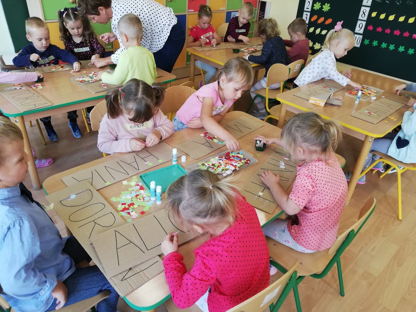 Międzynarodowy Dzień Alfabetyzacji to idealny moment na zabawy literami. Dzieci poznały litery swojego imienia: układały szablony liter; tworzyły swoją wielką wizytówkę; odszukiwały liter w czasopismach, słuchały i oglądały piosenki poświęcone alfabetowi.