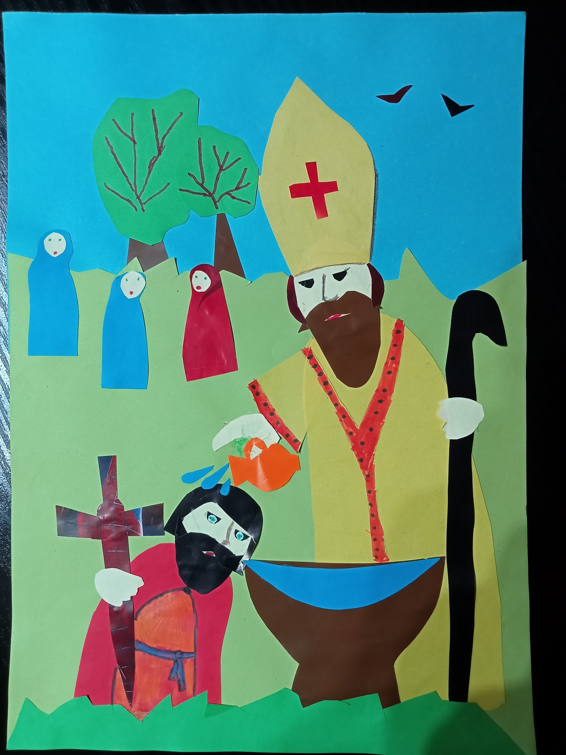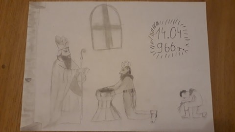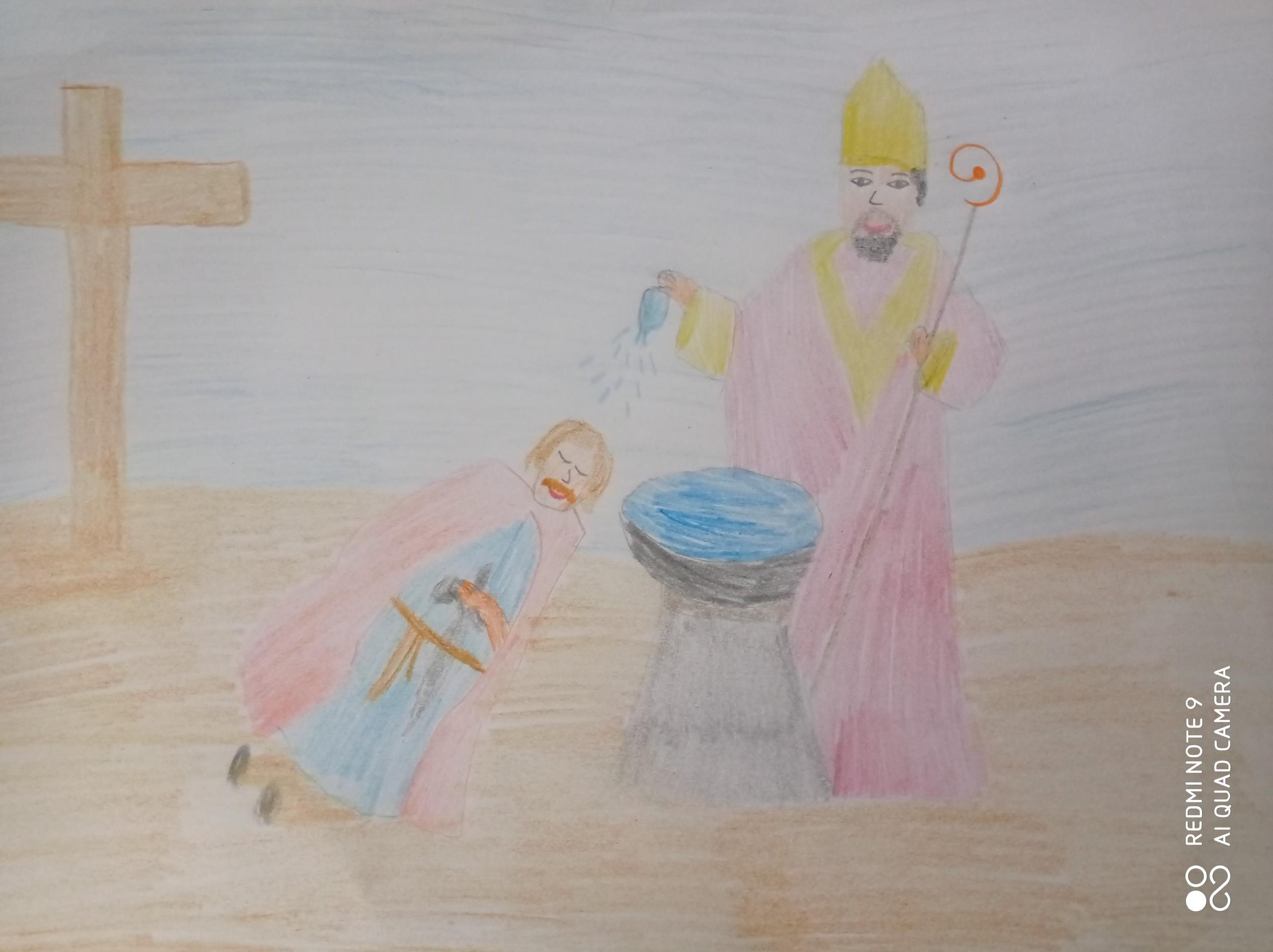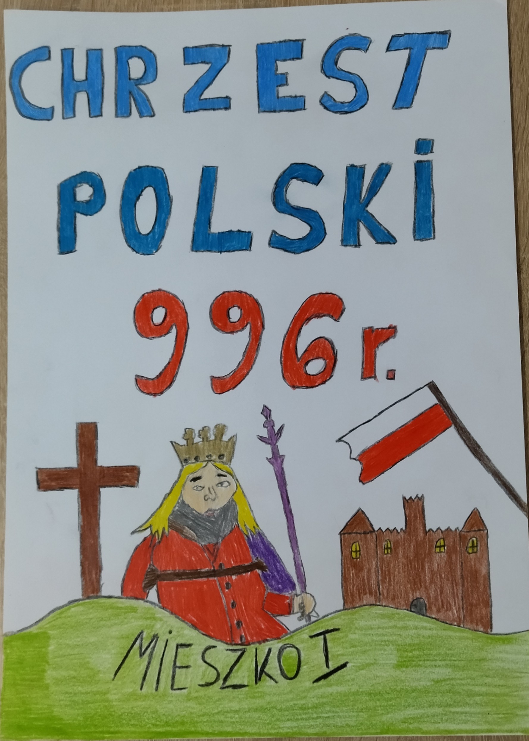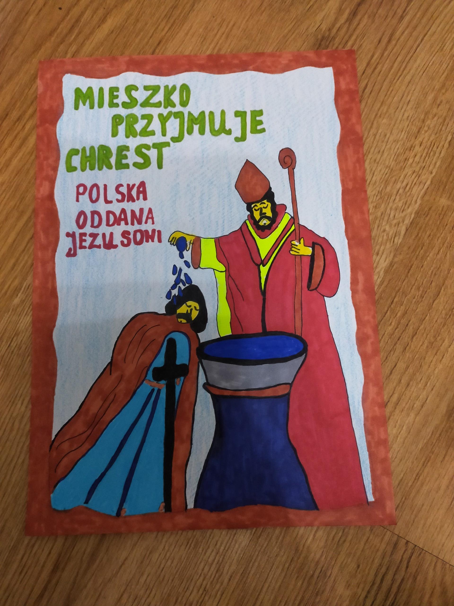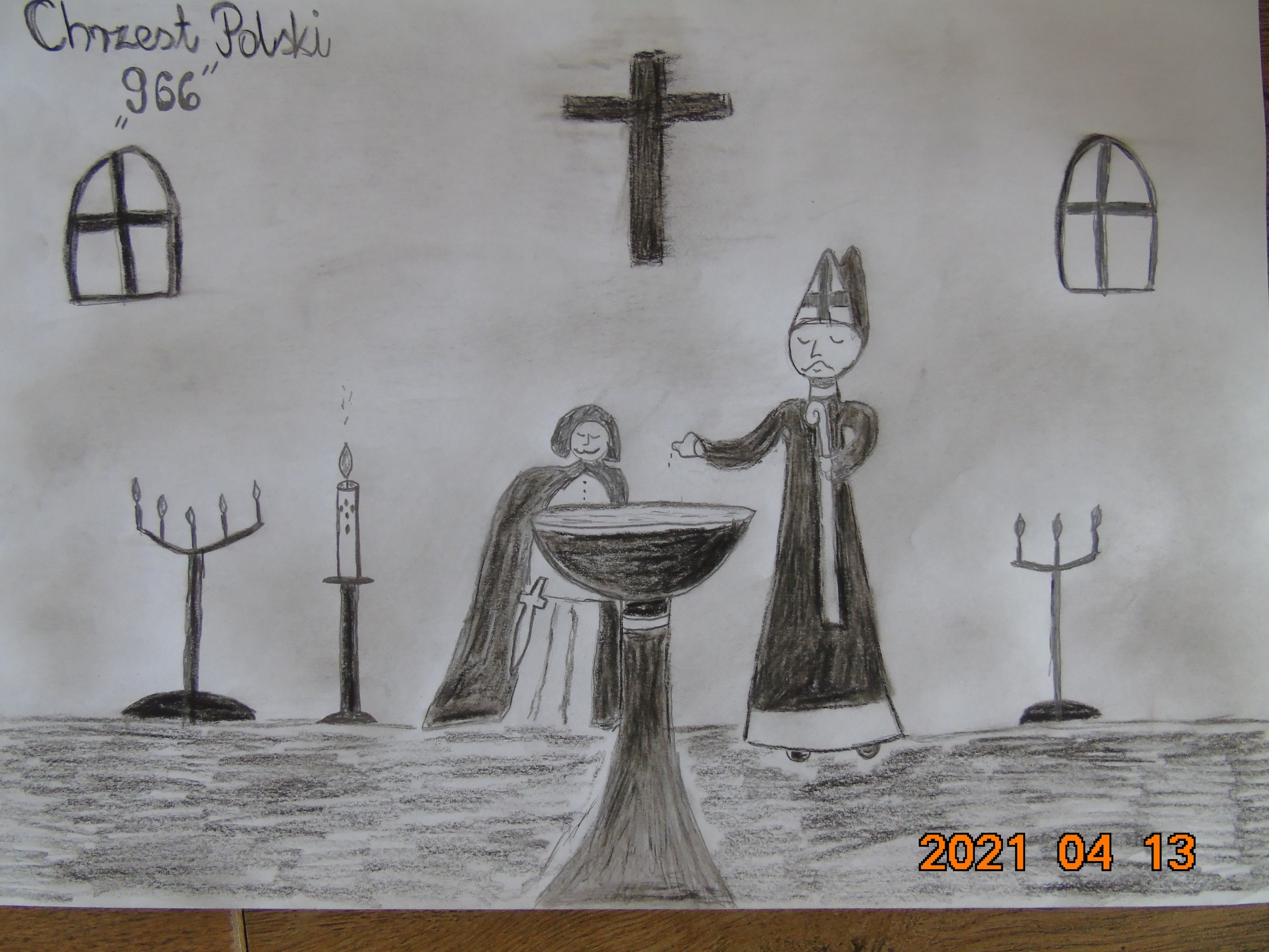 Uczniowie klasy IV i V w ramach lekcji historii przedstawili w formie pracy plastycznej swoje wyobrażenie o tym, jak mógł wyglądać chrzest Mieszka I. Zapraszamy do obejrzenia galerii prac.