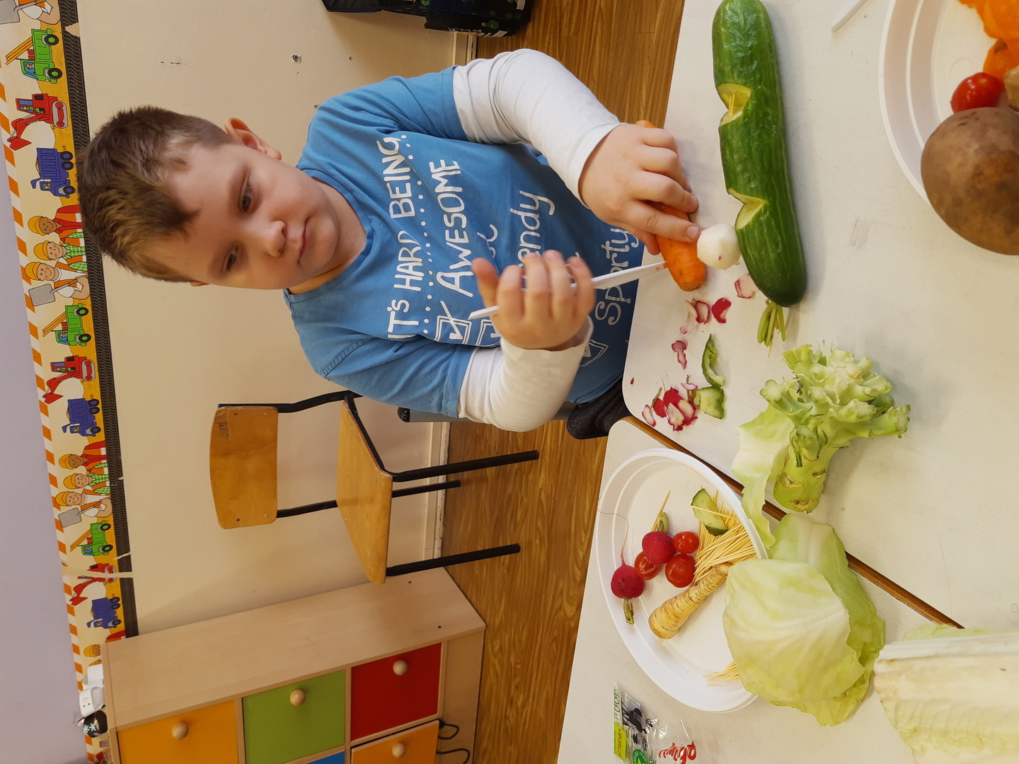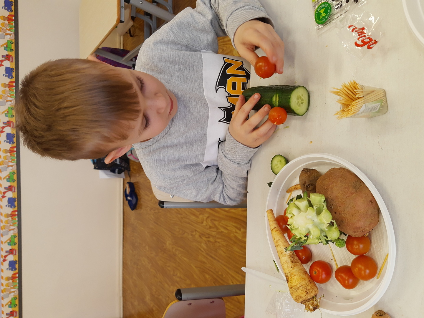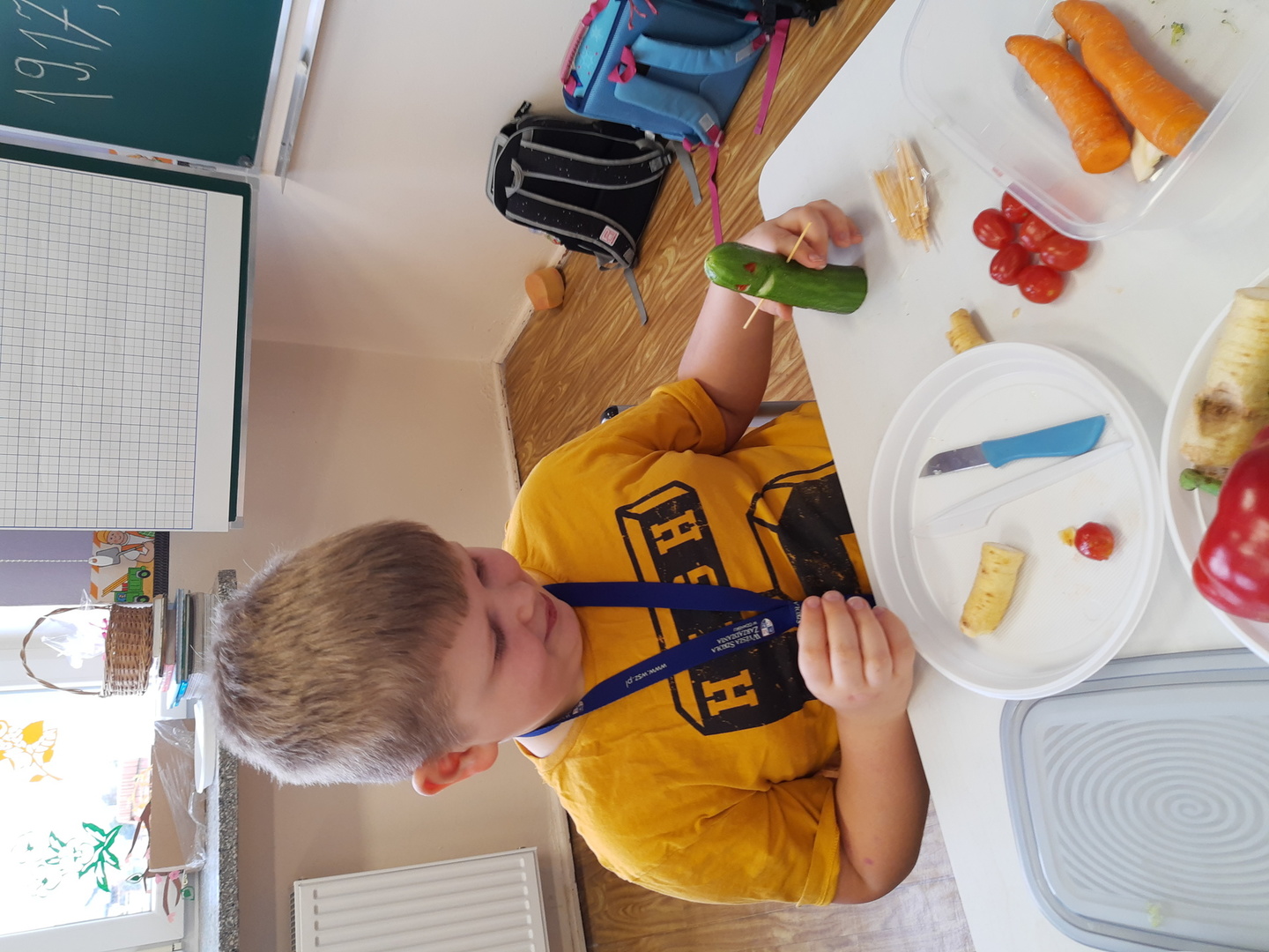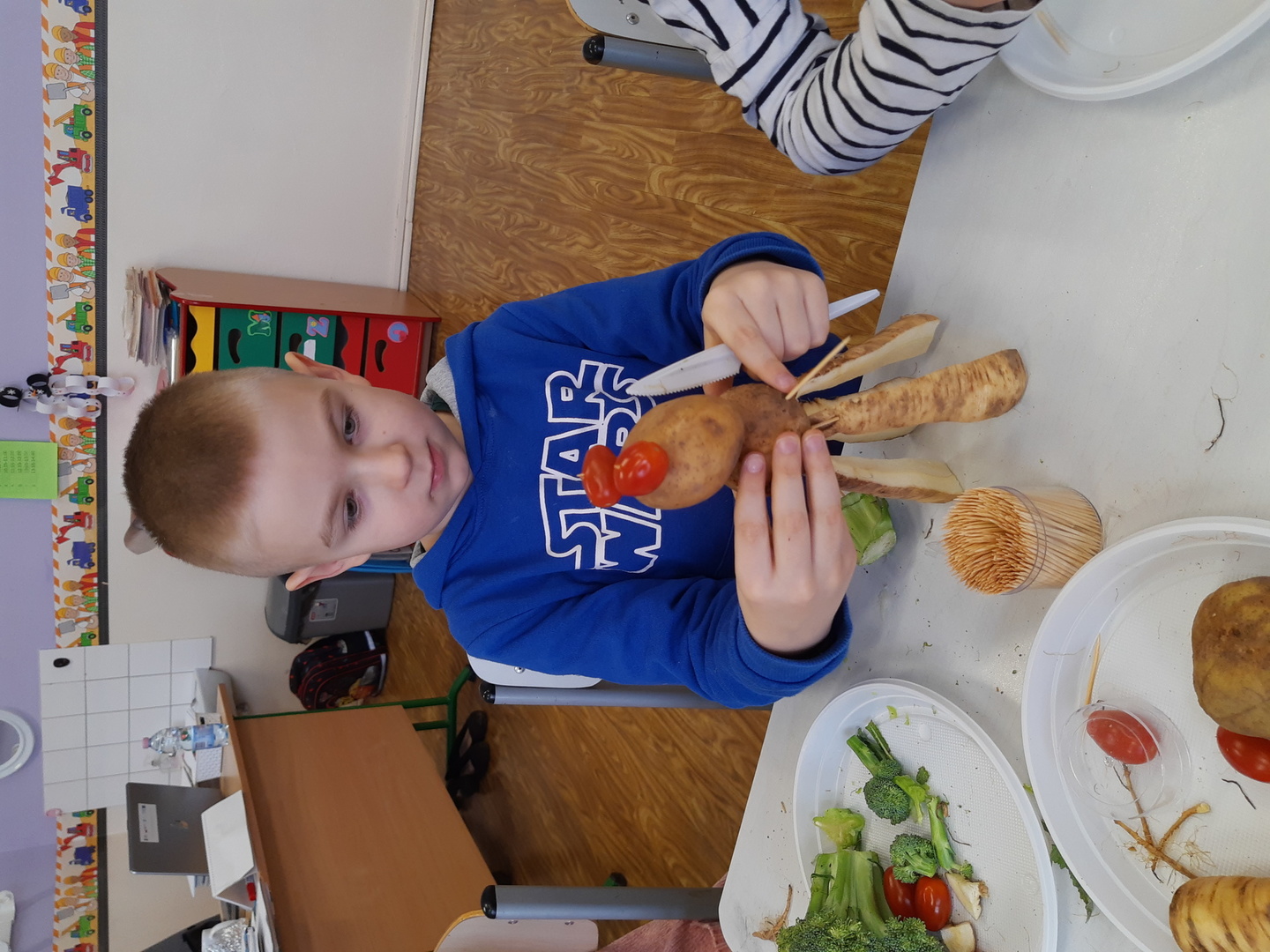 Świat ogląda Marsa, a Marsjanie odwiedzili uczniów klasy pierwszej. W rewanżu dzieci postanowiły wykonać mieszkańców kosmosu. Za materiał posłużyły warzywa. Powstały szalone, różnorodne i fantastyczne ufoludki. Jak to zwykle bywa najsmaczniejsze okazały się niewykorzystane warzywa. Pyyyyyyychotka!