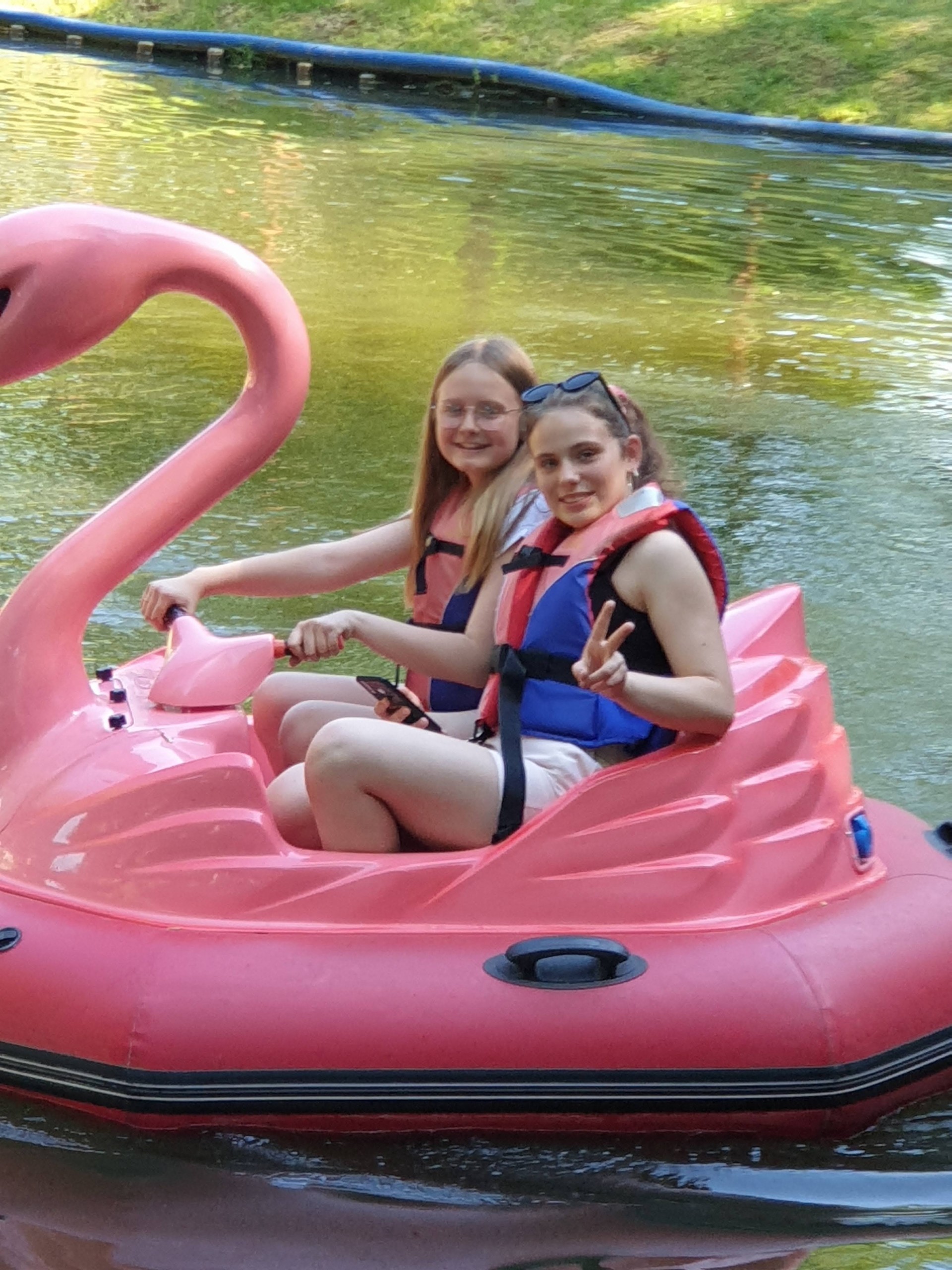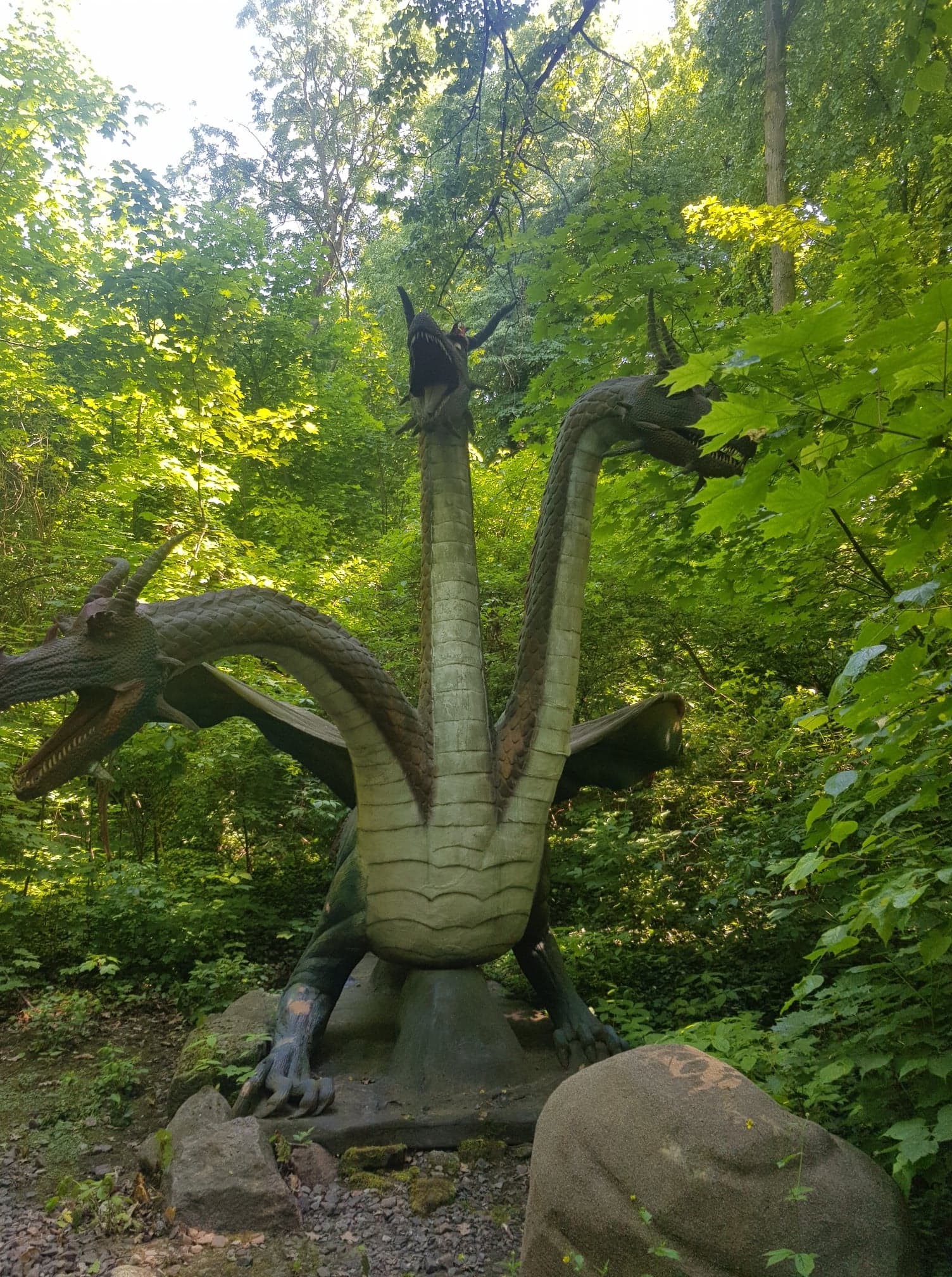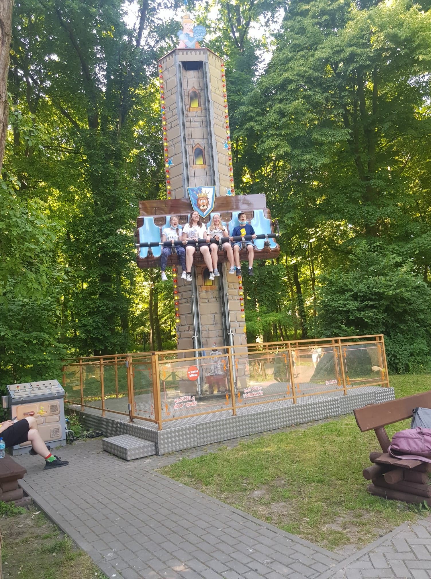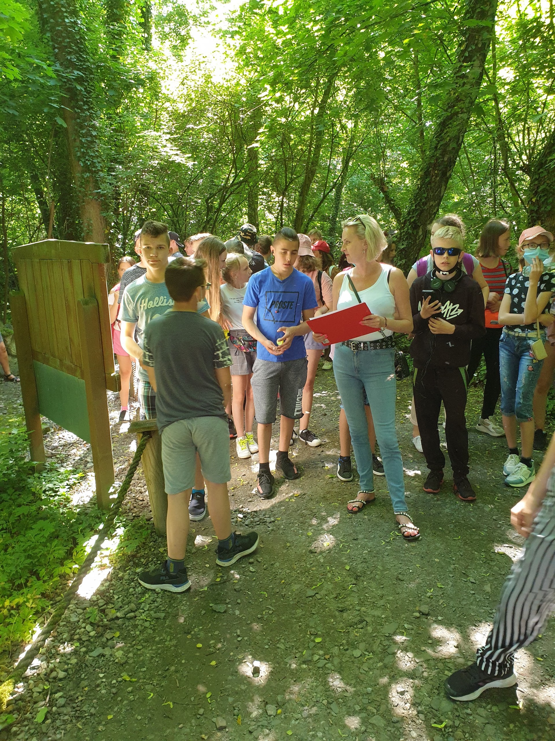 Po tej sporej dawce historii udaliśmy się na pyszny obiad. Najedzeni z niecierpliwością czekaliśmy na kolejny punkt programu, czyli wizytę w DINO PARKU. Głównymi atrakcjami parku była ścieżka edukacyjna, gdzie na swojej drodze mogliśmy spotkać kilkadziesiąt ruchomych dinozaurów, które w otoczeniu pięknej zieleni lasu, przeprowadziły nas przez poszczególne okresy w dziejach ziemi. Smoki w parku były odwzorowaniem ich prawdziwego wyglądu. Poza sztucznymi i stworzonymi przez człowieka figurami zwierząt w parku tym mogliśmy zobaczyć również żywe zwierzęta. Są to m. in. kangury, muflony czy alpaki i inne gatunki, które znajdują się w mini zoo. Oprócz poznawania i nauki była również zabawa na placu zabaw . To było prawdziwe szaleństwo. Zmęczeni, ale bardzo zadowoleni wieczorem wróciliśmy do domu.