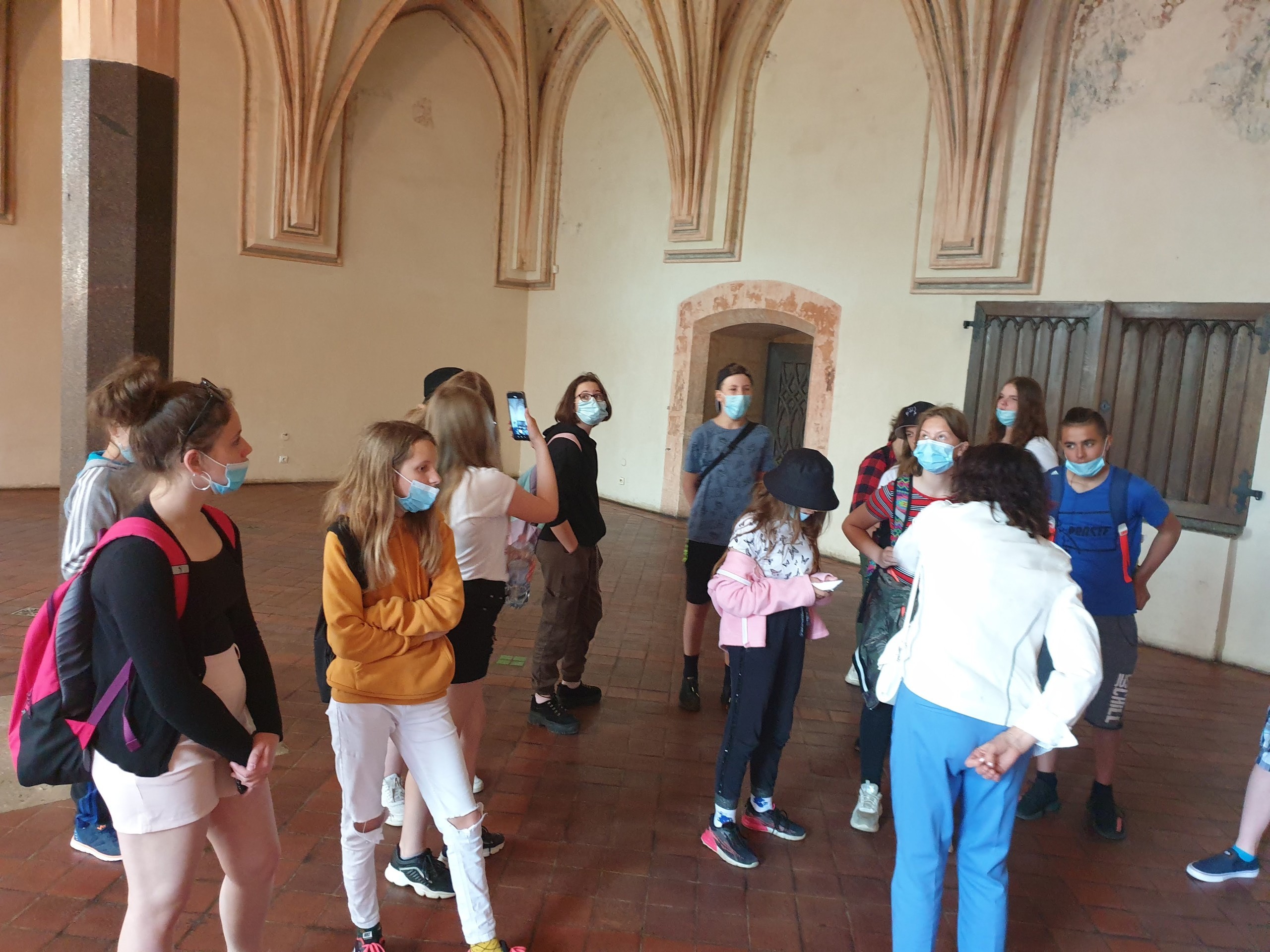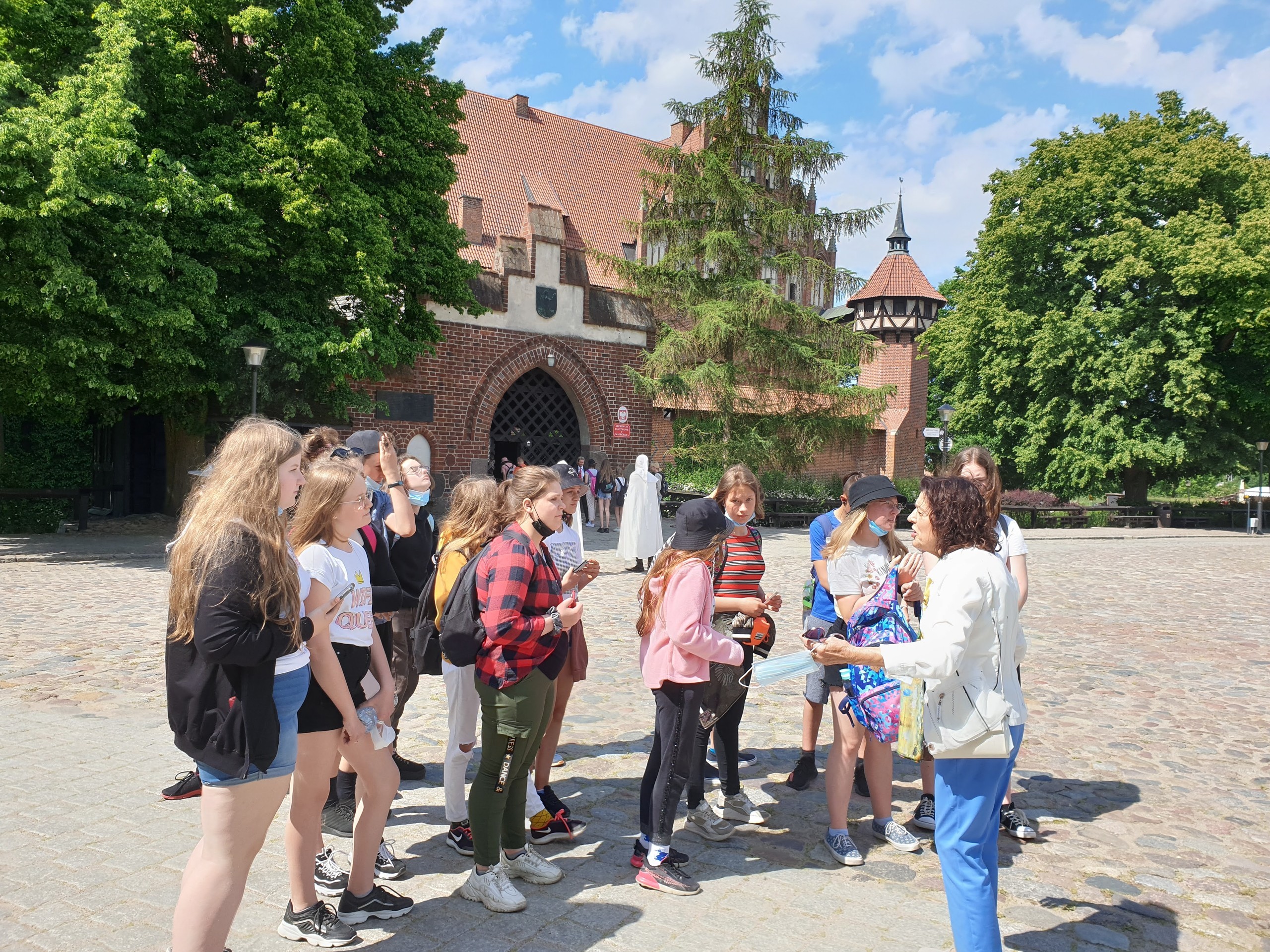 We wtorek, 8 czerwca 2021, uczniowie naszej szkoły wybrali się na długo wyczekiwaną wycieczkę do Malborka. Po 3 godzinnej podróży autokarem dotarliśmy do malborskiego zamku. Podczas zwiedzania, przewodnicy opowiadali nam historię zakonu krzyżackiego, zdradzili tajemnice codziennego życia braci zakonnych, poznaliśmy historię zamkowego kościoła, zwiedziliśmy pałac Wielkiego Mistrza, Zamek Niski z unikatowym centralnym ogrzewaniem, zapoznaliśmy się ze zbiorami broni, sztandarów, a nawet dzieł wykonanych z bursztynu. Zamek w Malborku, pięknie położony nad rzeką Nogat, w Delcie Wisły, jest obecnie uważany za największy gotycki zamek w Europie i najlepszy przykład średniowiecznej architektury obronnej. W 1997 roku został wpisany na listę Światowego Dziedzictwa Kulturowego UNESCO i jest niewątpliwie jednym z najpiękniejszych i najbardziej znaczących zabytków w Polsce.