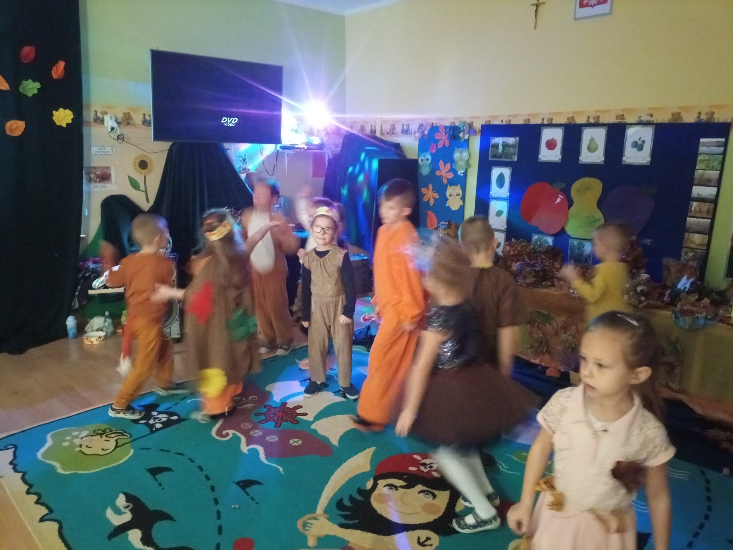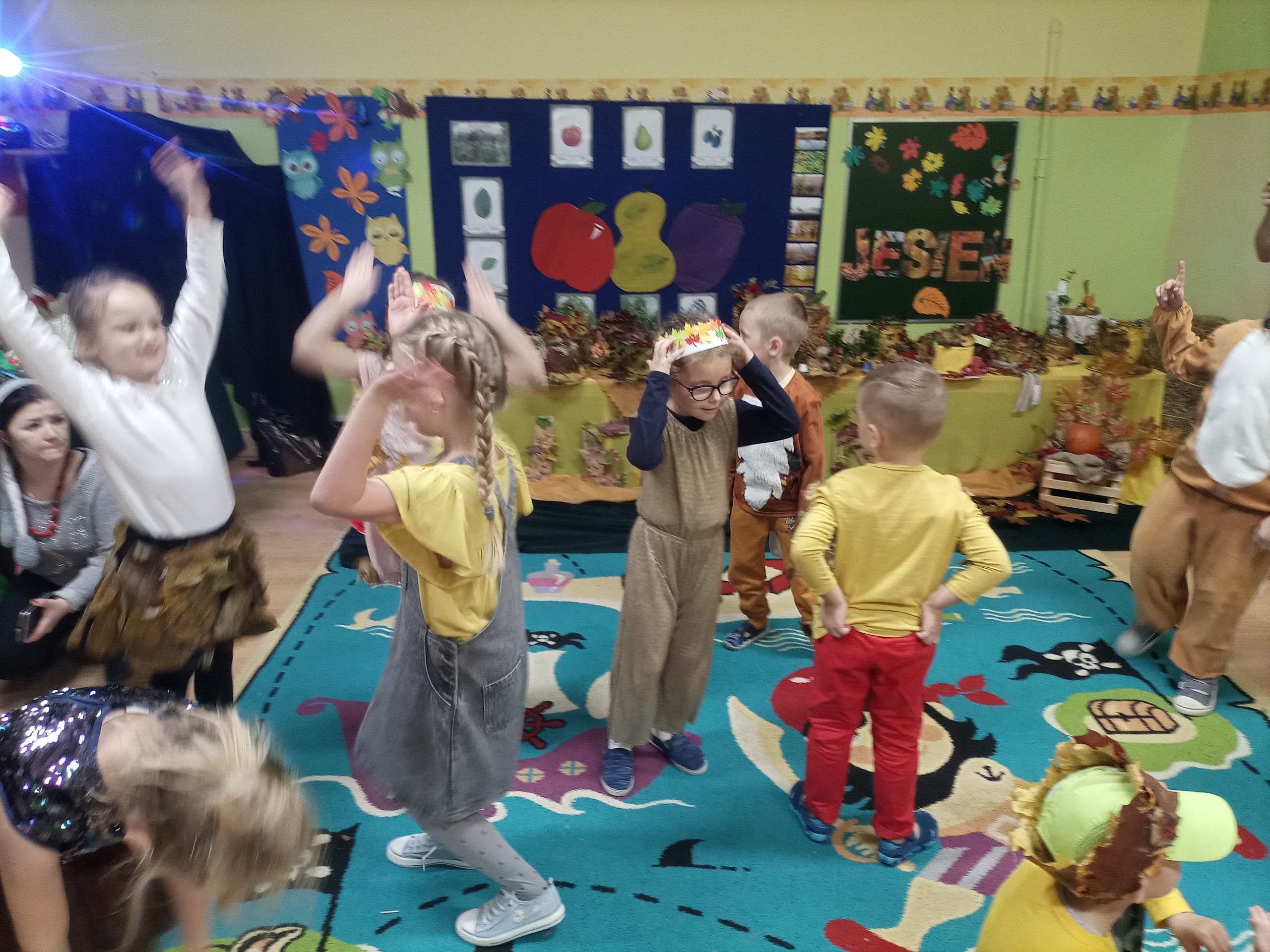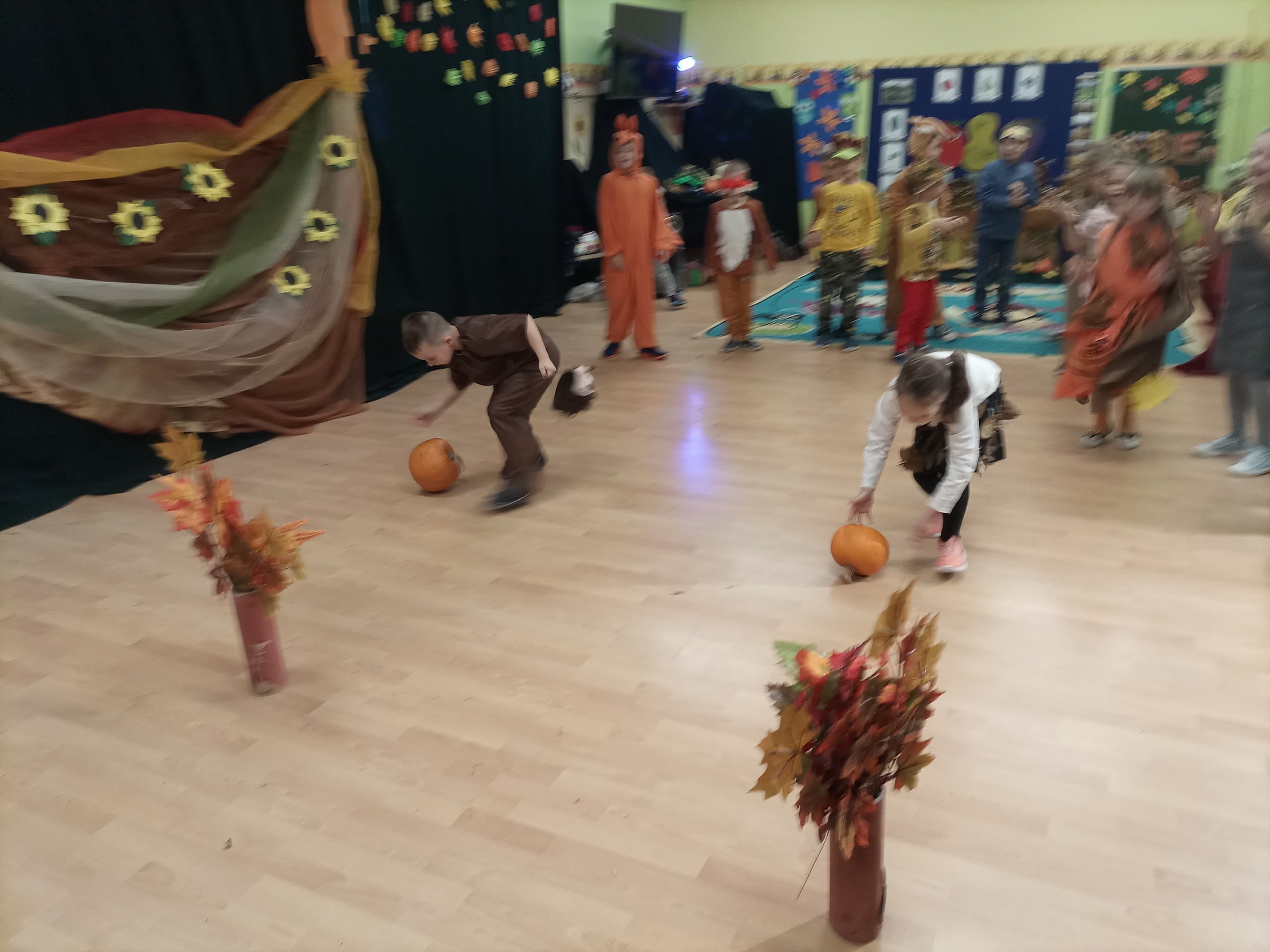 W naszym przedszkolu został zorganizowany Bal Jesieni dla przedszkolaków. W tym szczególnym dniu wszystkie dzieci przybyły do przedszkola w kolorowych, jesiennych strojach. Wspólnie bawiły się liski, listki, jeżyki, drzewka, wiewióreczki śpiewając i tańcząc przy piosenkach o tematyce jesiennej.