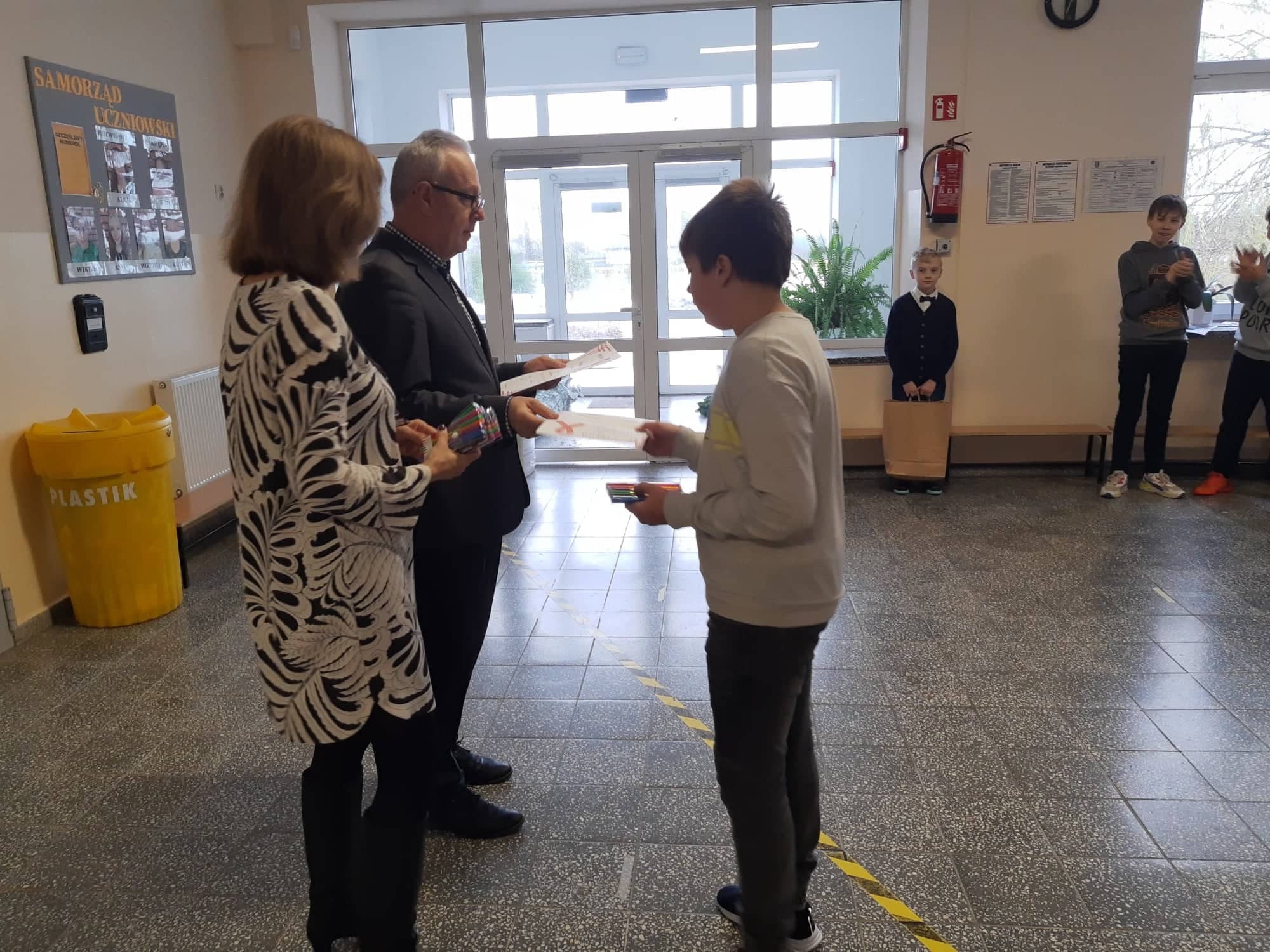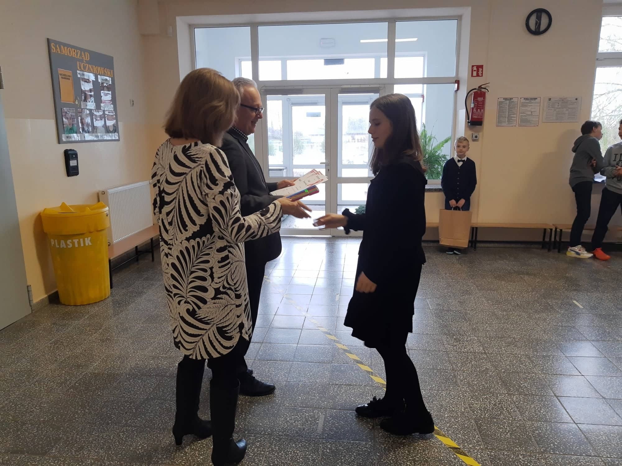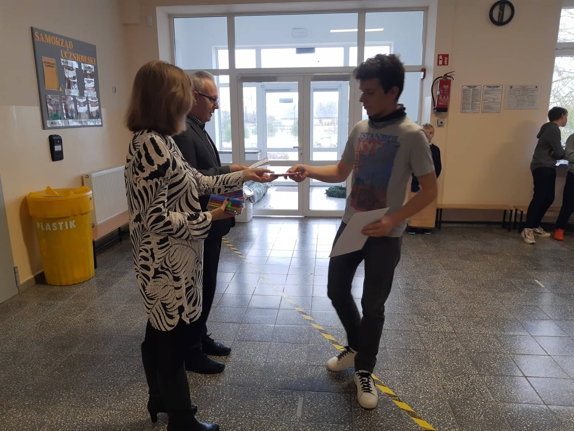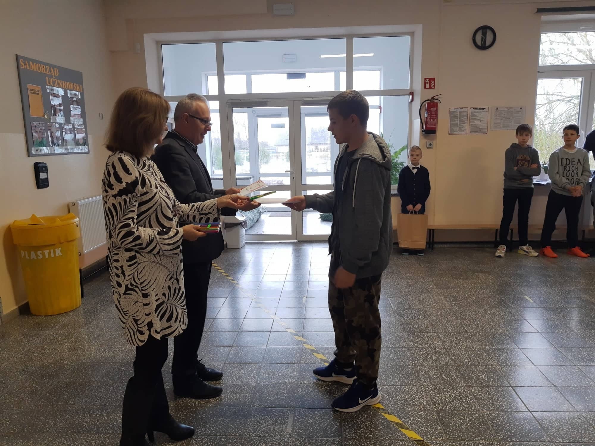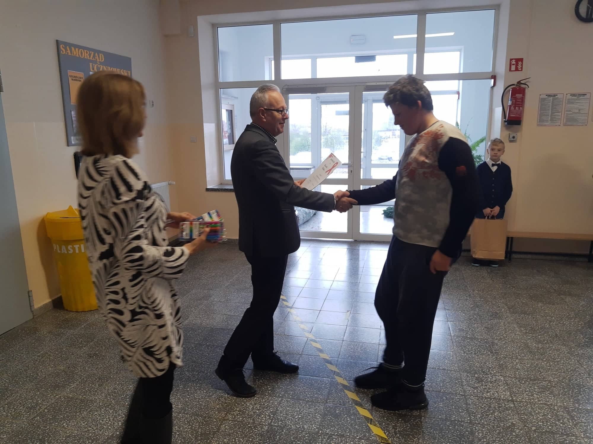 2 grudnia 2021r. w Zespole Szkół im. Jana Pawła II w Łebieniu odbyło się uroczyste wręczenie dyplomów i nagród dla zwycięzców w konkursie profilaktycznym „Co o HIV i AIDS wiedzieć należy?” zorganizowanym dla uczniów klasy VII i VIII.