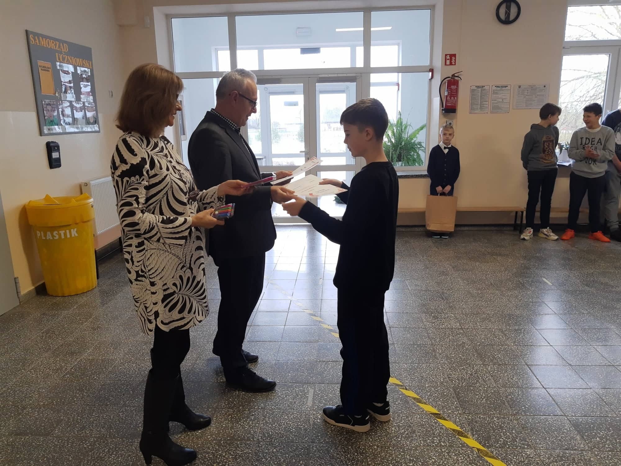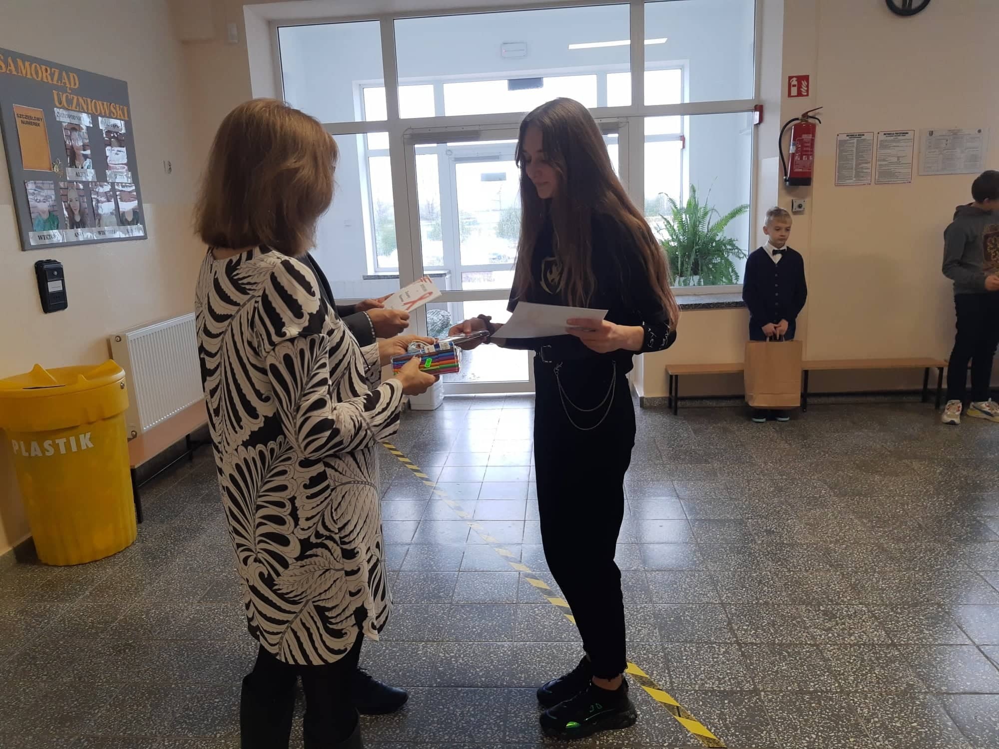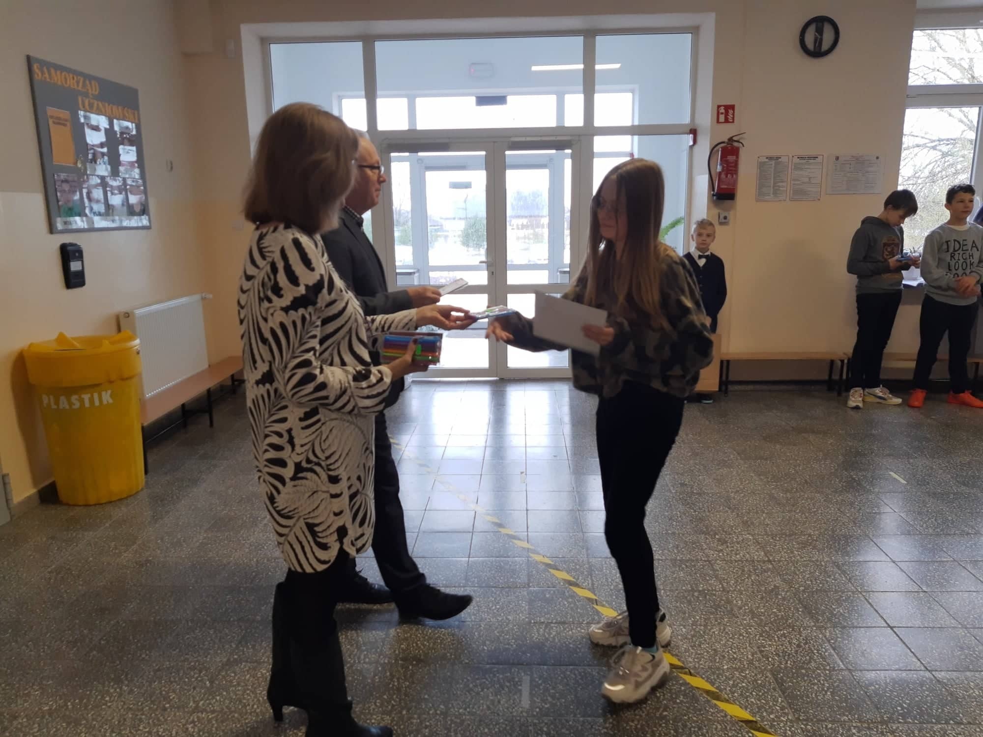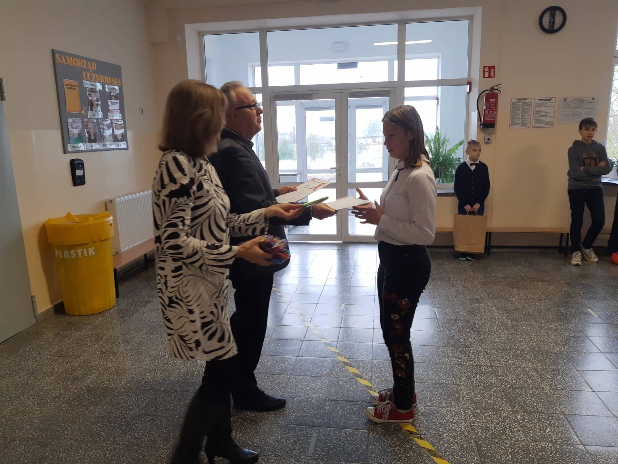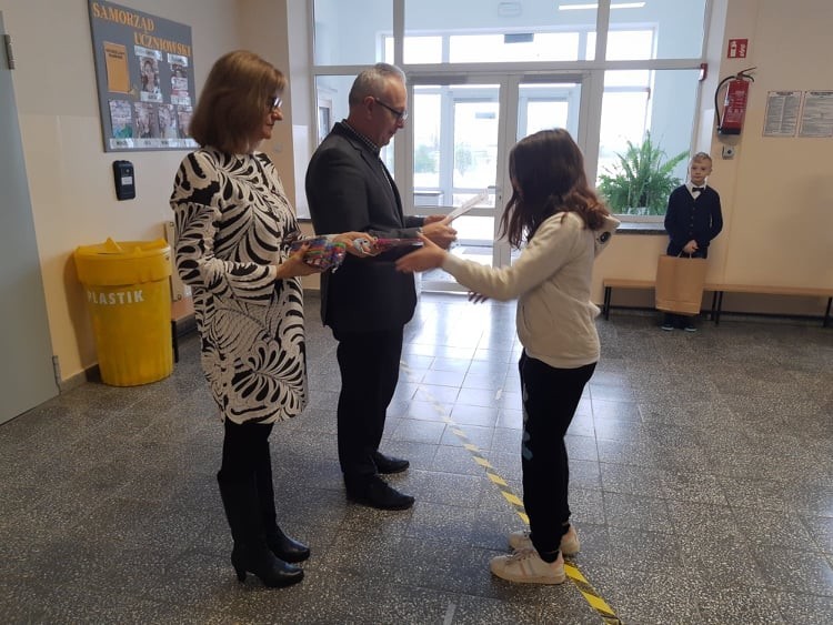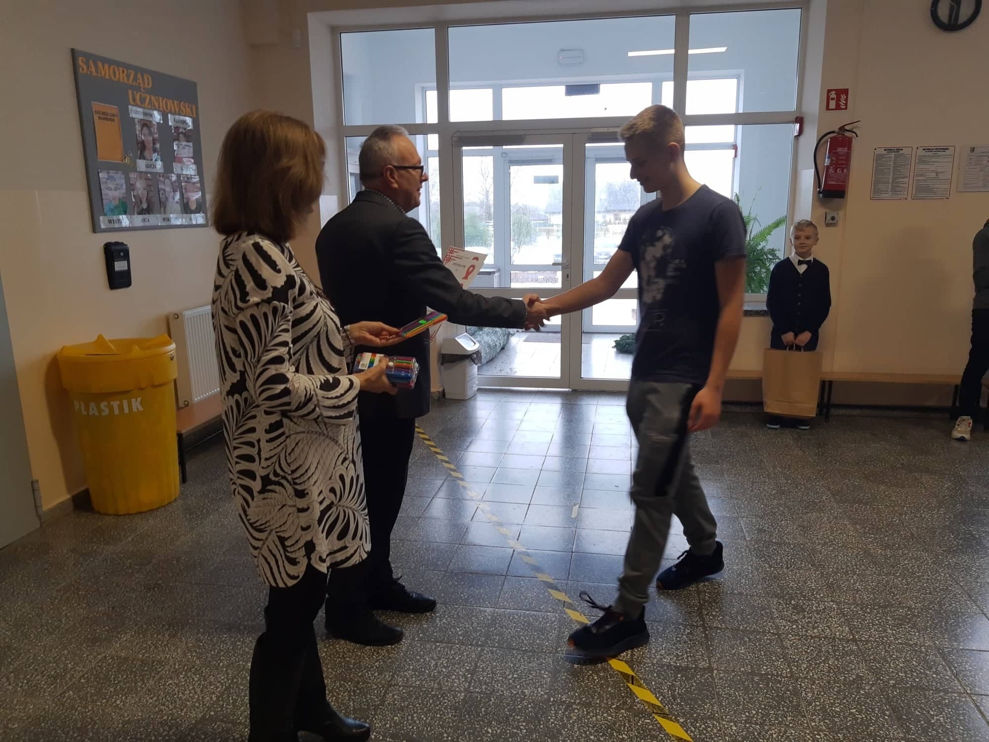 2 grudnia 2021r. w Zespole Szkół im. Jana Pawła II w Łebieniu odbyło się uroczyste wręczenie dyplomów i nagród dla zwycięzców w konkursie profilaktycznym „Co o HIV i AIDS wiedzieć należy?” zorganizowanym dla uczniów klasy VII i VIII.