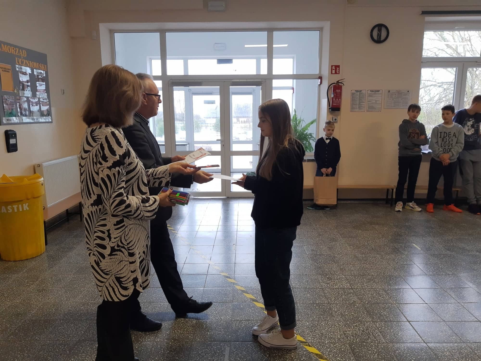 Do konkursu przystąpiło trzydziestu pięciu uczniów. Komisja przyznała cztery pierwsze miejsca. Otrzymały je uczennice: Oliwia Szafoni z klasy VII, Joanna Mitkowska z klasy VIIIb, Amelia Twardowska z klasy VIIIb i Roksana Szarowska z klasy VIIIa. Pozostali uczestnicy konkursu otrzymali nagrody pocieszenia.