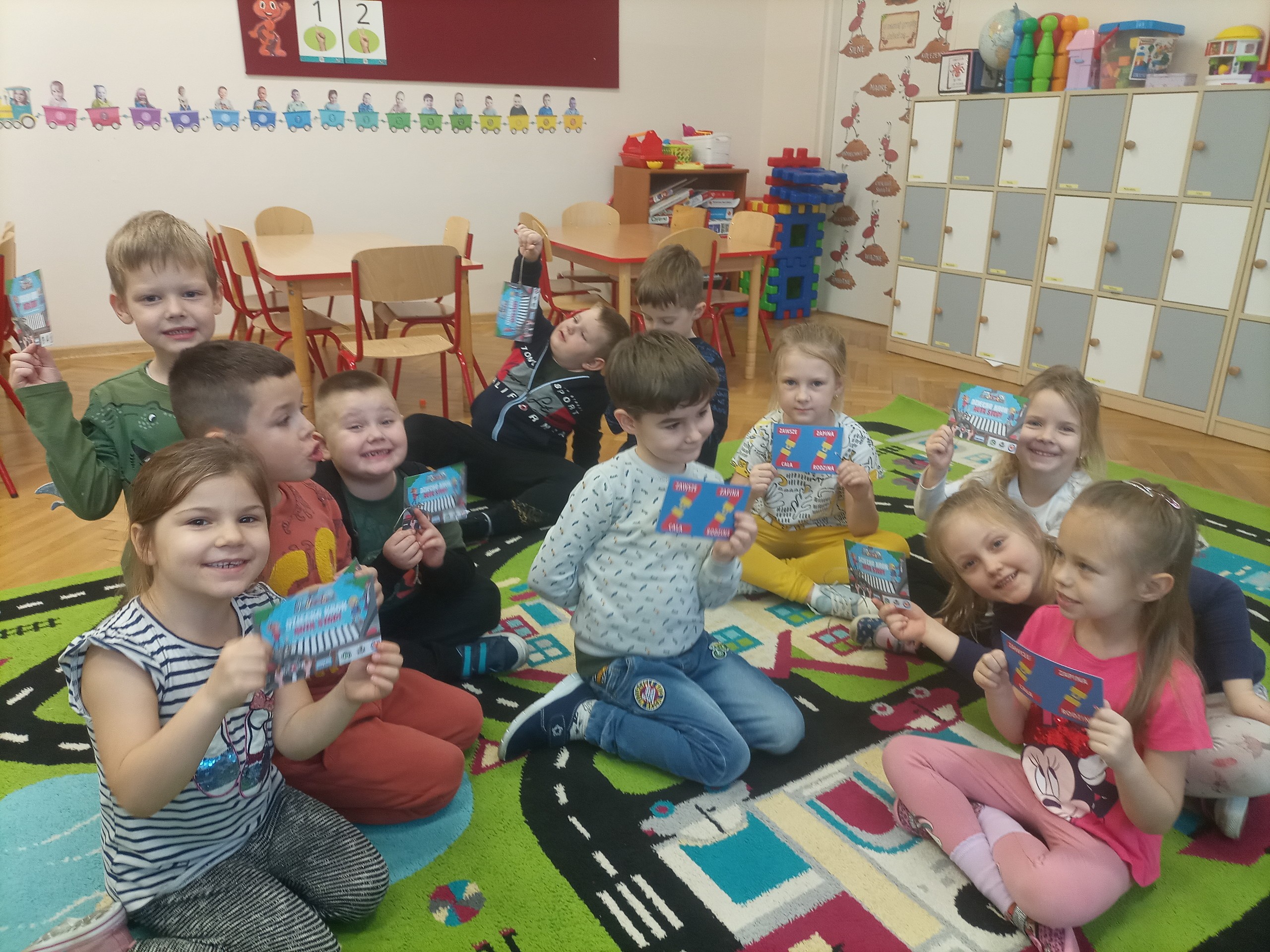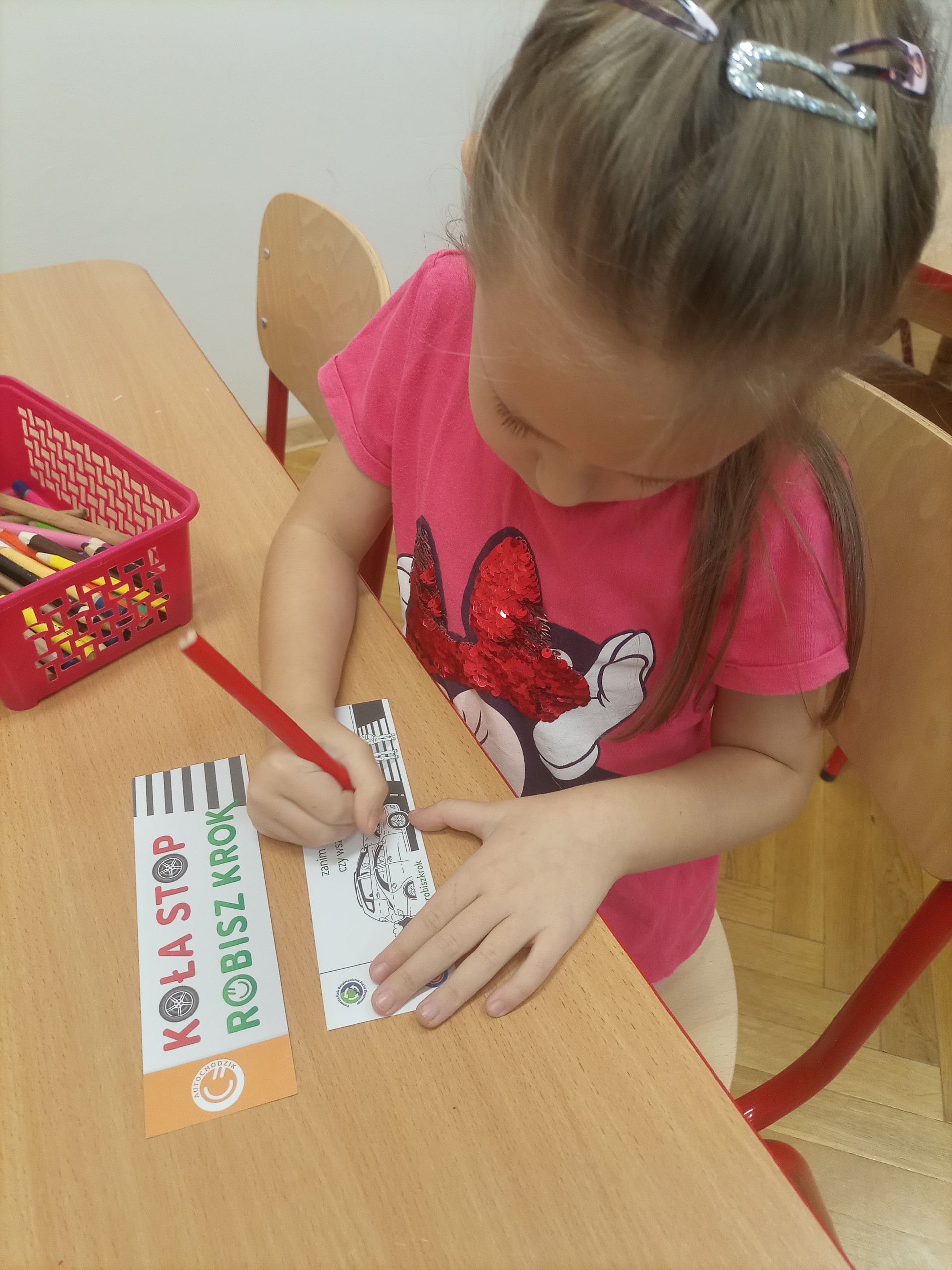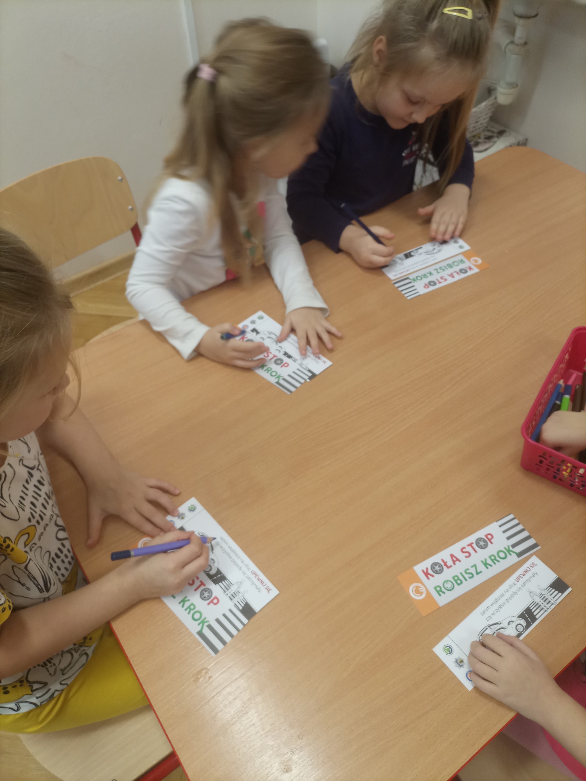 Trzecim zadaniem „Mróweczek” było przygotowanie „przypominajki” dla najstarszej osoby w rodzinie. Dzieci pokolorowały obrazek, a następnie napisały, do kogo adresowana jest „przypominajka”. Tak przygotowaną kartę przekazały w domu swoim najbliższym ucząc hasła: „AUTO STOP-ROBISZ KROK”.