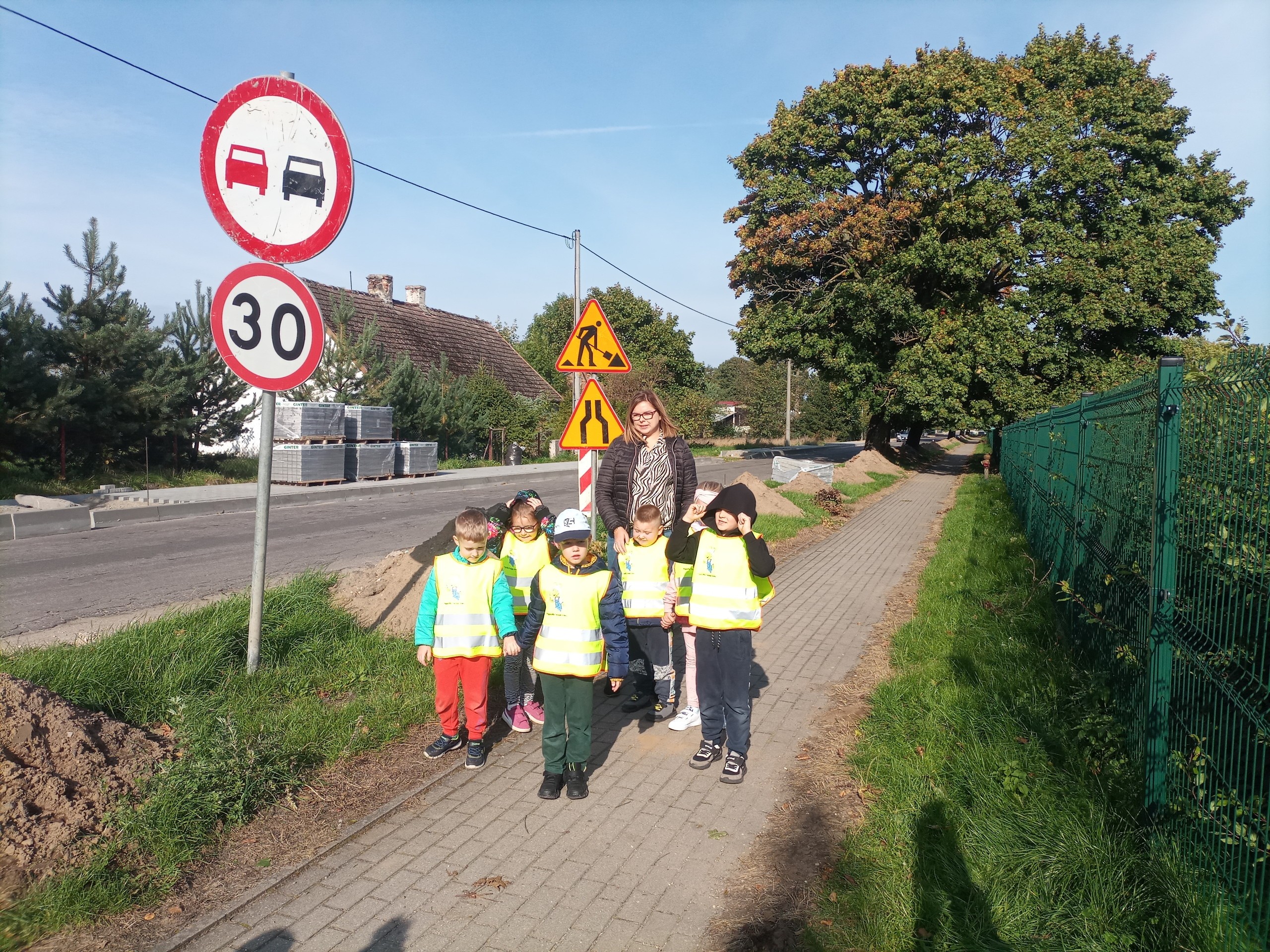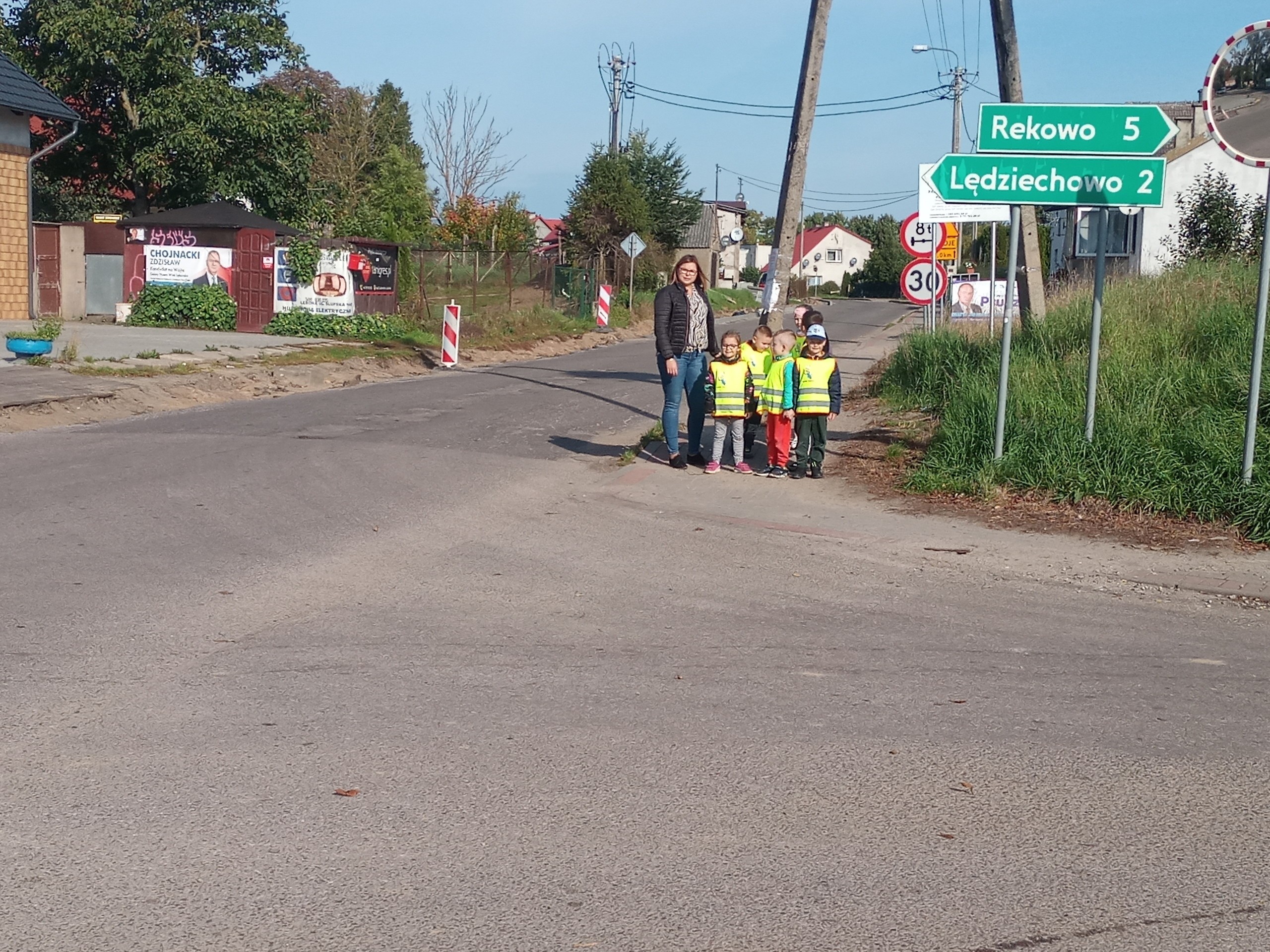 „Mróweczki” sumiennie wykonują kolejne zadania projektowe. Pierwszym był drogowy spacer edukacyjny. Spacerując po naszej miejscowości zwracaliśmy uwagę na znaki drogowe oraz poruszające się pojazdy.