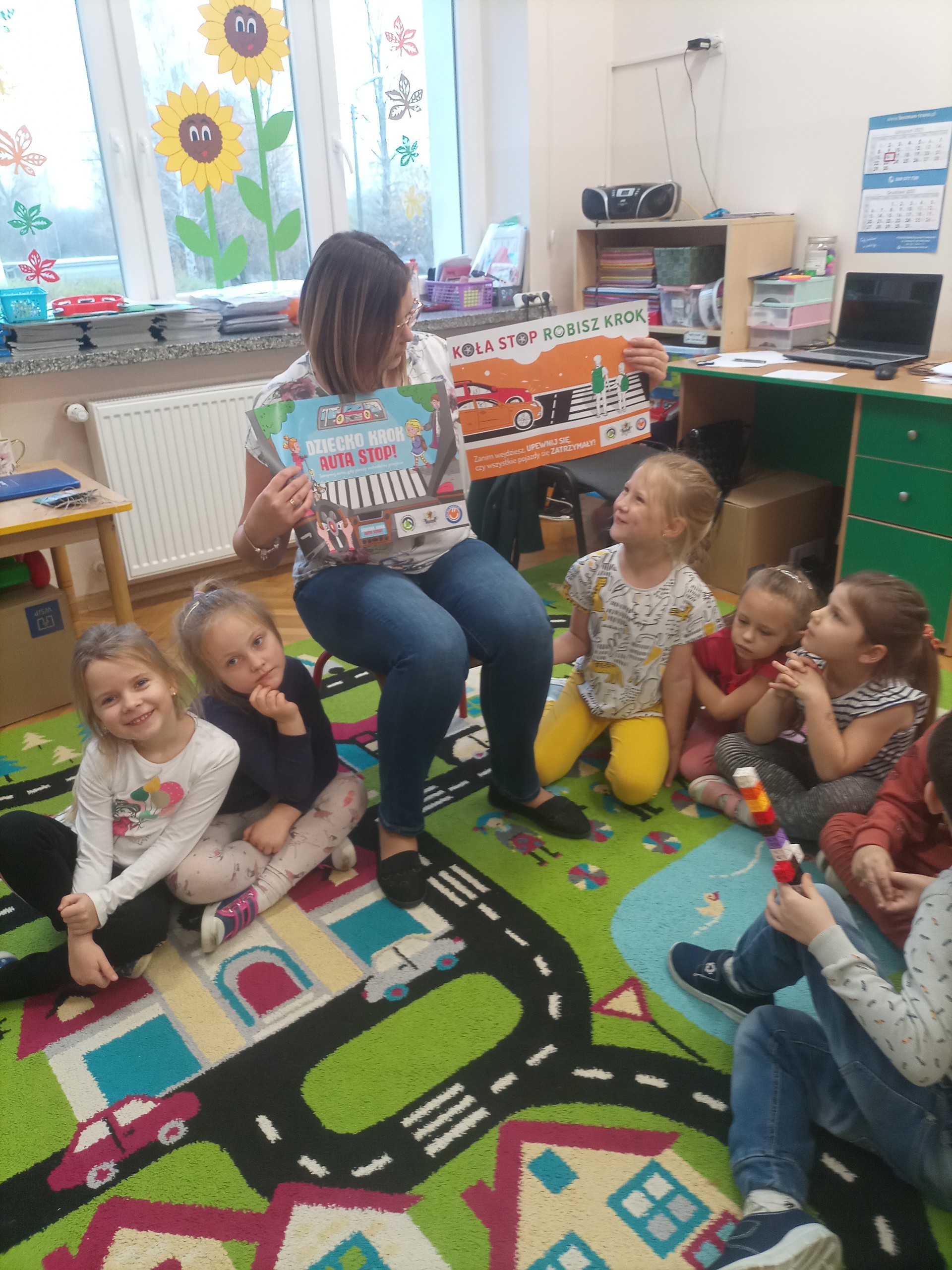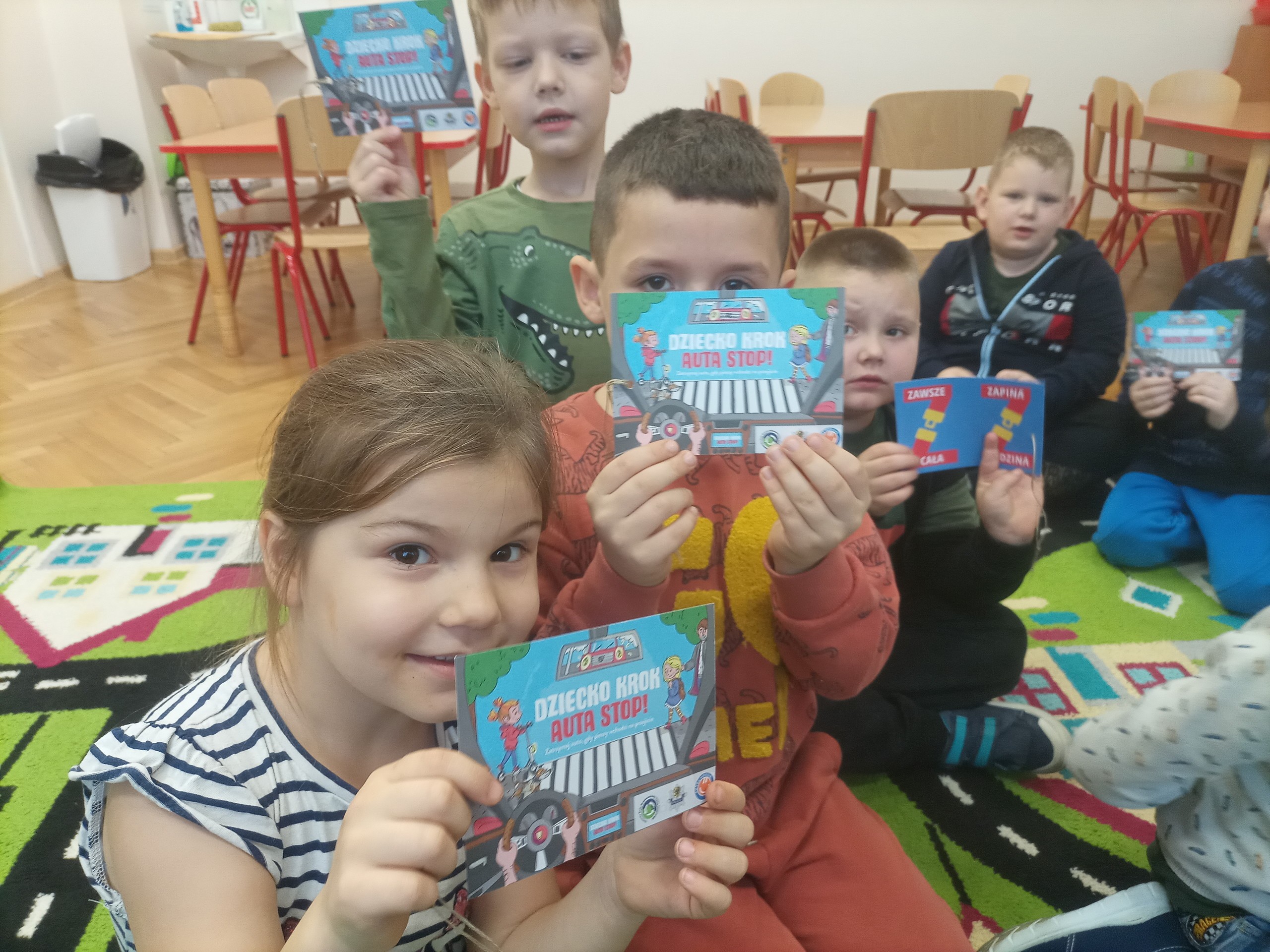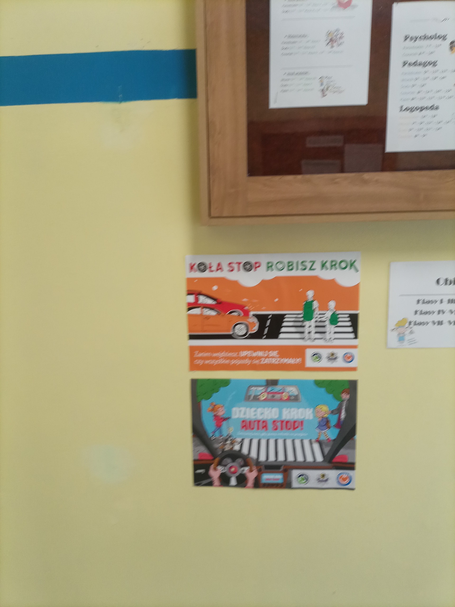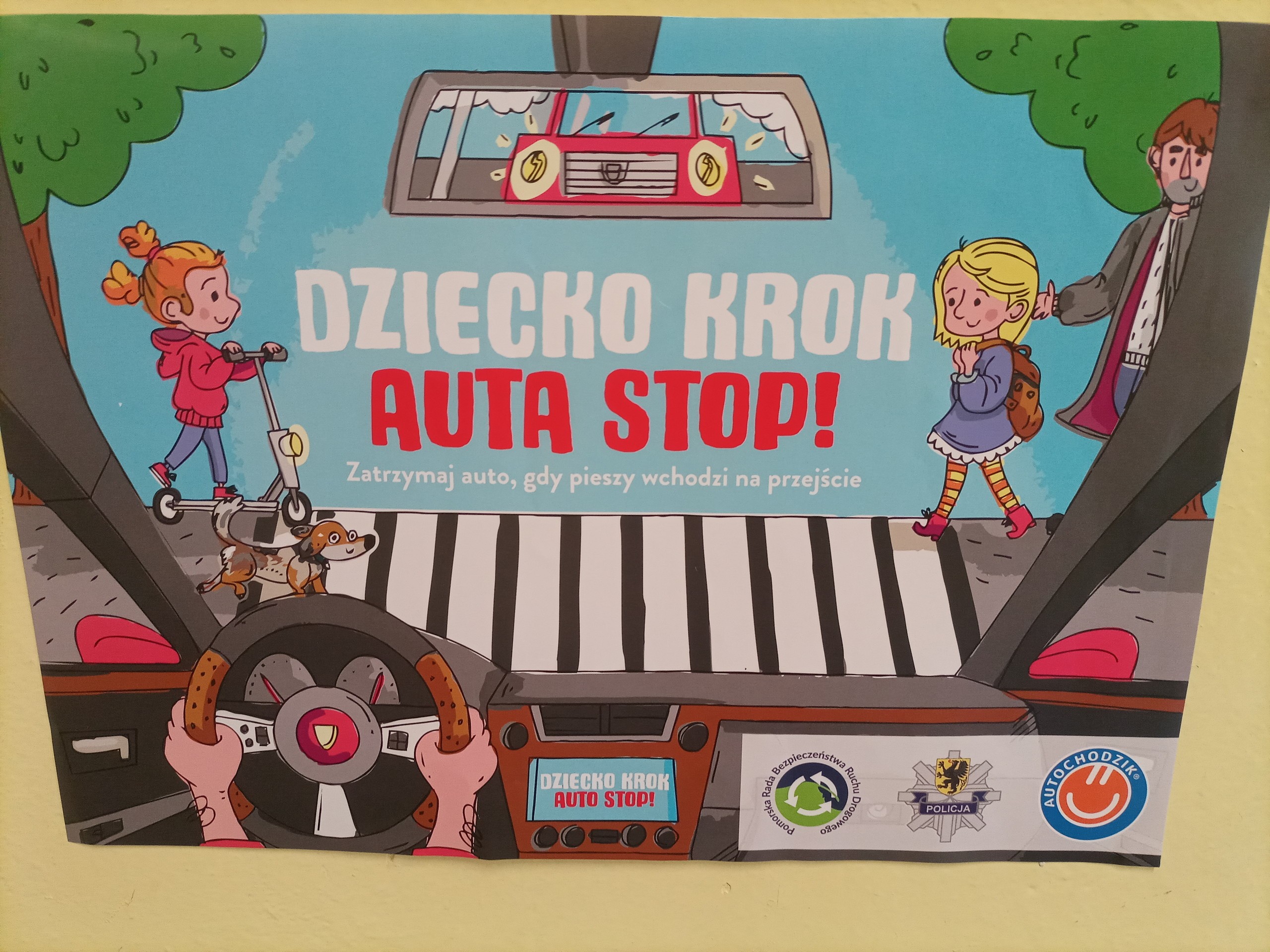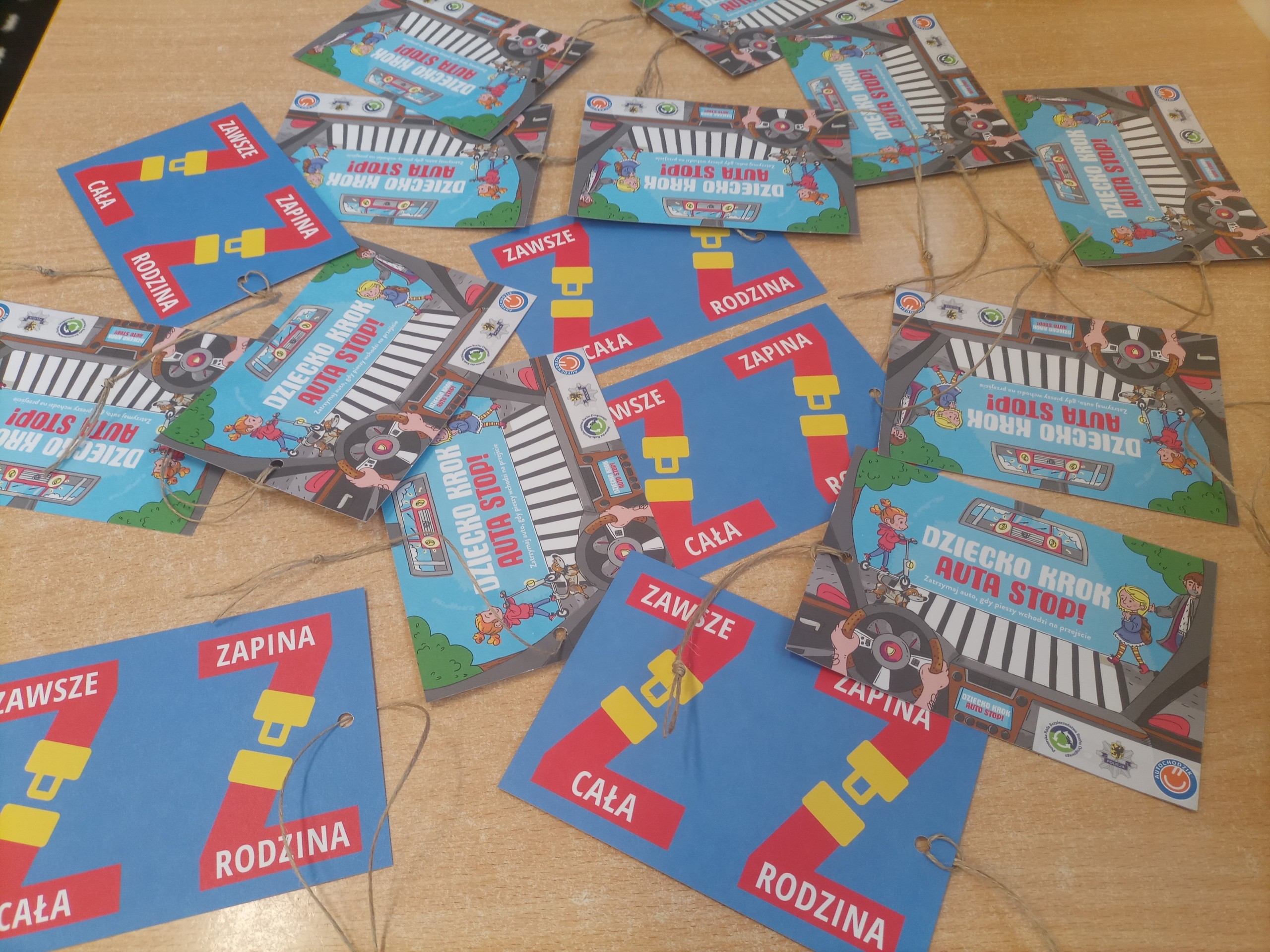 Drugie zadanie polegało na rozwieszeniu plakatów dla dorosłych w widocznym miejscu w szkole/przedszkolu oraz przygotowanie i przekazanie kierowcom specjalnych kart - zawieszek do samochodu.