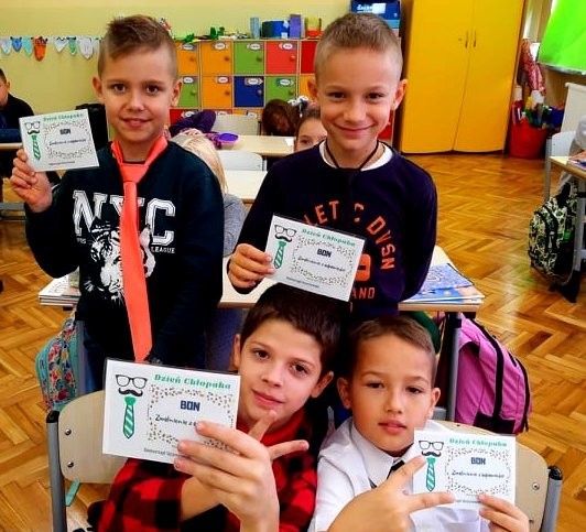 Specjalnie dla wszystkich chłopców dziewczęta z klas ósmych wspólnie z Samorządem Szkolnym przygotowały plakat z życzeniami. Dodatkowo tego dnia każdy chłopak, który przyszedł do szkoły w krawacie był zwolniony z odpowiedzi na wszystkich lekcjach otrzymując specjalny bon.