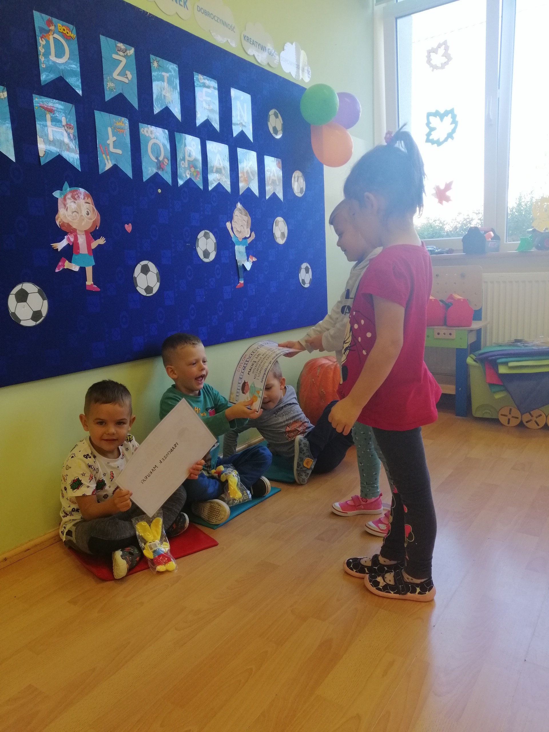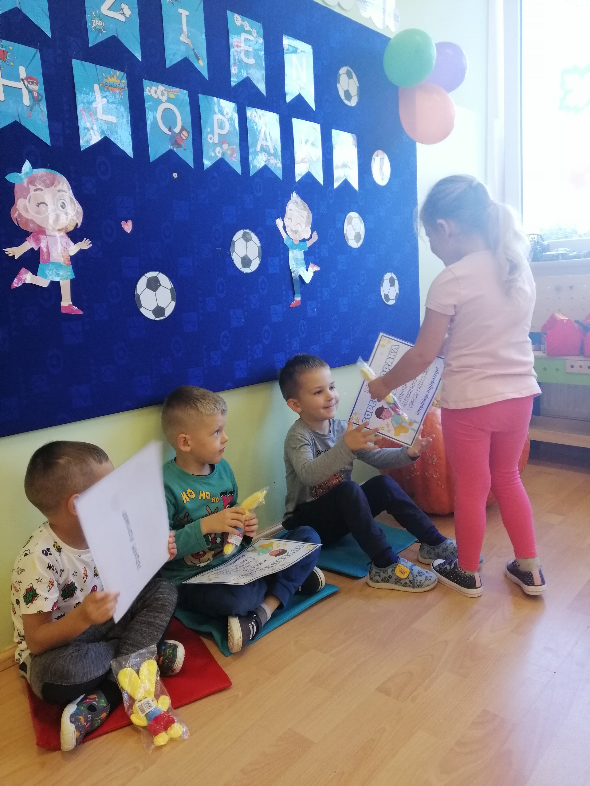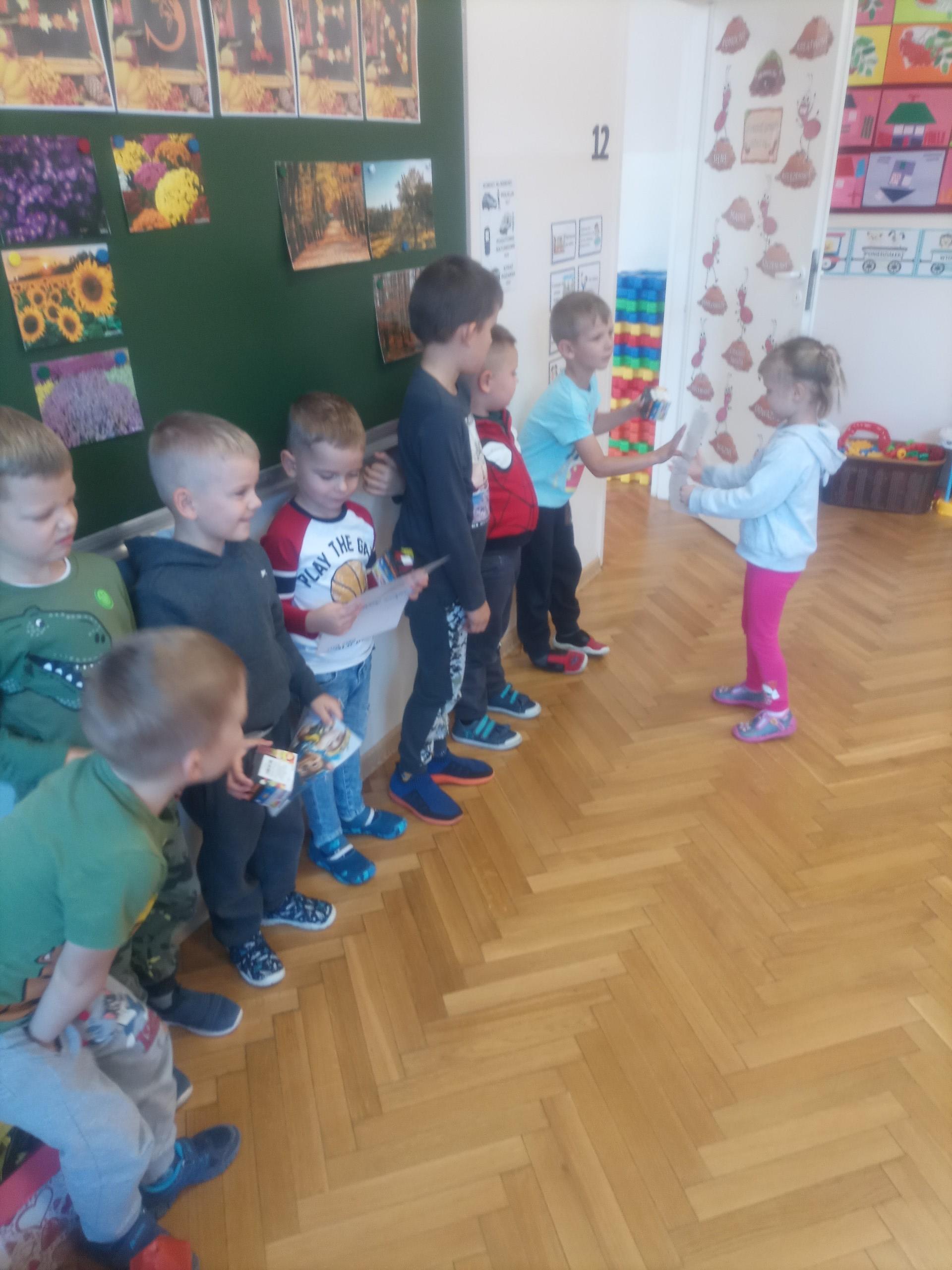 Z tej okazji dziewczynki przygotowały dla nich miłe niespodzianki: medale, dyplomy oraz drobne upominki. Nie zabrakło też dobrej zabawy przy muzyce, a także odgrywania ról, np. strażaka czy policjanta. Był to dzień pełen wrażeń, radości i dobrej zabawy, a wykonane zdjęcia będą miłym wspomnieniem tych chwil.